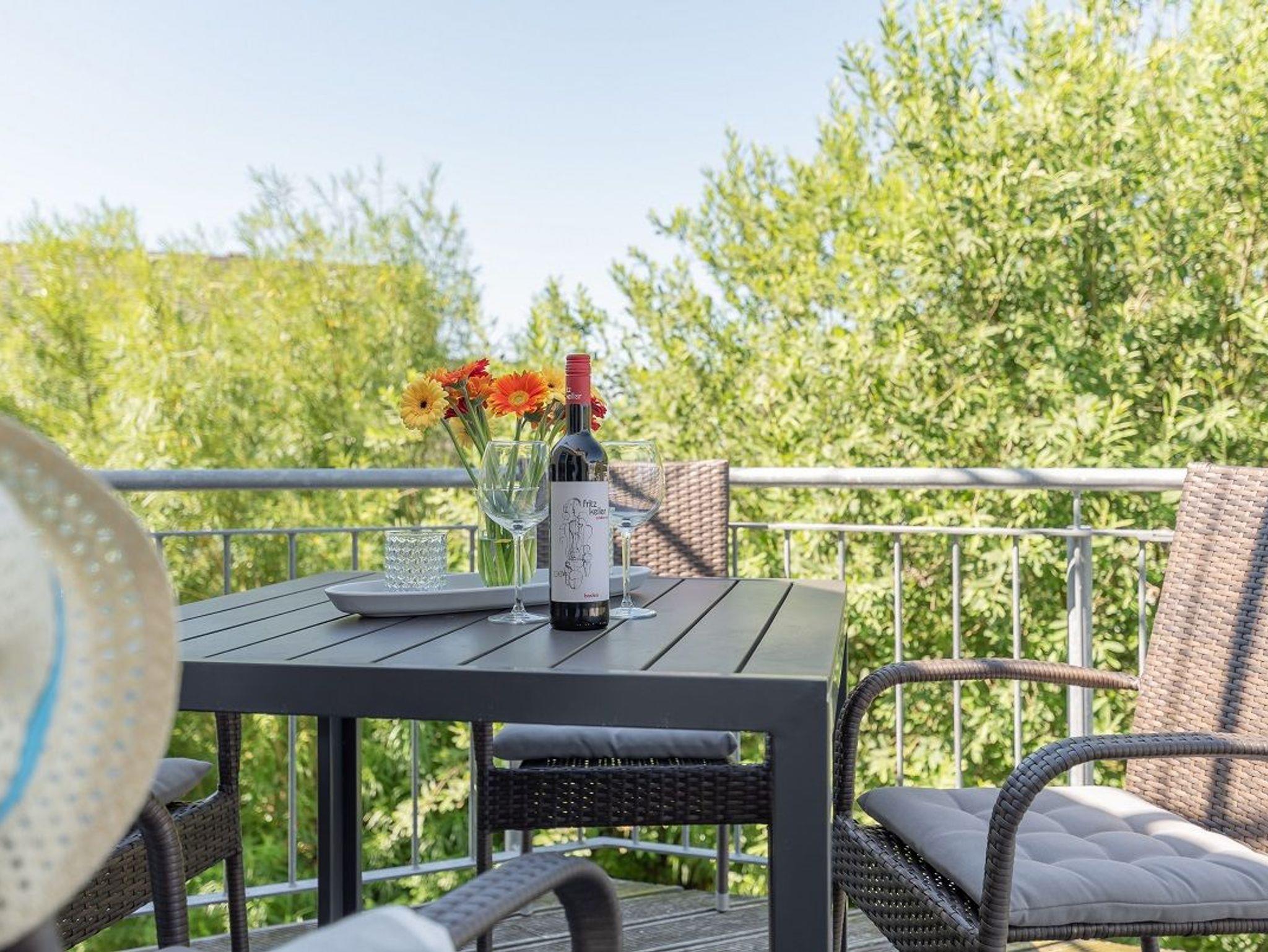 Sonnige und liebevoll eingerichtete 2-Zimmerwohnung mit Süd-West Balkon und Meerblick und weniger als 300 m vom schönen Ostseestrand entfernt.