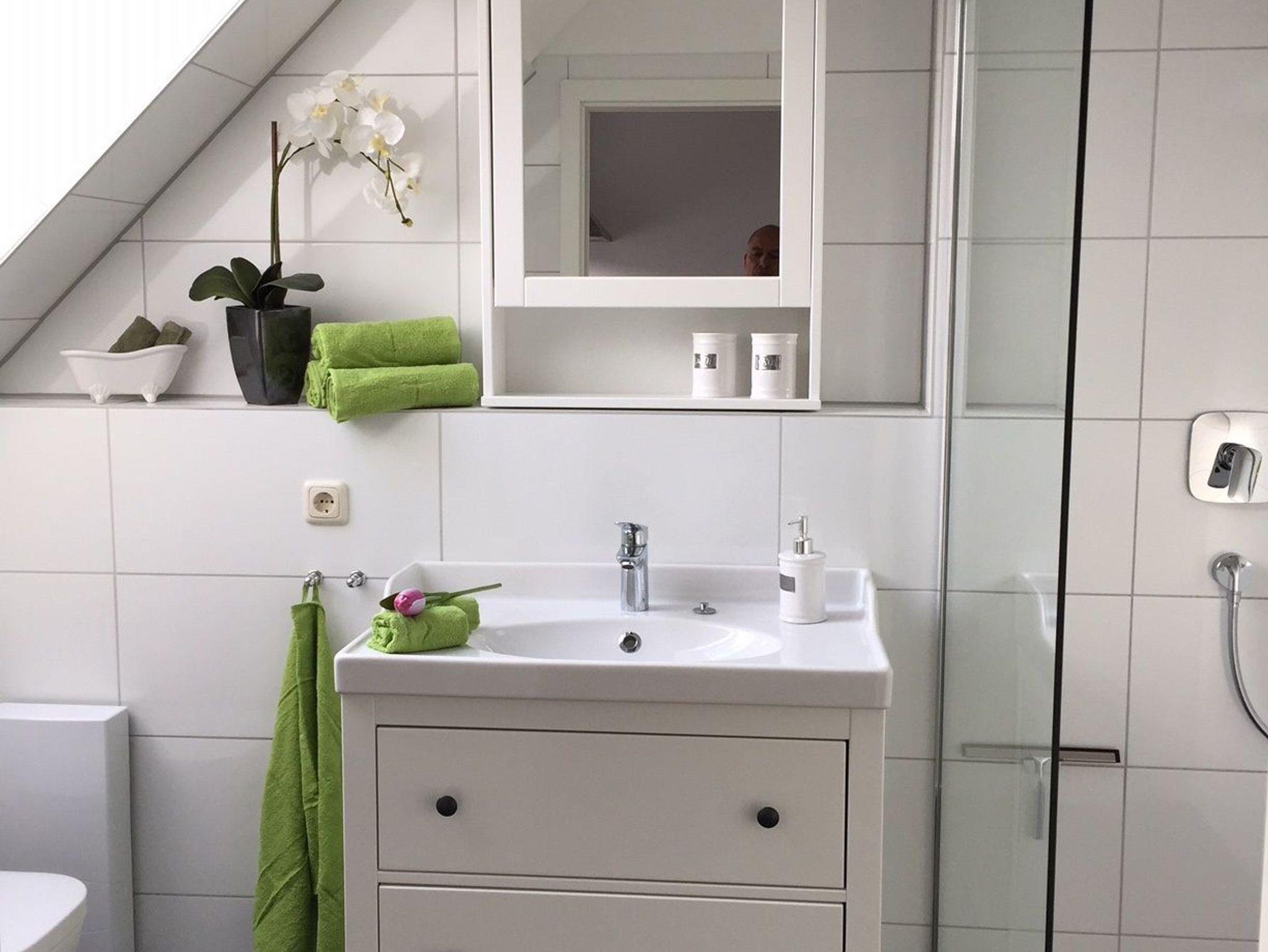 Das lichtdurchflutete Wohnzimmer mit Wohnküche ist mit einem gemütlichen Schlafsofa (Liegefläche 1,40 x 2,00 m) ausgestattet. Die große TV-Anlage mit Radio versüßt die nicht ganz so schönen Tage und eignet sich perfekt um Urlaubsbilder anzuschauen. Bei schönem Wetter lockt der West-Balkon mit entsprechenden Möbeln. Im Dachgeschoss befindet sich das Schlafzimmer mit Blick auf das Naturschutzgebiet Conventer See. Das große Doppelbett mit einer Liegefläche von 1,80 x 2,00 m ist in zwei einzelne Matratzen unterteilt. Im Zimmer befindet sich zudem eine Steckdose mit USB Aufladestation. Die offene Einbauküche ist mit Elektroherd, Backofen, Ceranfeld, Geschirrspüler, Kühlschrank mit Gefrierfach, Kaffeemaschine, Wasserkocher, Toaster und Geschirr ausgestattet. Die Wohnung kann von bis zu vier Personen gemietet werden. Das kleine Bad besticht mit ebenerdiger Dusche, geräumigem Waschtisch und Föhn.