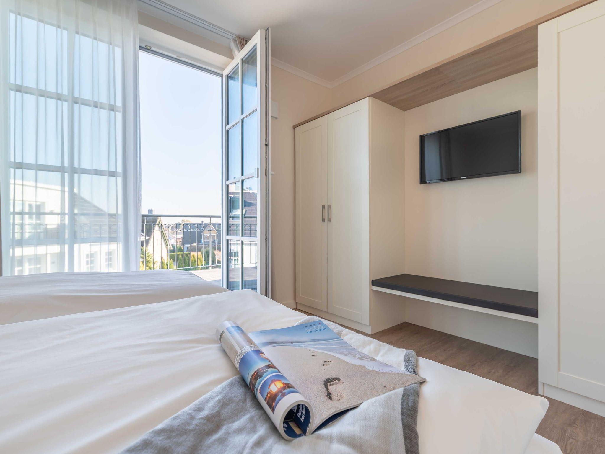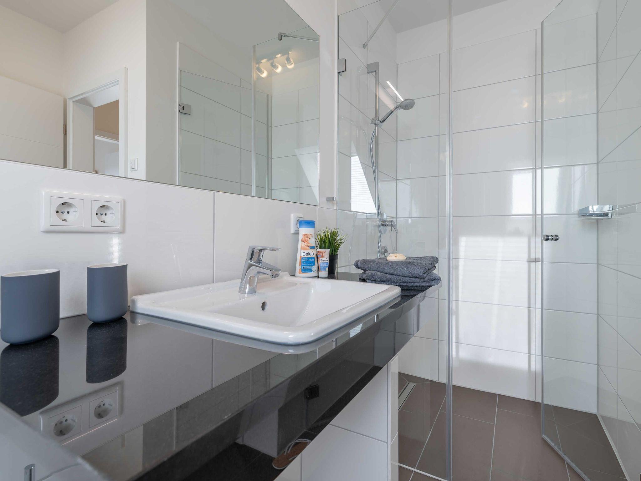 Die liebevoll und maritim eingerichtete 3-Zimmer-Wohnung im Penthouse-Stil in der Villa Strandhafer bietet mit 85 m² und zwei Balkonen (Nord- und Ost-Ausrichtung) viel Platz zur Entspannung und Erholung für bis zu sechs Personen. Der großzügige Wohn- und Essbereich lädt nicht zuletzt durch eine gemütliche Couch mit TV und einer kleinen Leseecke zum Wohlfühlen ein. Im Wohnbereich befindet sich eine Schlafcouch für zwei Personen. Der direkt vom Wohnzimmer aus betretbare Dachbalkon bietet einen schönen Blick zur Ostsee und macht gerade in lauen Sommernächten Lust auf einen Spieleabend. In den Herbst- und Wintermonaten sorgt die Fußbodenheizung in der kompletten Wohnung für Wärme und Gemütlichkeit. Des Weiteren verfügt die Wohnung über ein großes Schlafzimmer mit Doppelbett, zwei Kleiderschränken und TV. Als kleines Highlight betreten Sie nur von diesem Zimmer aus einem großzügigen Balkon der zu romantischen Abenden zu zweit einlädt. Im zweiten Schlafzimmer befinden sich zwei Einzelbetten (90 x 200 cm) sowie ein Kleiderschrank. Im geräumigen modernen Badezimmer finden Sie eine ebenerdige Dusche und ein Waschbecken mit großem Spiegel. Die sich in der Wohnung befindliche ?smarte? Einbauküche lässt mit Backofen, Geschirrspüler, Ceran-Kochfeld mit Abzugshaube sowie einem Kühlschrank mit Gefrierfach keine Wünsche offen. Wasserkocher, Kaffeemaschine, weitere Küchengeräte und Geschirr sind selbstverständlich enthalten. Ein Föhn, Staubsauger und weitere Haushaltsutensilien gehören zur Ausstattung der Wohnung. Eine Fußbodenheizung sorgt in allen Räumen für wohlige Wärme.
