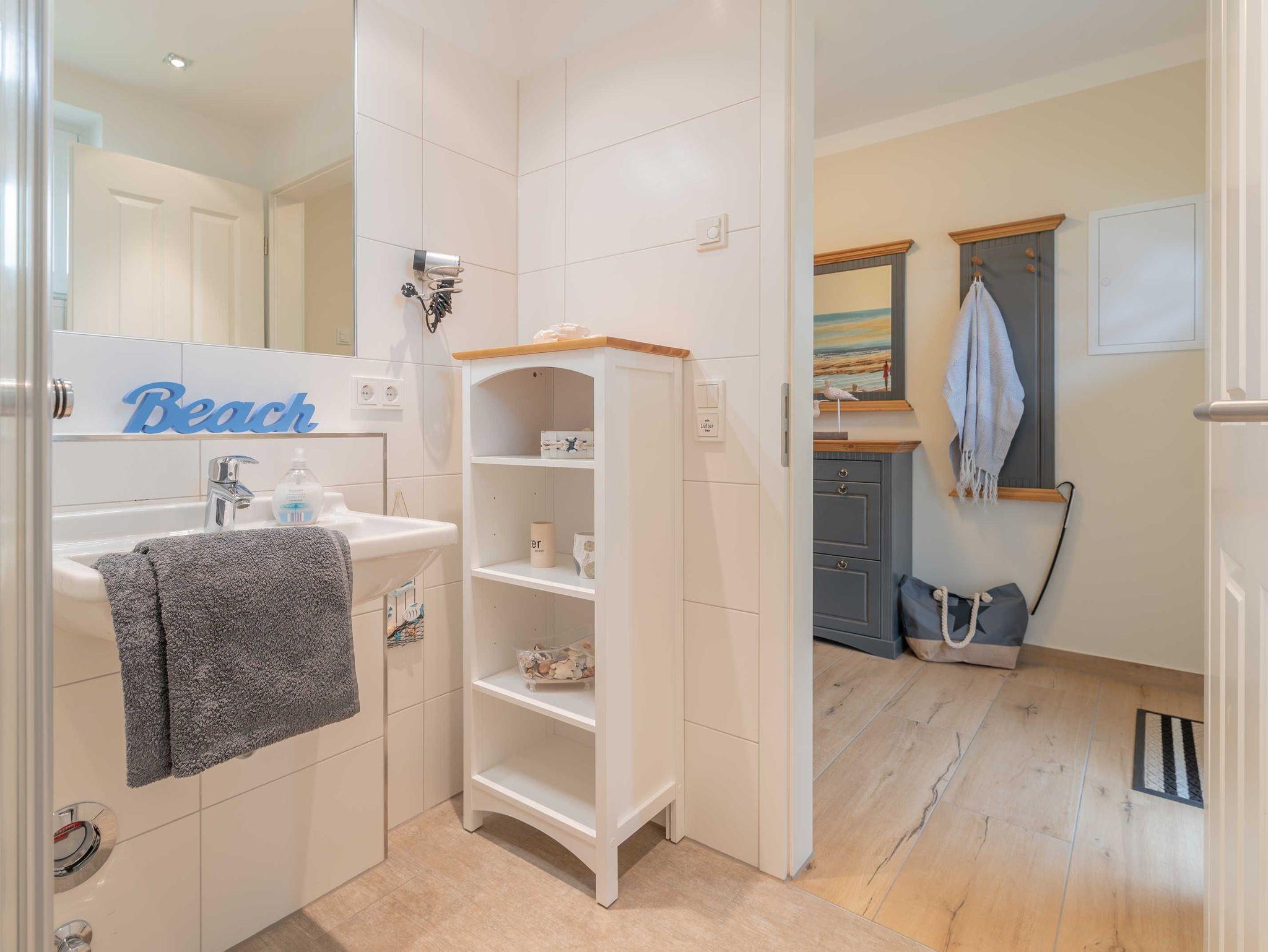 Im Erdgeschoss befindet sich das erste Bad inkl. Dusche, Föhn und Handtuchtrockner.