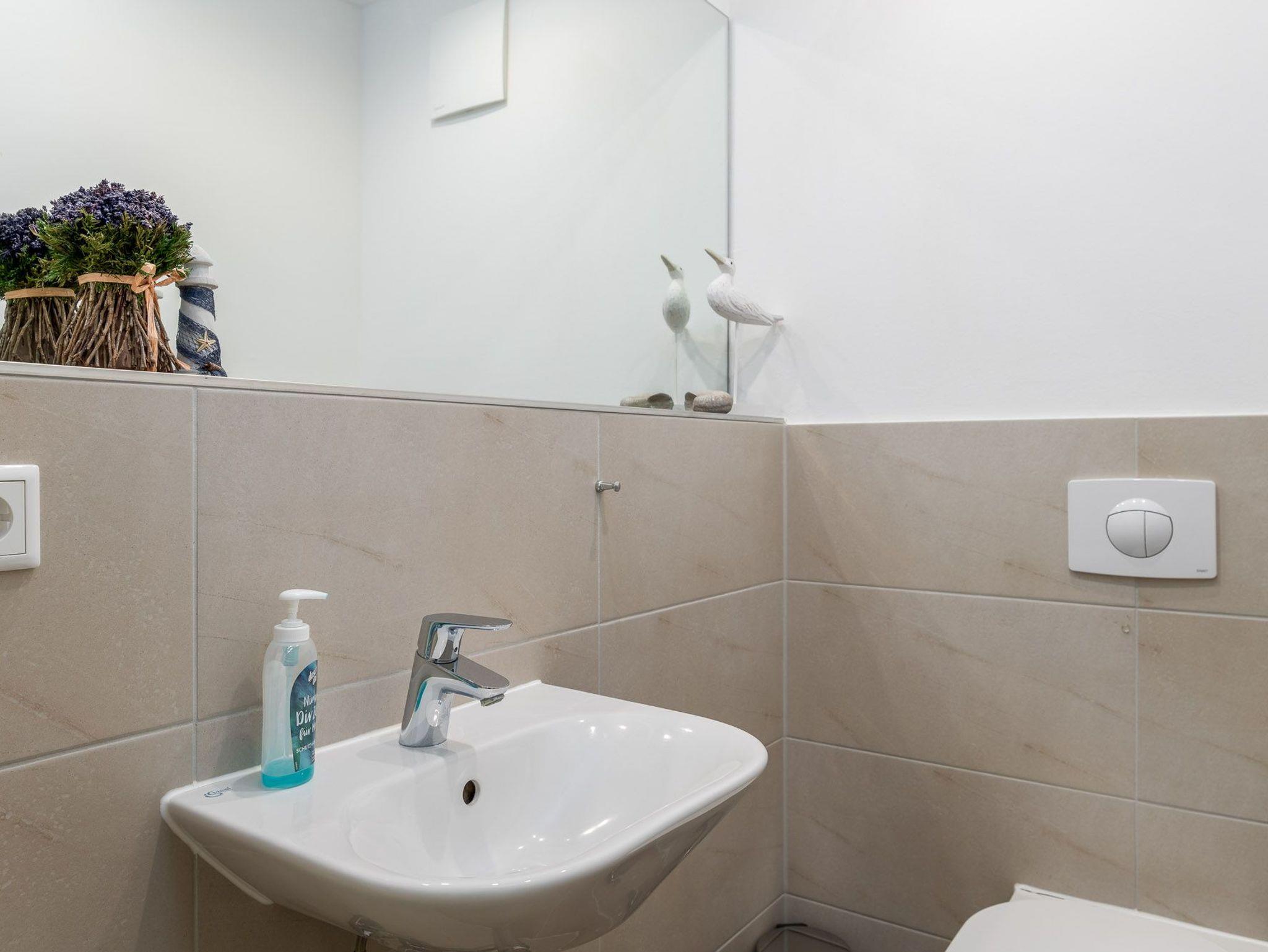 Strandnahe, exklusive 3-Raumwohnung für max. 3 Erwachsene und 2 Kleinkinder, 2 Schlafzimmer, Gäste-WC und Balkon mit Meerblick im 2.OG.