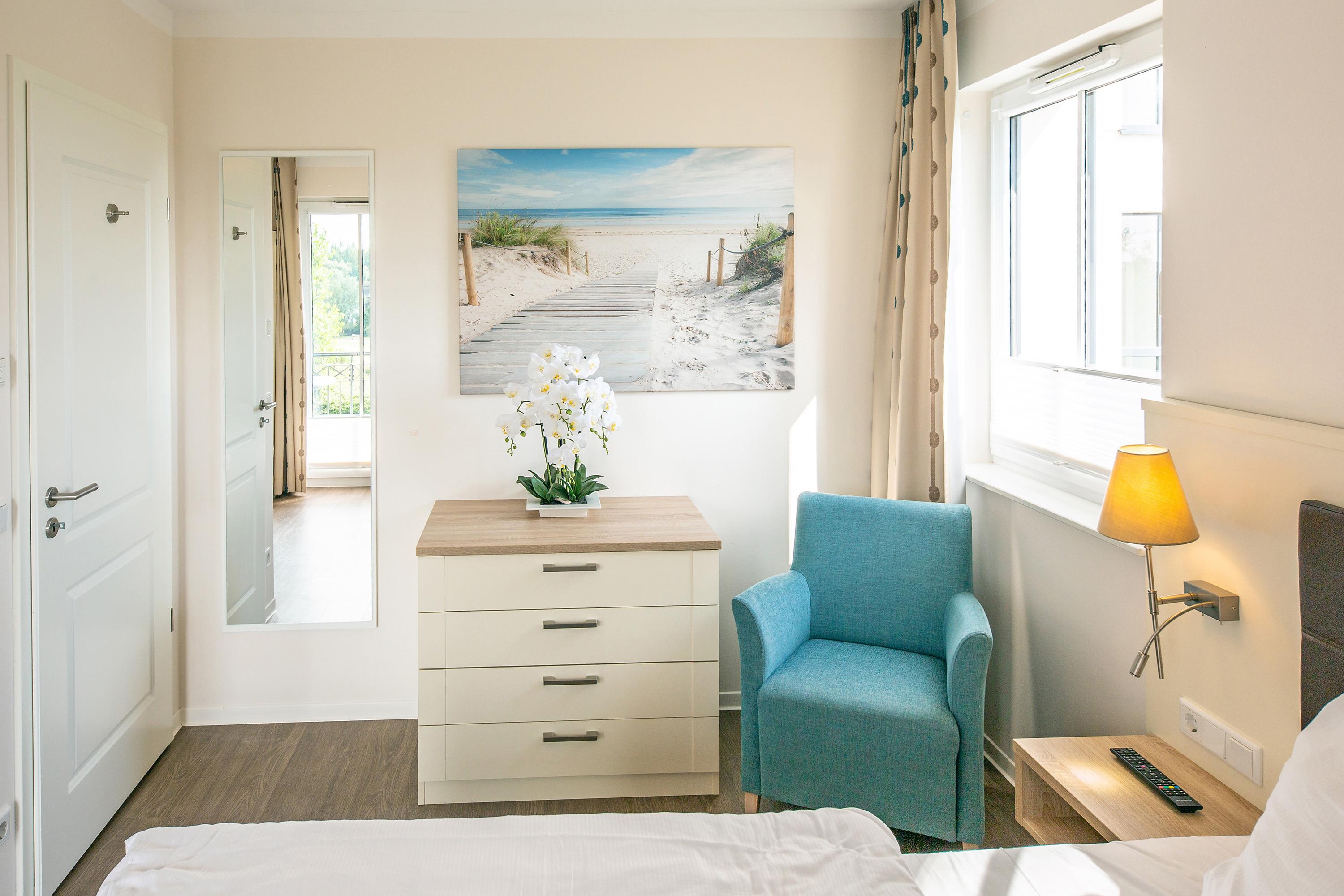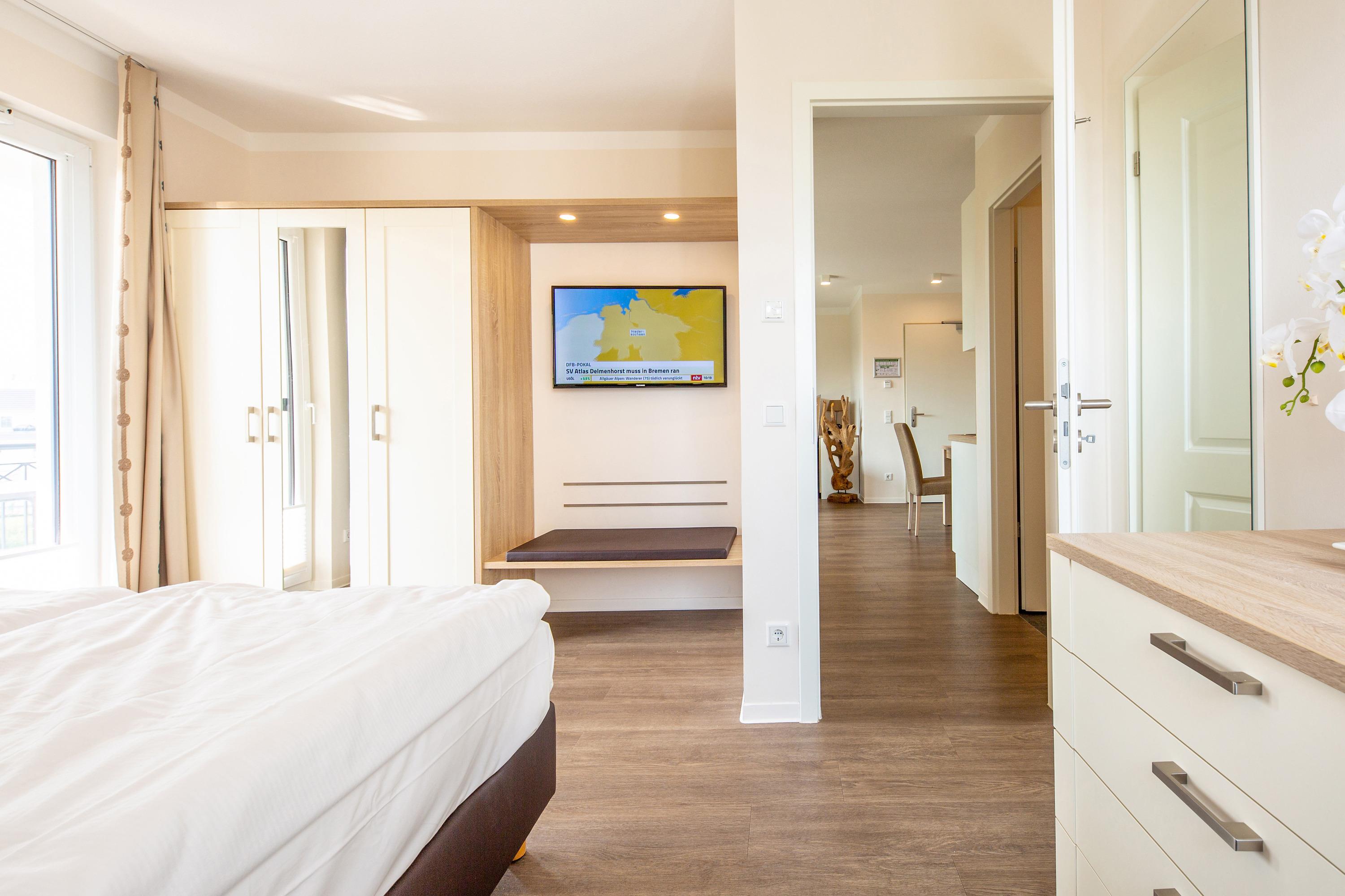 Ferienwohnung/Suite 2-50, seitlicher Meerblick. Wellnessbereich mit Pool und Sauna. Restaurant und Rezeption im Haus.