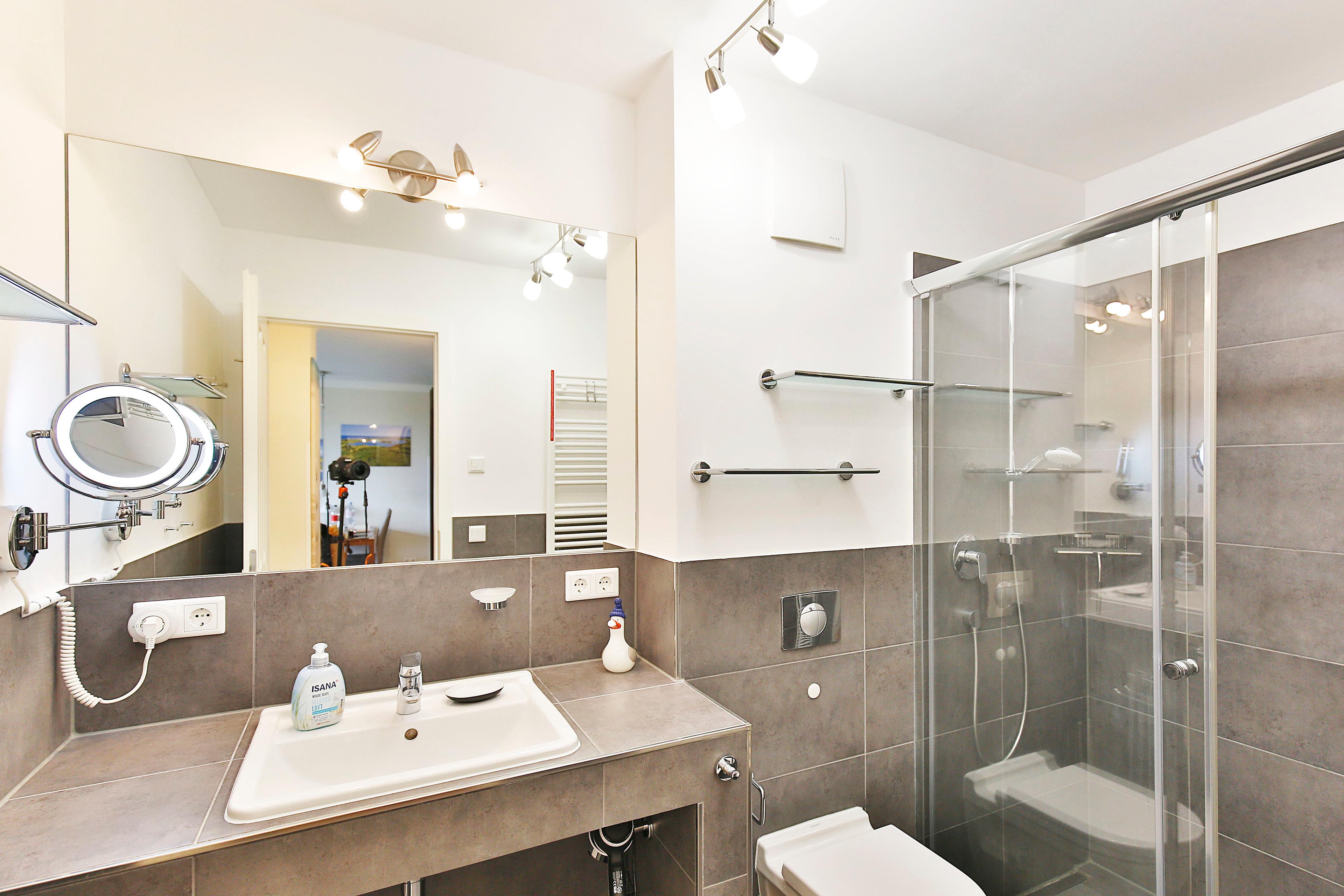Zwei Schlafzimmer mit modernen Boxspringbetten und zwei komfortable Bäder.