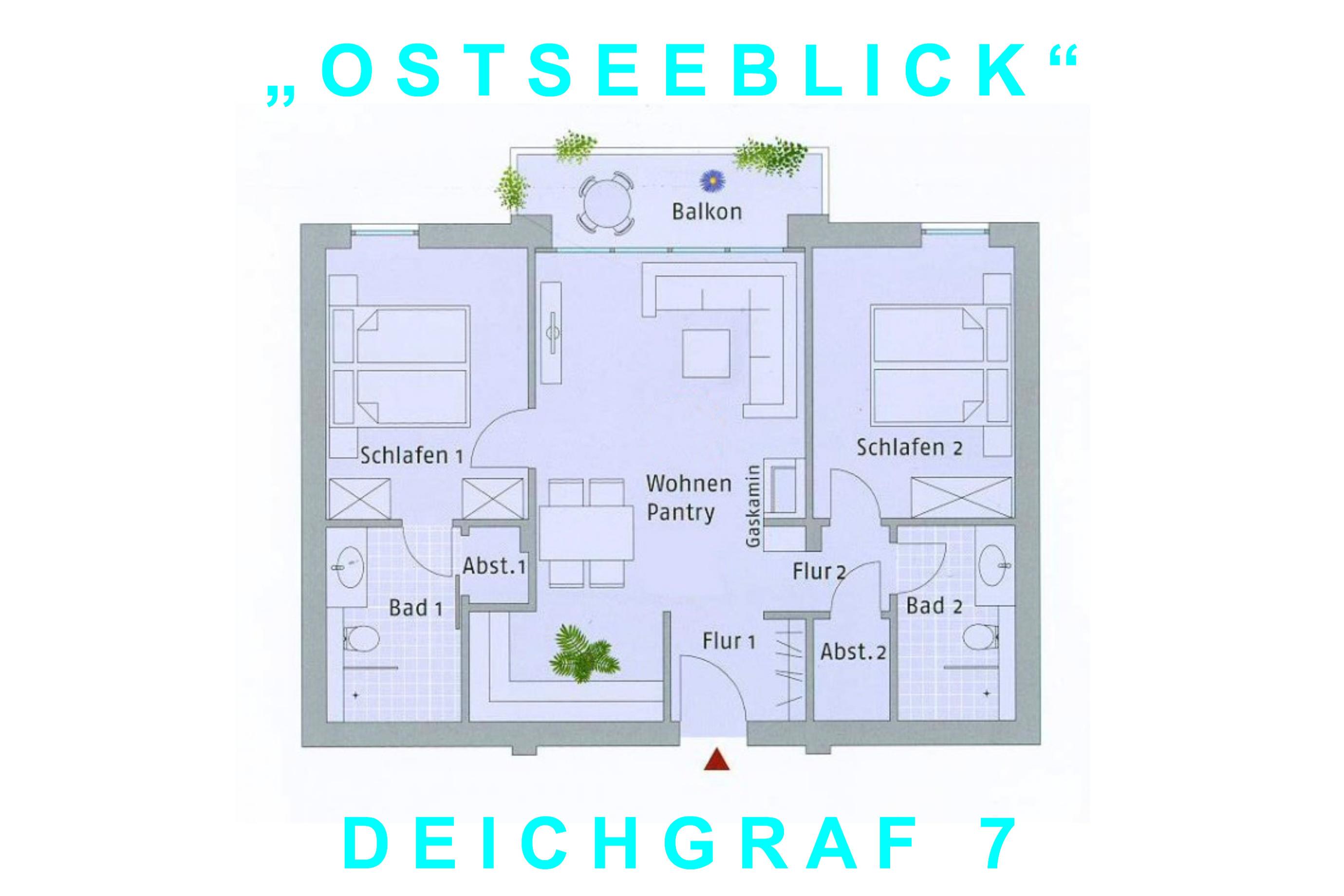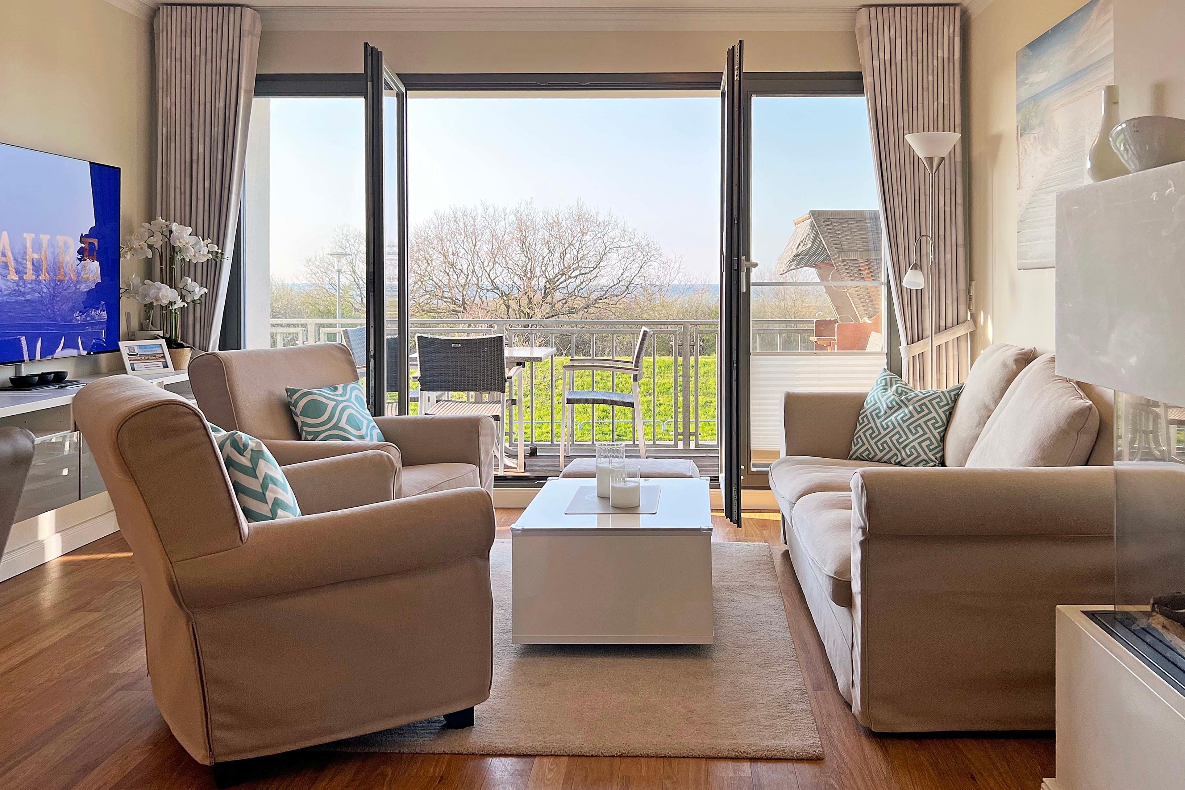 Liebevoll eingerichtetes Dreiraumapartment mit Balkon in der ersten Reihe.