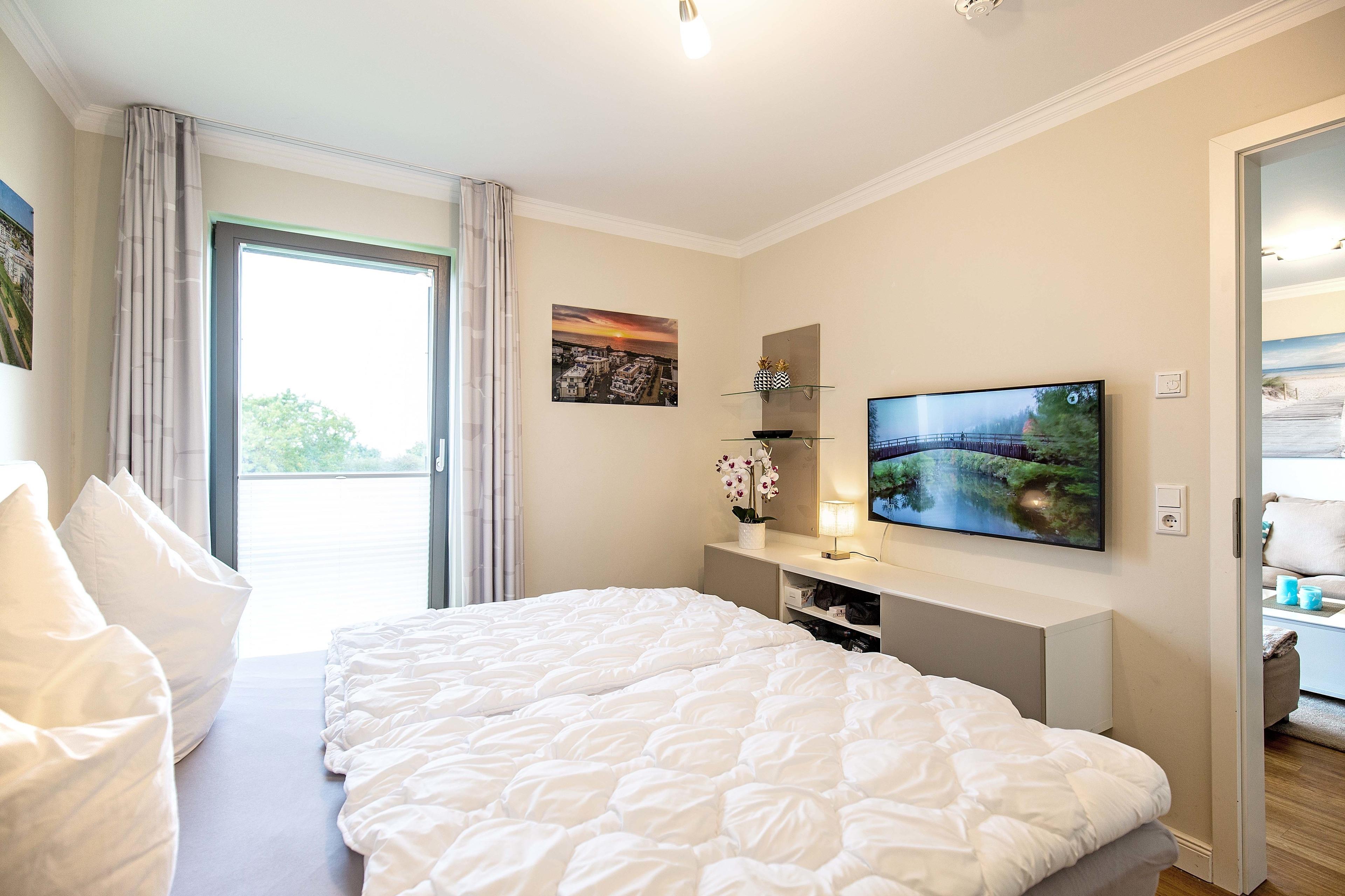 In den Schlafzimmern weitere 43 Zoll-TV's über Wandborden.