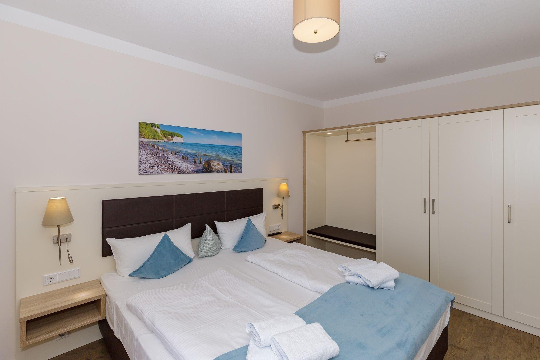 Die 49 m² große 2-Zimmer Suite ist für max. 4 Personen geeignet und befindet sich in südwestlicher Lage mit seitlichem Blick auf die Ostsee.