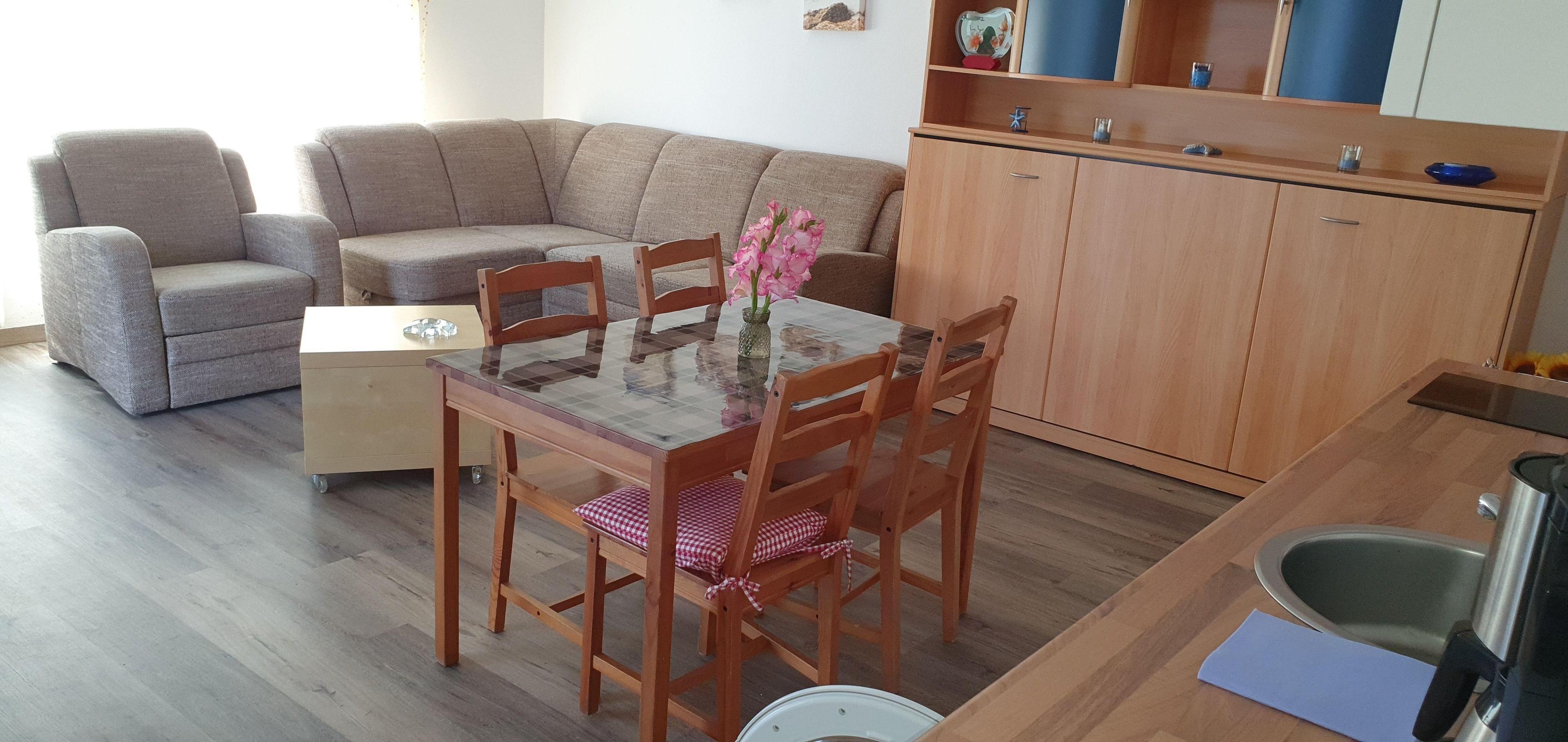 Wir stellen Ihnen auf 50qm ein komfortablen Wohn- und Schlafraum und einen separaten gemütlichen Schlafraum zur Verfügung.