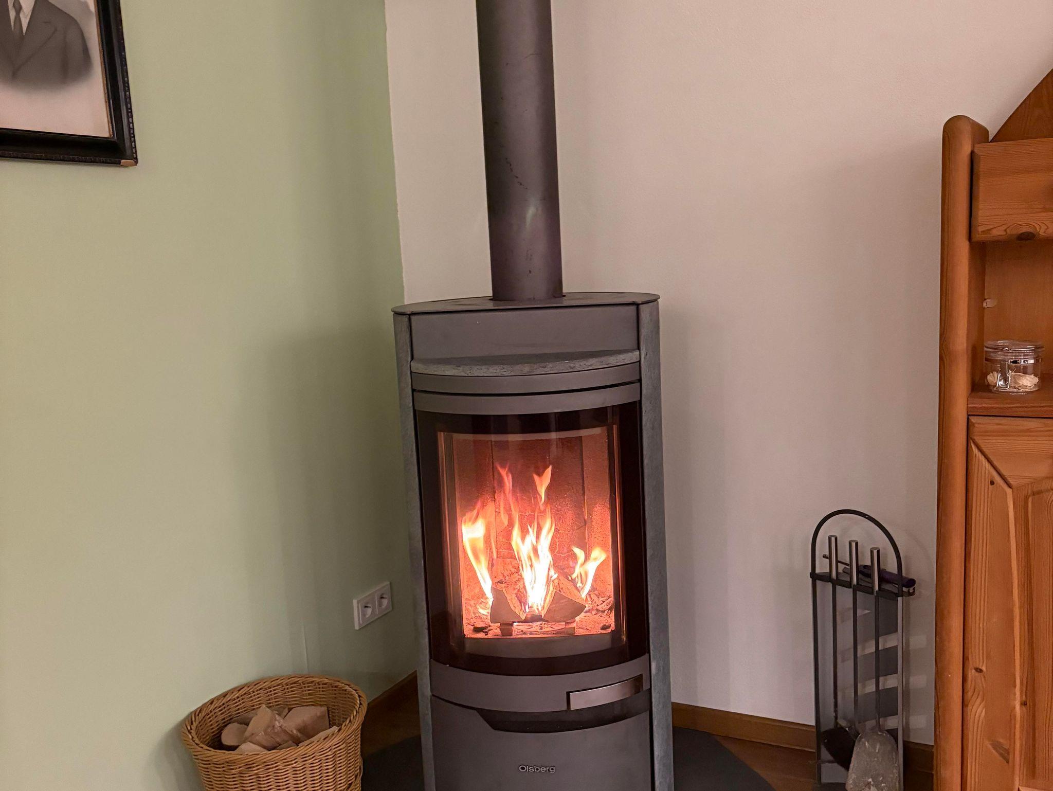 Im separaten Wohnzimmer kann von der gemütlichen großen Couch aus entweder das schöne Feuer im Holzofen betrachtet werden oder man schaut aus dem großen Wohnzimmerfenster hinaus und genießt die Stille und die Ruhe.