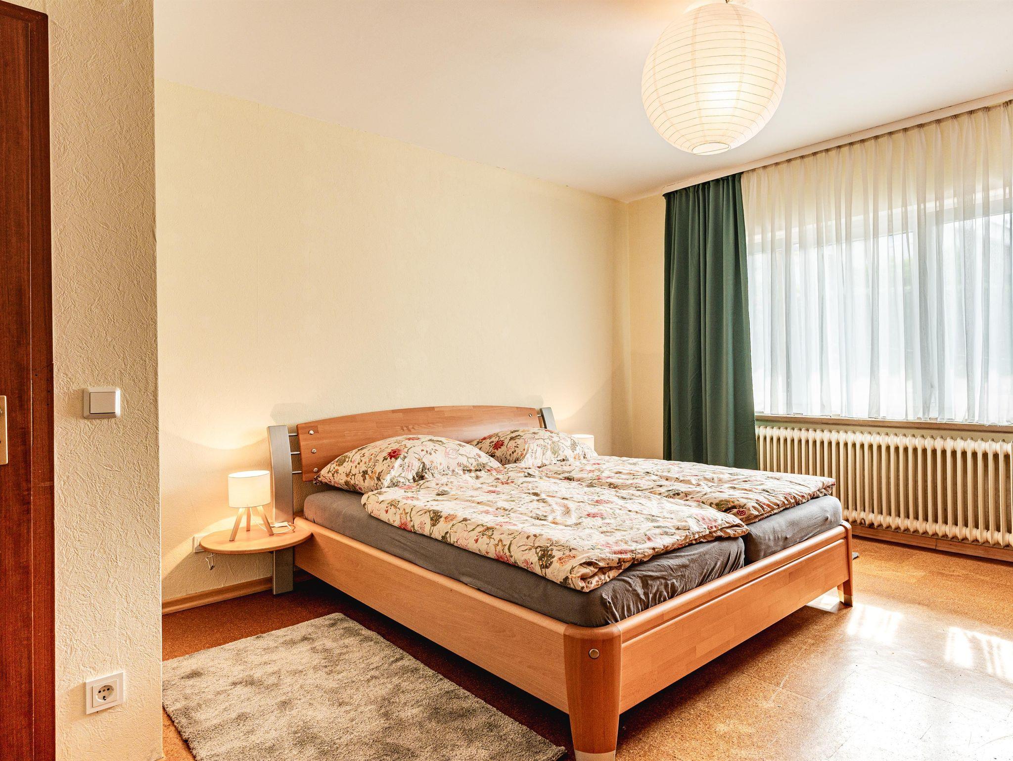 Ein Schlafzimmer mit Doppelbett und offenem Fußende (1,80 m) sowie