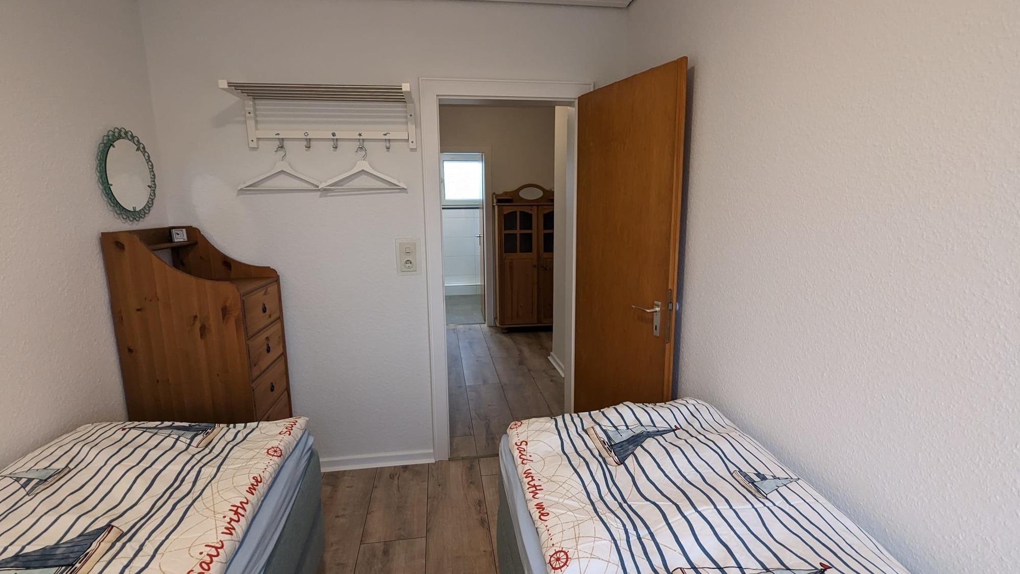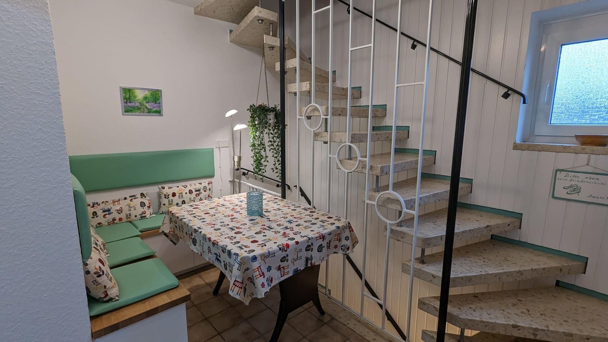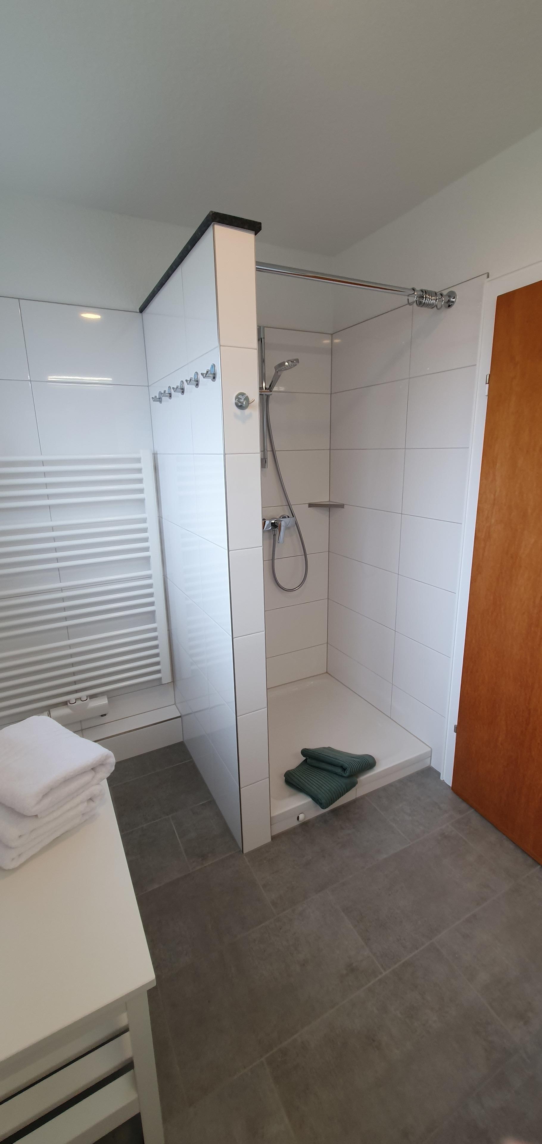 Neben einem neuen Gäste-WC im Eingangsbereich gibt es im 1. Obergeschoss ein neues Badezimmer mit Dusche und Fußbodenheizung und ein gemütliches kleines Wohnzimmer mit Smart-TV, Glasfaser-WLAN, Radio, CD-Player und portablem Bluetooth-Lautsprecher.