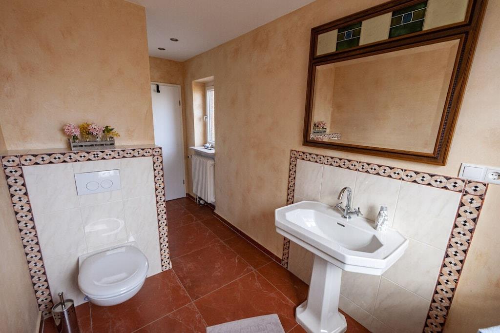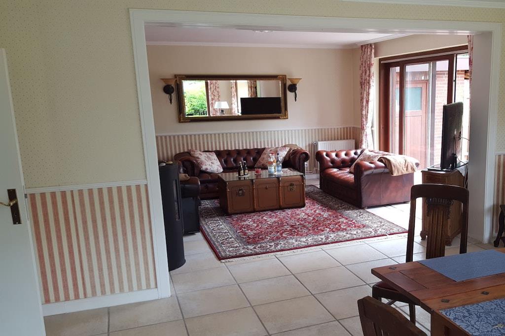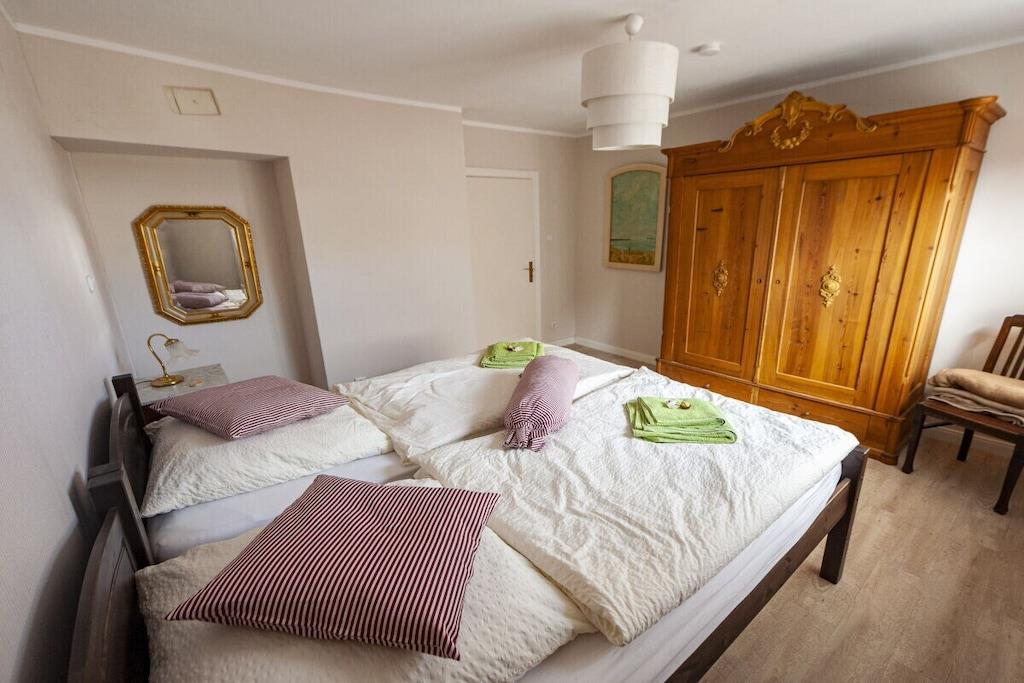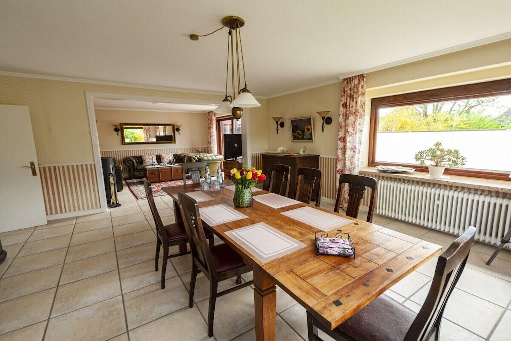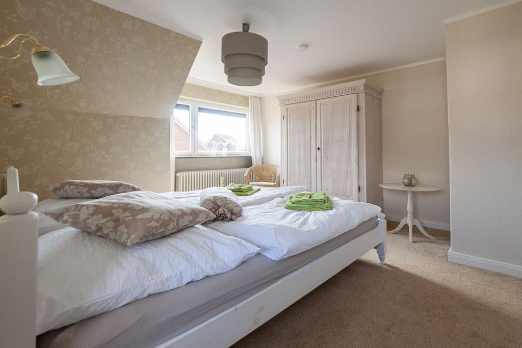 Individuelt feriehus Gorch Fock for 8 personer. Sentralt beliggende, men likevel svært rolig. 4 soverom, 2 bad, ett med badekar, koselig stue og spisestue med vedovn. Stor hage med terrasse og balkong. Også godt egnet for små grupper, seminarer og lignende arrangementer. Ingen mainstream, bare koselig og unikt. Klar hodet på diket i den salte sjøluften. Enten du nyter stranden om sommeren, går turer i mudderbankene når som helst, eller trosser en storm og deretter varmer deg ved ovnen med en Pharisäer (kaffe og kaffe) eller te.