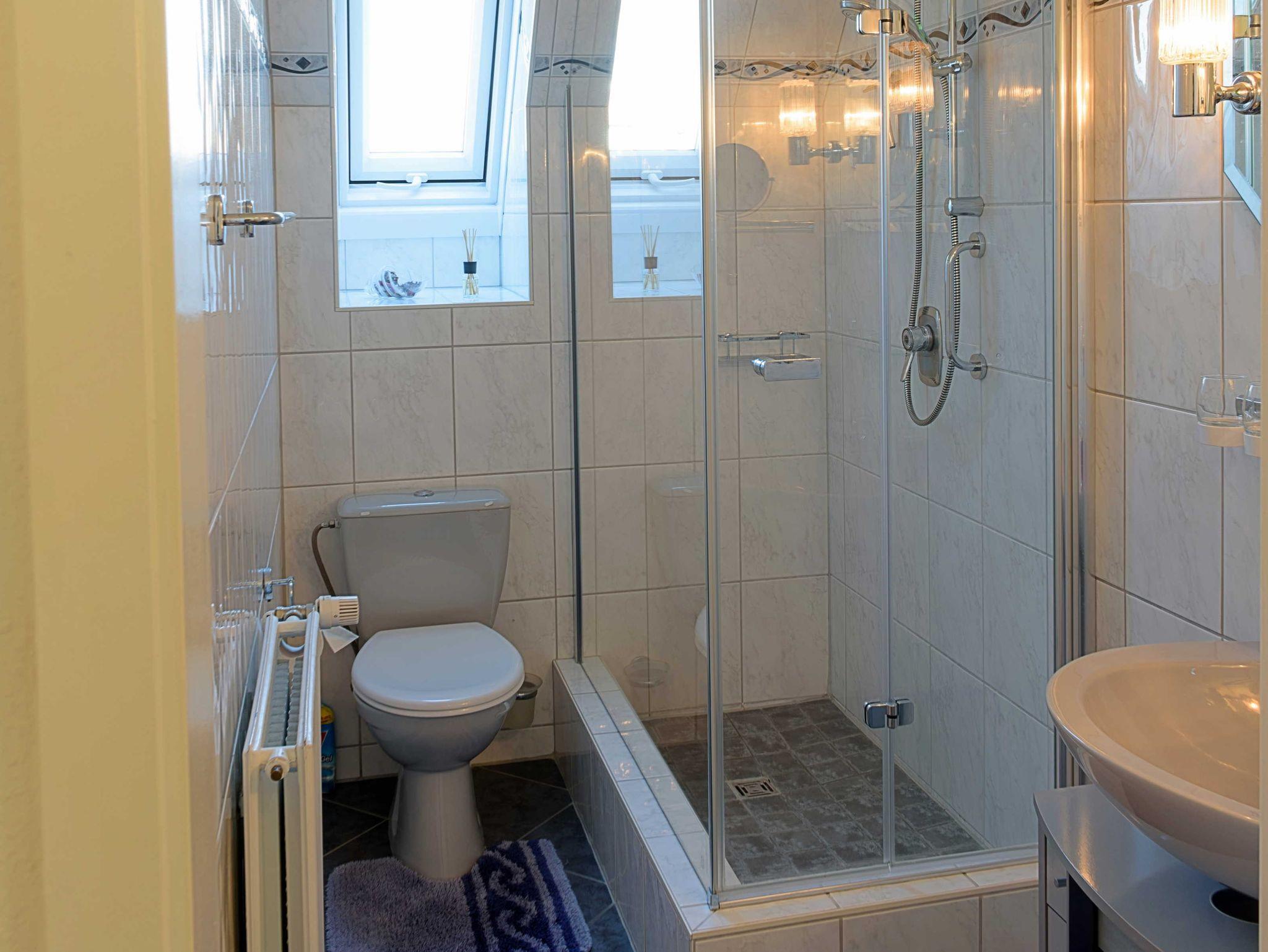 • Das Tageslicht-Duschbad mit WC verfügt über einen großzügigen Duschbereich.
