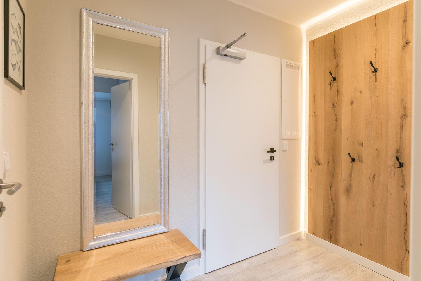 W-LAN, kostenloser PKW-Stellplatz am Gebäude, Diele mit Garderobe und Ganzkörperspiegel, abschließbarer Fahrradabstellraum mit Lademöglichkeit für Ebikes, gemeinschaftliche Waschmaschine + Trockner im Keller, gemeinsame E-Auto-Ladestation (Wallbox, 22KW), Wäsche optional dazu buchbar