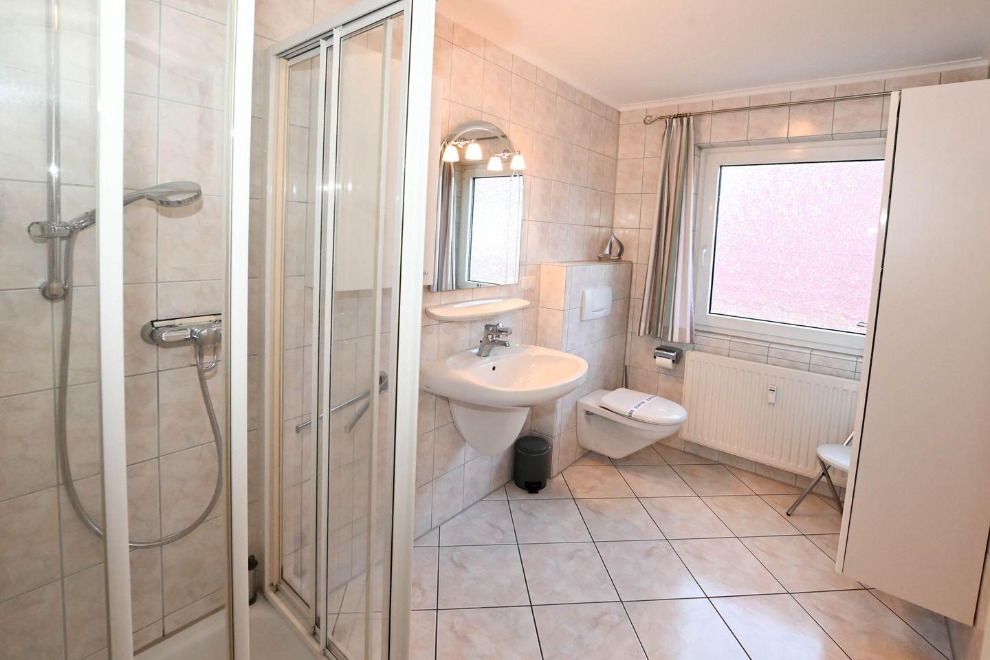 Das Badezimmer ist mit einer Dusche, WC, Waschbecken, Spiegel, Kosmetikspiegel und einem Haartrockner ausgestattet. Die Nutzung einer gemeinschaftlichen Waschmaschine ermöglicht Ihnen zusätzliche Flexibilität während Ihres Aufenthalts.