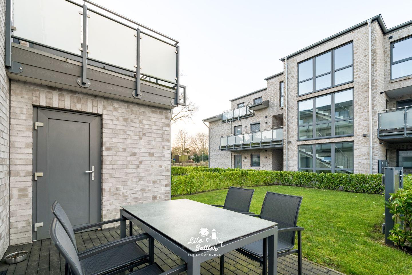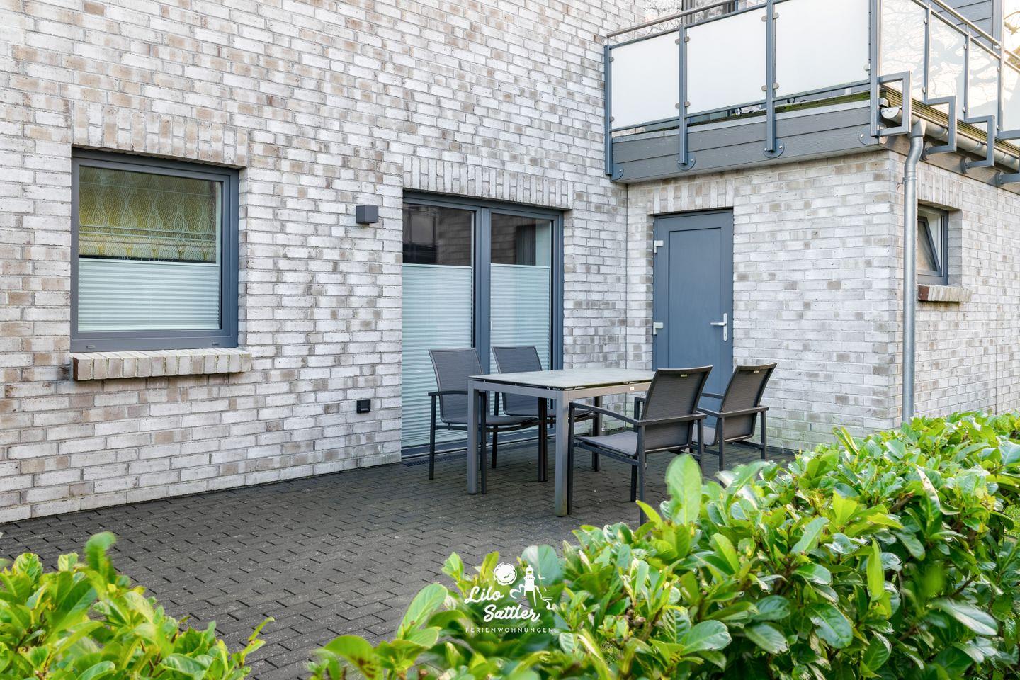 Zwei separate Schlafzimmer – eines mit Doppelbett, eines mit zwei Einzelbetten – bieten ausreichend Platz und Komfort für die ganze Familie. Die sonnige Terrasse mit kleinem Gartenteil ist ideal für ein Frühstück an der frischen Nordseeluft oder für entspannte Abende im Grünen.