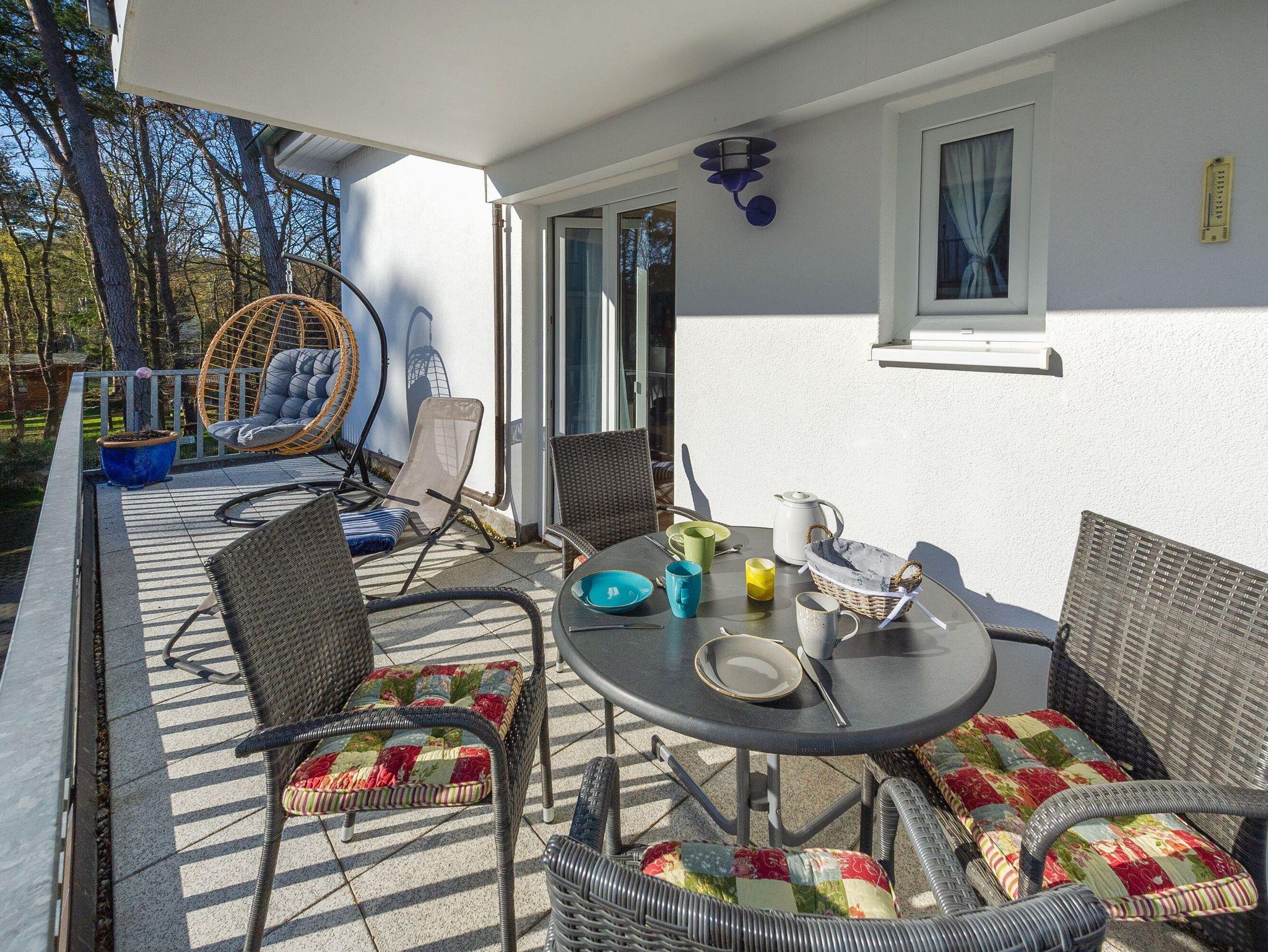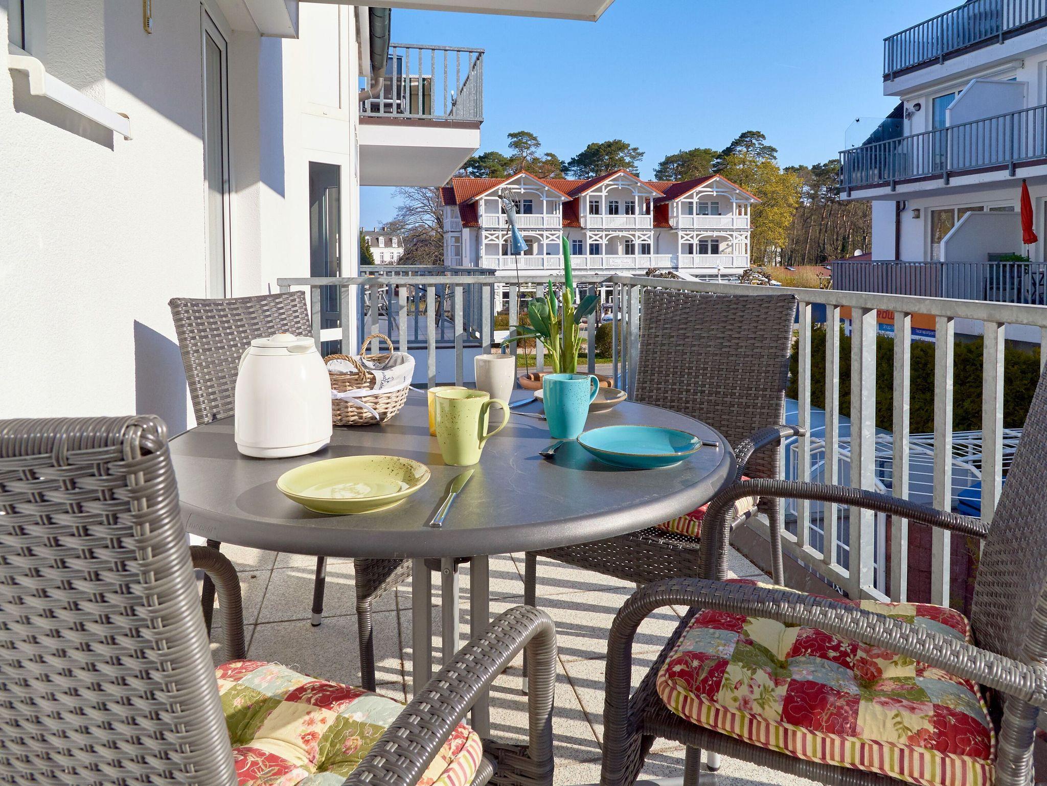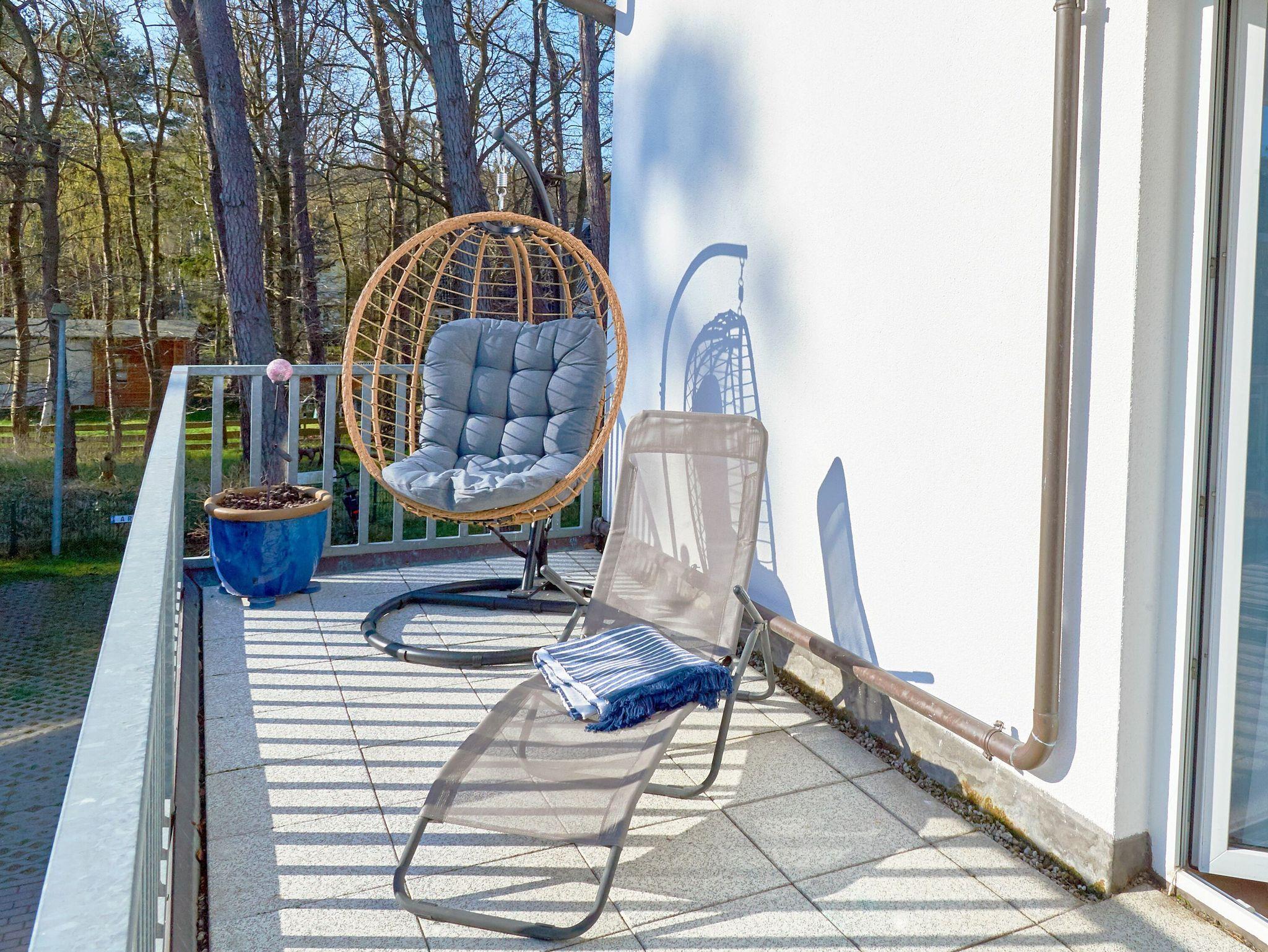 Der rund 13 qm große Balkon Ihres Urlaubsdomizils ist sowohl vom Wohn- als auch vom Schlafzimmer aus zu betreten. Er ist mit mit einer Sitz- bzw. Essgruppe und einem Korbschaukelsessel ausgestattet. Das Schlafzimmer verfügt über ein bequemes Doppelbett und einen geräumigen Kleiderschrank für Ihre Urlaubsgarderobe.