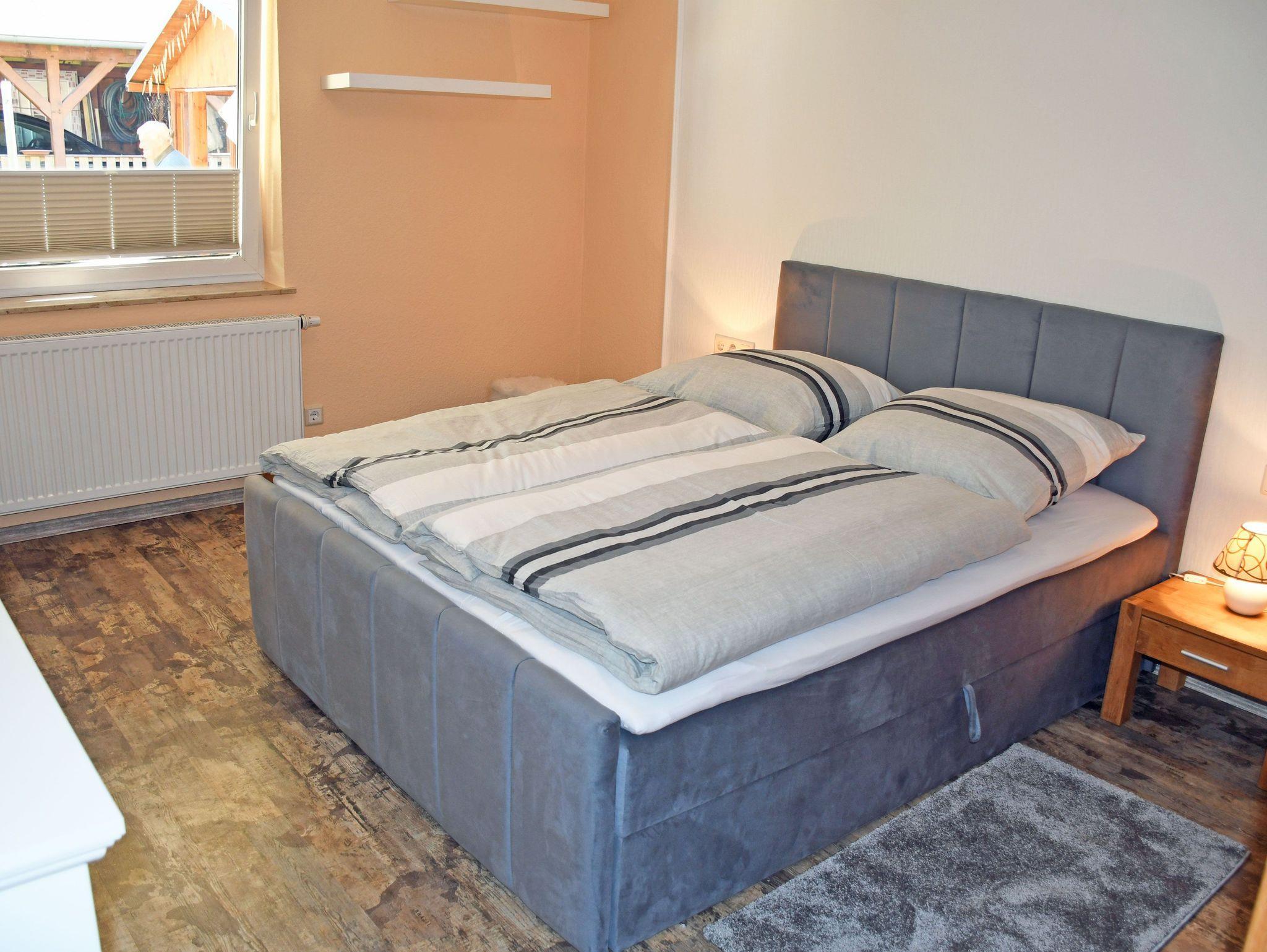 Es ist ca. 58 qm groß, verfügt über WLAN, hat Platz für maximal 2 Erwachsene sowie ein Kind bis 3 Jahre im Kinderreisebett und wurde modern und komfortabel eingerichtet. Im hellen und großen Wohnzimmer befinden sich eine bequeme Sitzcouch mit Tisch und ein modernes TV-Gerät.