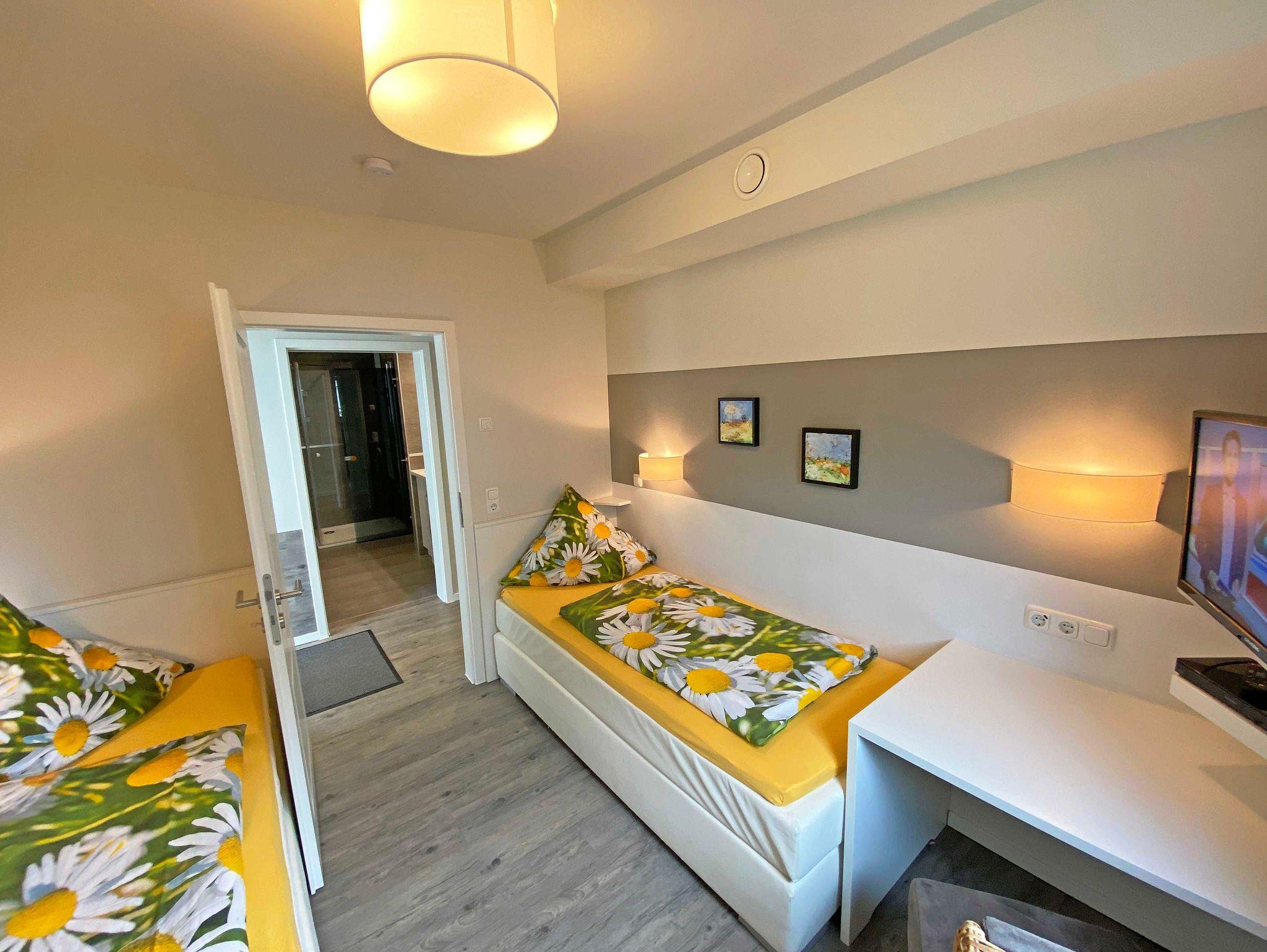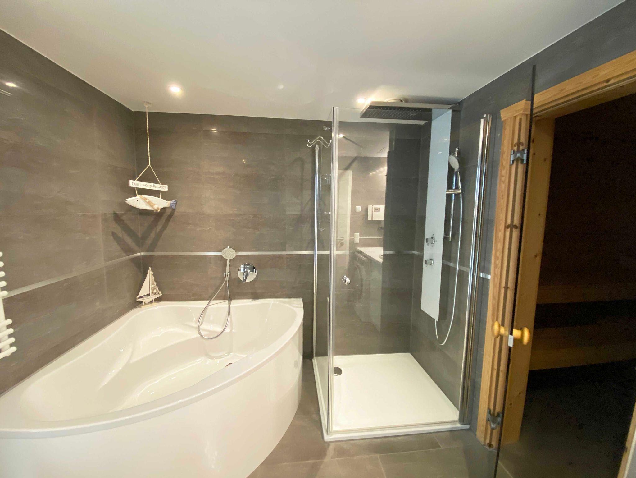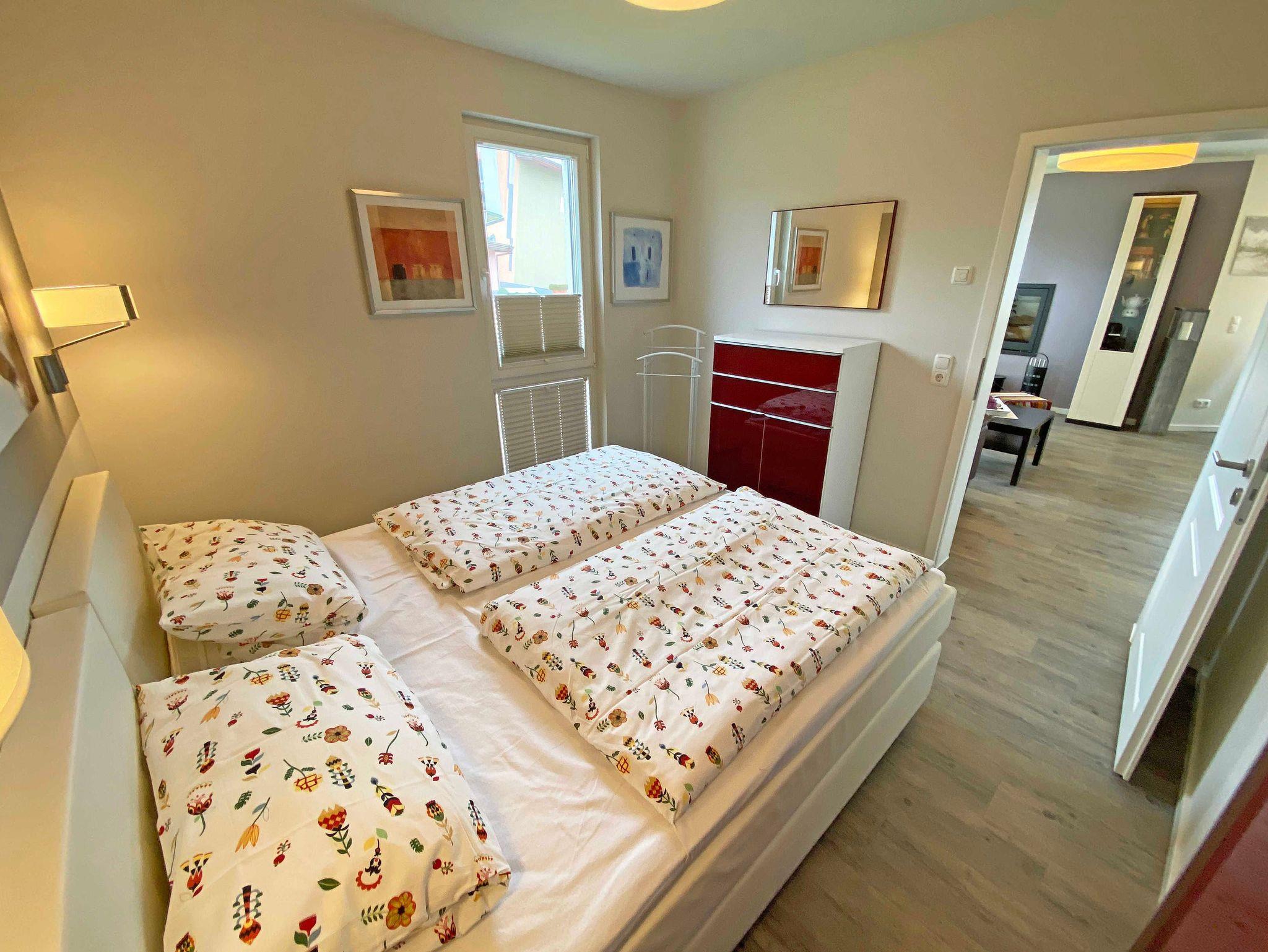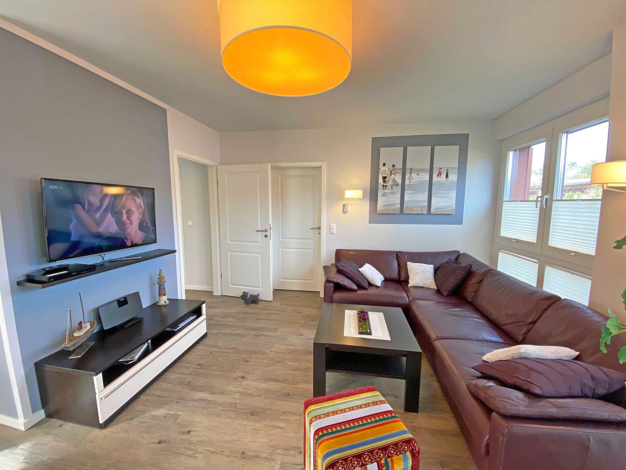 Die stilvoll und komfortabel eingerichtete Nichtraucherferienwohnung „Strandgang“ befindet sich im Erdgeschoss des Hauses. Es erwartet Sie eine 3 - Raumwohnung mit einer Wohnfläche von ca. 70 qm. Die Wohnung ist mit viel Liebe zum Detail ausgestattet und für maximal 4 Erwachsene + 1 Kleinkind bis 3 Jahre im Kinderreisebett. Der offene lichtdurchflutete Wohnbereich mit Kamin ist mit modernen maritimen Möbeln ausgestattet. Eine große, bequeme Ledercouch, Couchtisch mit Hocker, Sideboard und Vitrine sorgen für Gemütlichkeit vor dem Kamin. Für die Unterhaltung steht Ihnen ein Smart-TV mit Blu-Ray-Player zur Verfügung ebenso wie eine kleine Auswahl an Urlaubslektüre und CD`s. Auch auf einen kostenlosen Internetanschluss (WLAN) müssen Sie nicht verzichten. Auf der nach Süd-Osten zum Meer hin ausgerichteten und teilweise überdachten Terrasse, die Sie direkt vom Wohnbereich aus betreten können, stehen Ihnen eine Sitzgarnitur mit Sonnenschirm für ein gemütliches Frühstück in der Morgensonne oder ein Glas Wein am Abend zur Verfügung. Dabei genießen Sie einen wundervollen Blick auf die Strandpromenade und Gartenanlage. Die hochwertig eingerichtete Einbauküche besitzt ein Cerankochfeld, Backofen, Kühlschrank mit Gefrierkombination, Mikrowelle, Toaster, Wasserkocher, Kaffeemaschine, SENSEO Pad Kaffeemaschine mit Thermoskanne, Eierkocher und verschiedenen Küchenutensilien. Der Essbereich schließt sich an und besteht aus einem großen Esstisch und gepolsterten Stühlen. Für einen erholsamen Schlaf steht Ihnen ein Boxspringbett (1,80m x 2,00m) zur Verfügung, mit durchgehendem Topper in Komforthöhe. Nachttischablagen mit Wandleuchten, ein großzügiger Kleiderschrank, Kommode und ein Herrendiener ergänzen die Ausstattung im Schlafzimmer. Ein weiteres Schlafzimmer ist mit 2 Boxspringbetten (0,90m x 2,00m), Kleiderschrank, Schreibtisch mit Stuhl und einem zusätzlichen TV ausgestattet. In allen Räumen gibt es einen Sichtschutz mit Faltjalousien, Verdunkelung in den Schlafzimmern, sowie Insektenschutzgitter. Das große Bad mit Fenster, Waschtisch, Wandspiegel, ebenerdiger Regendusche, Wellnesswanne, WC, Haartrockner, Handtuchtrockner und Kosmetikspiegel ist Ihr Wellnessbereich! Mit der Sauna, Bio-Ofen und LED-Farblicht ist es ein Erlebnis im Sommer wie auch im Winter. Von der Sauna unter die Regendusche oder auch direkt in die Ostsee, danach in die Wellness-Wanne und dann zum Ausklang eine gute Tasse Tee oder ein Glas Rotwein vor dem Kamin. Das ist Urlaub! Ein zweites Bad im Innenbereich bietet Ihnen eine große Dusche, Waschtisch, Haartrockner und WC. Für die kleine Wäsche gibt es eine Waschmaschine / Trockner im Bad. Der Flurbereich ist mit einem Ganzkörperspiegel, Garderobe und Schuhablage ausgestattet. Alle Wohn- und Schlafräume haben einen angenehmen Vinyl Fußboden. Die Bäder sind gefliest. Eine Fußbodenheizung sorgt an kühleren Tagen für wohlige Wärme. Für unsere kleinen Gäste stehen ein Kinderreisebett sowie ein Hochstuhl inklusive zur Verfügung. Ihre eigenen oder gemieteten Fahrräder können Sie im Fahrradraum der Tiefgarage abstellen. In der Tiefgarage steht Ihnen ein PKW-Abstellplatz (Nr.04, Einfahrtshöhe 1,95m) zur Verfügung. Auf der Grünanlage des Villen Ensembles sind Grillplätze zur Gemeinschaftsnutzung vorhanden. 1 kleines Haustier ist mit seinem eigenen Schlafplatz gegen eine Gebühr ein gern gesehener Gast. Die Erstausstattung eines Wäschepaketes (komplette Bettwäsche, 1 Duschhandtuch, 2 kleine Handtücher) können Sie bis 14 Tage vor Anreise gegen einen Aufpreis dazu buchen oder durch eigene ergänzen. Ab 2 gebuchten Paketen erhalten Sie einmalig 1 Geschirrtuch und einen Duschvorleger dazu.