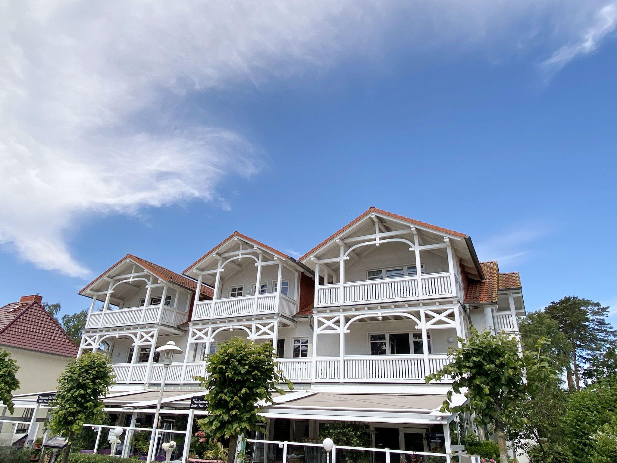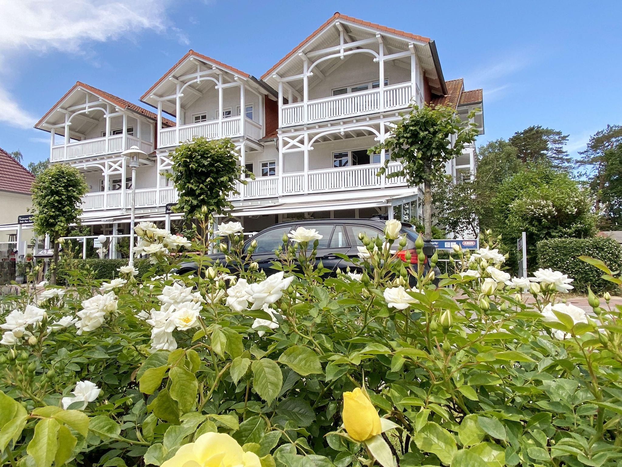 Das im Bäderstil erbaute Haus Nicolai liegt zentral in der Strandstraße des Ostseebades Baabe. Die Dreizimmerferienwohnung befindet sich im Dachgeschoss des Hauses und verfügt über einen Balkon, von dem aus Sie einen schönen Blick auf die Flaniermeile des Ortes haben. Die Haltestelle der bekannten Schmalspurbahn Rasender Roland, sowie Einkaufmöglichkeiten, Bäckereien und Cafés erreichen Sie in nur wenigen Schritten. Ein hauseigenes Restaurant befindet sich im Erdgeschoss. Die Ferienwohnung bietet einen guten Ausgangspunkt, um einen unvergesslichen Urlaub auf Rügen zu erleben, denn der feinsandige Strand ist nur ca. 500 Meter vom Haus Nicolai entfernt und auch in der kalten Jahreszeit lädt der Strand zu Spaziergängen in die Nachbarorte Sellin und Göhren ein.