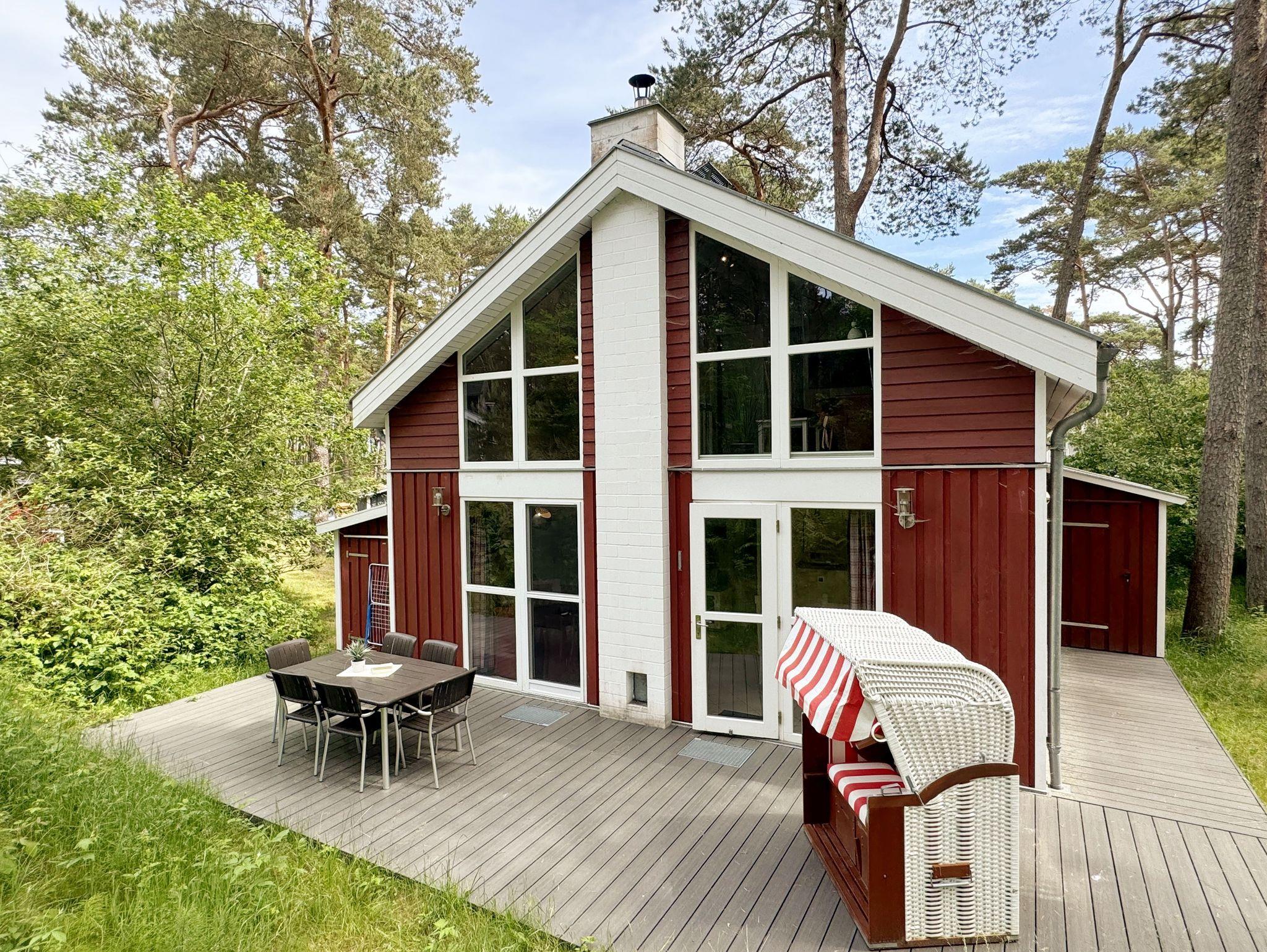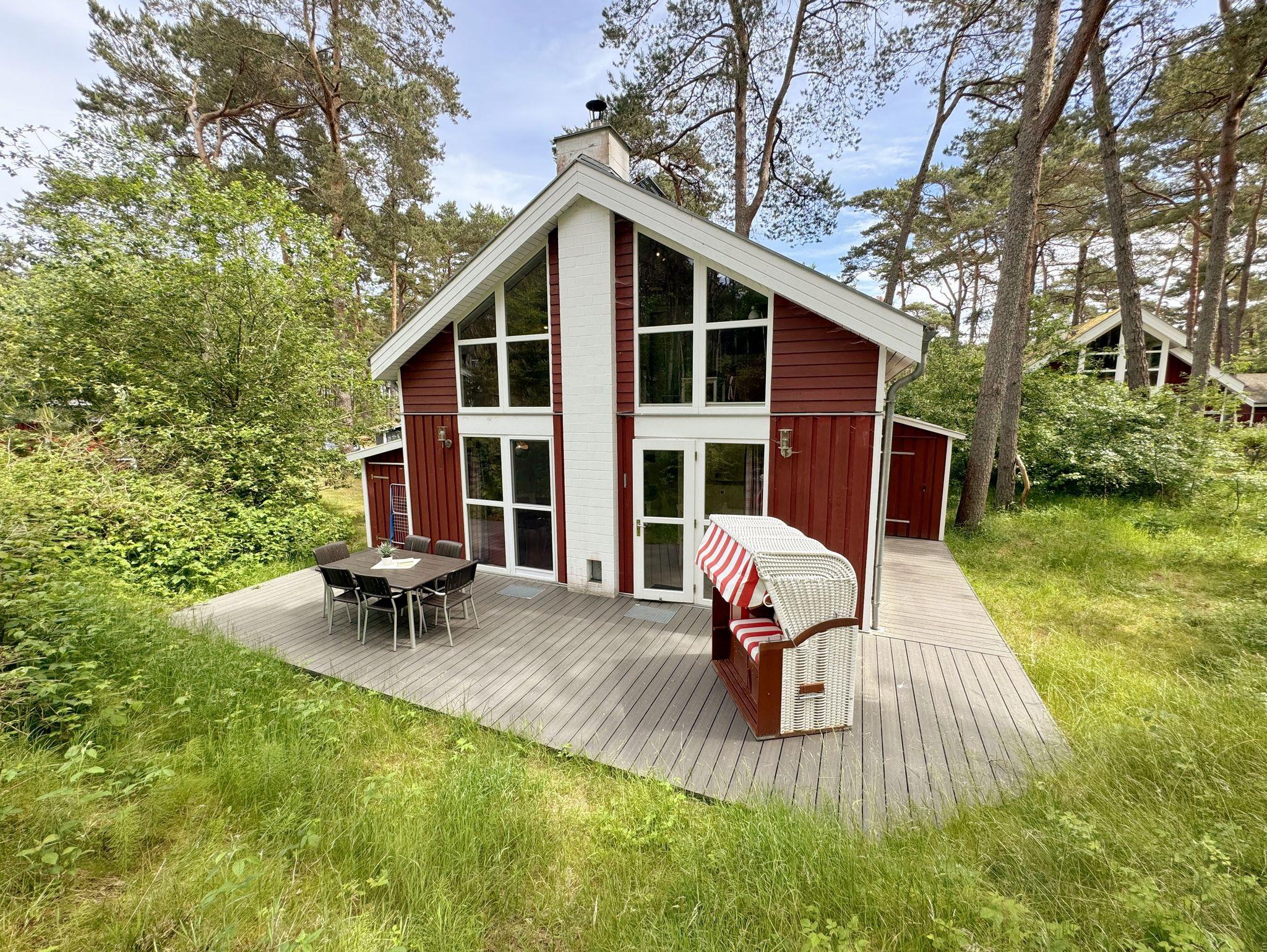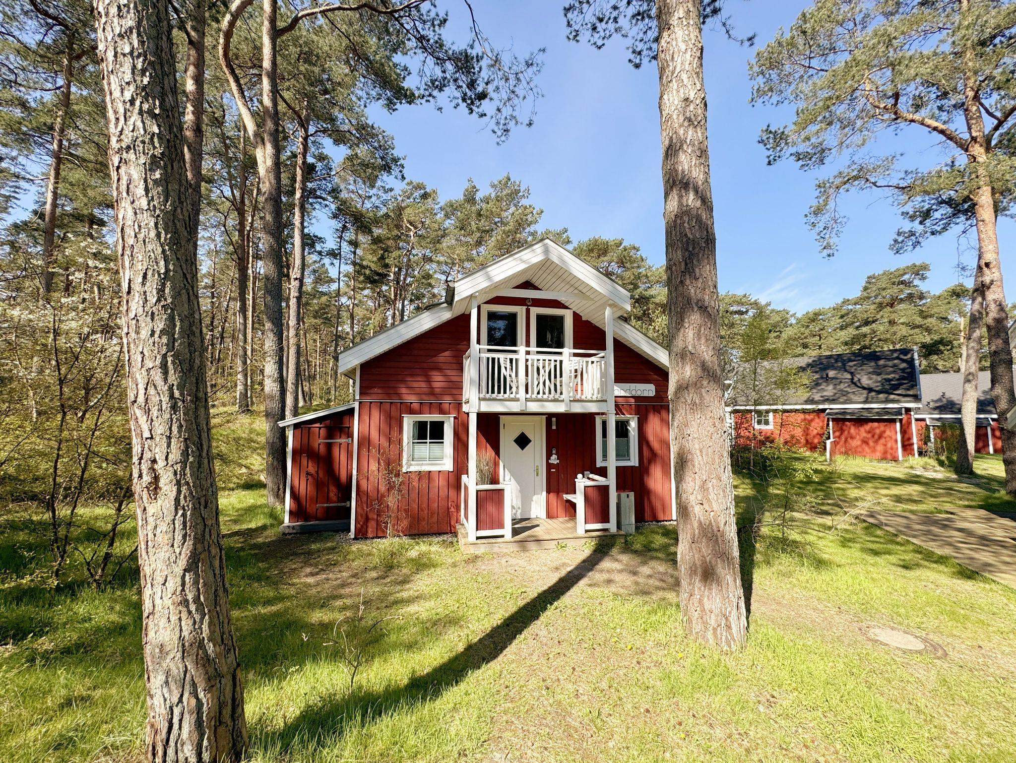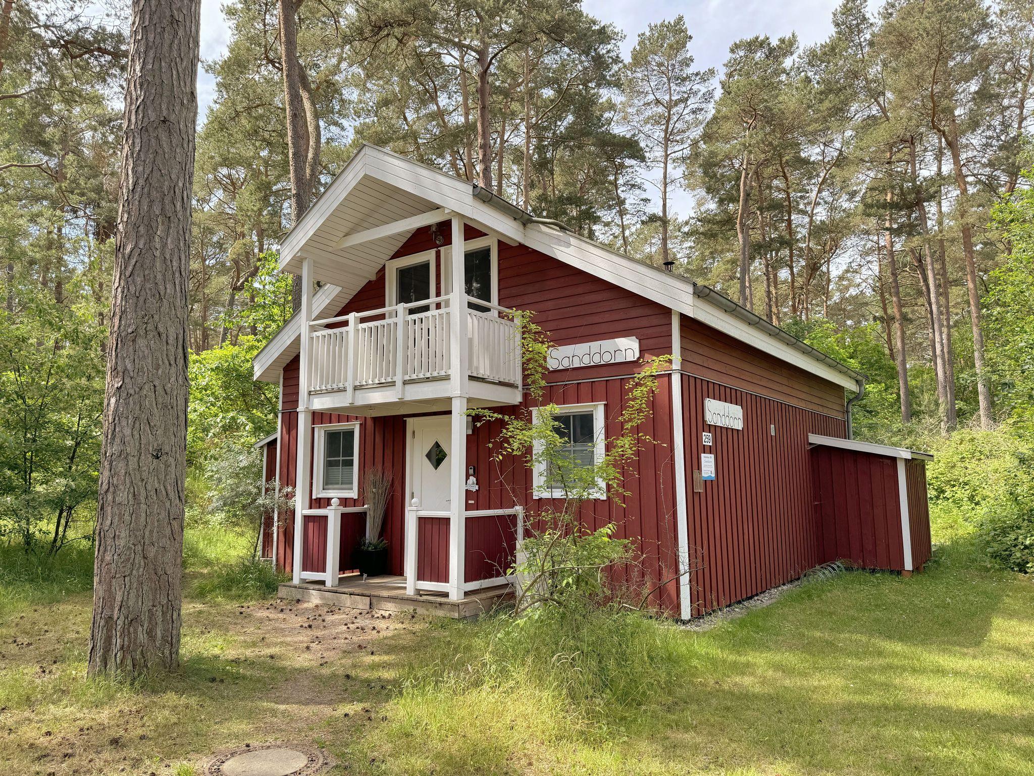 Das haustierfreie Nichtraucherferienhaus „Sanddorn“ bietet ausreichend Platz für 6 Erwachsene und 1 Kleinkind bis 3 Jahre im Kinderreisebett. Das 85 m² große Holzhaus in typisch skandinavischem Stil ist liebevoll ausgestattet und bietet eine hochwertige Einrichtung auf zwei Etagen. Es erwartet Sie im Erdgeschoss ein großer Wohn- und Essbereich mit Kaminofen und Smart-TV, Blu-Ray-Player sowie ein DAB-Radio-CD-Player. Auch auf einen Internetanschluss über WLAN brauchen Sie im Urlaub nicht verzichten. Dieser ist für Sie inklusive. Eine große Ledercouch mit Couchtisch und 2 gemütlichen Ledersesseln und einer Leselampe garantieren entspannende Abende. Der von der Küche durch einen Tresen abgetrennte Essbereich mit großem Esstisch bietet ausreichend Platz für 6 Personen. Die moderne Einbauküche ist ausgestattet mit allem, was man für das alltägliche Leben braucht, daher gehören ein Kühlschrank mit Gefrierfach, ein Backofen mit Ceranfeld und Dunstabzug, eine Mikrowelle, eine Spülmaschine, ein Wasserkocher, eine Kaffeemaschine, eine Senseo Pad-Maschine, ein Toaster, ein Eierkocher, ein Mixer, Teekannen sowie alle weiteren Utensilien zum Kochen und Essen zum Inventar. Ebenfalls Teil des Erdgeschosses ist ein Schlafzimmer mit einem Doppelbett (1,80 m x 2,00 m) mit hochwertigen Kaltschaummatratzen, einer Nachttischablage sowie einem Kleiderschrank. Insektenschutzgitter und Verdunklungsplissee sorgen hier für einen ruhigen und erholsamen Schlaf. Das großzügige Bad mit einer ebenerdigen Dusche, Whirlpool, Sauna, Waschmaschine, Handtuchtrockner, Fön und großem Waschtisch wird Sie begeistern. Sie erreichen es vom Flur aus mit Schuhregal und Garderobe. Im Wohnbereich sowie im Bad sorgt die Fußbodenheizung für angenehme Wärme. In der 1. Etage befindet sich eine helle Galerie mit großer Fensterfront und bequemer Ledercouch, kleinem Tisch, Stehlampe und fantastischem unverbautem Blick in den Kiefernwald. Ein Regal mit Büchern sowie eine Kiste mit Spielzeug stehen Ihnen hier ebenfalls zu Verfügung. Von der Galerie aus erreichen Sie 2 weitere Schlafzimmer sowie einem Gäste-WC mit kleinem Waschtisch. In beiden Schlafzimmern, gemütlich unter Dachschrägen, finden Sie jeweils 2 Betten (einmal als Doppelbett und 2 Einzelbetten) mit verstellbaren Lattenrosten und Kaltschaummatratzen (4 x 0,90 m x 2,00 m), 2 Nachttischablagen und einem Kleiderschrank. 1x Kinderreisebett (ohne Zusatzmatratze, ohne Bettinlett) für ein Kleinkind bis 3 Jahre ist zusätzlich hier untergebracht. Die Balkontüren beider Schlafzimmer mit Verdunklungsgardinen und Insektenschutzgitter führen auf einen kleinen bestuhlten Balkon (Nord/Ost). Hier haben Sie einen herrlich weiten Blick in den Strandpark und auf die Ostsee. Auf der großzügigen bestuhlten Holzterrasse (Süd/West) finden zusätzlich ein Strandkorb (Mai-September), Sonnenliegen und ein Sonnenschirm ihren Platz. Eine angenehme Wärme wird durch Infrarotheizkörper ausgestrahlt. Für Ihre Räder befindet sich am Haus ein Fahrradständer. Im Anbauschuppen können Sie diverse Strandutensilien unterbringen. Ein PKW-Stellplatz (Nr. 259) befindet sich direkt vor dem Haus. Ab einem Aufenthalt von 7 Nächten, ist ein Sack Kaminholz in der Zeit vom 01.Oktober bis 30. April für Sie inklusive. Die Erstausstattung eines Wäschepaketes (komplette Bettwäsche, 1 Duschhandtuch, 2 kleine Handtücher) können Sie bis 14 Tage vor Anreise gegen einen Aufpreis dazu buchen oder durch eigene ergänzen. Ab 2 gebuchten Paketen erhalten Sie einmalig 1 Geschirrhandtuch und 1 Duschvorleger hinzu.