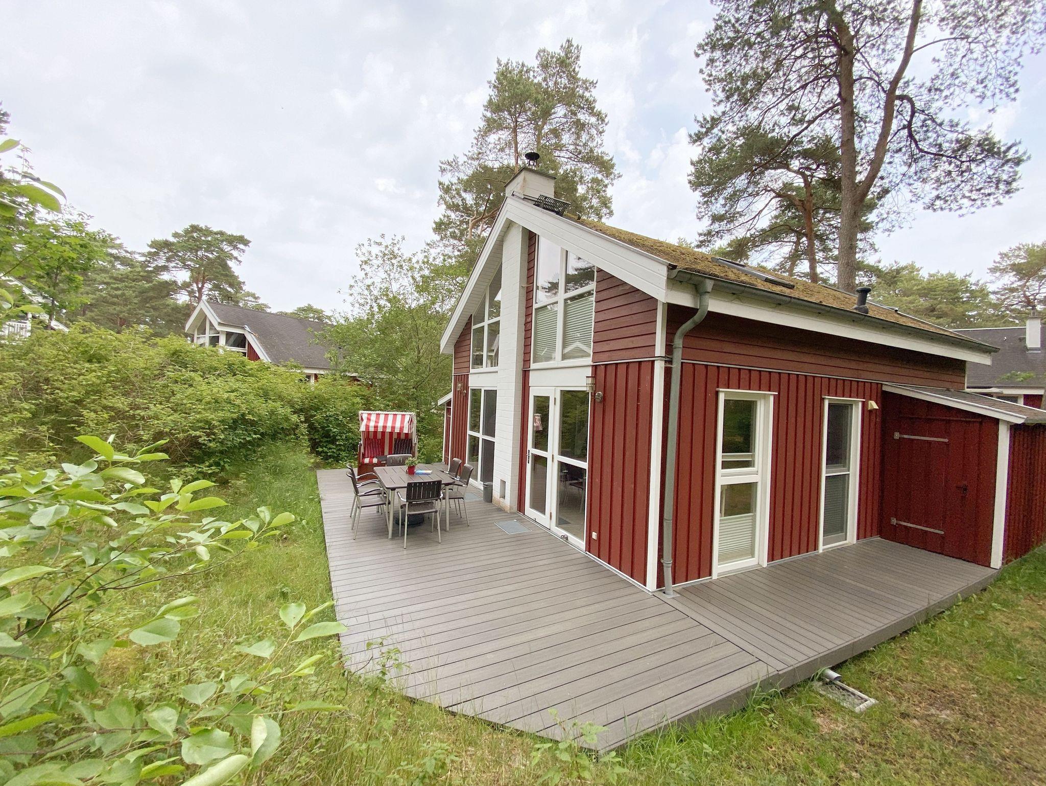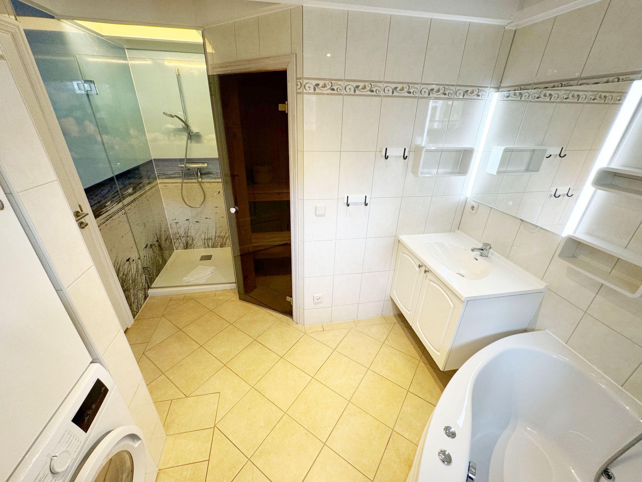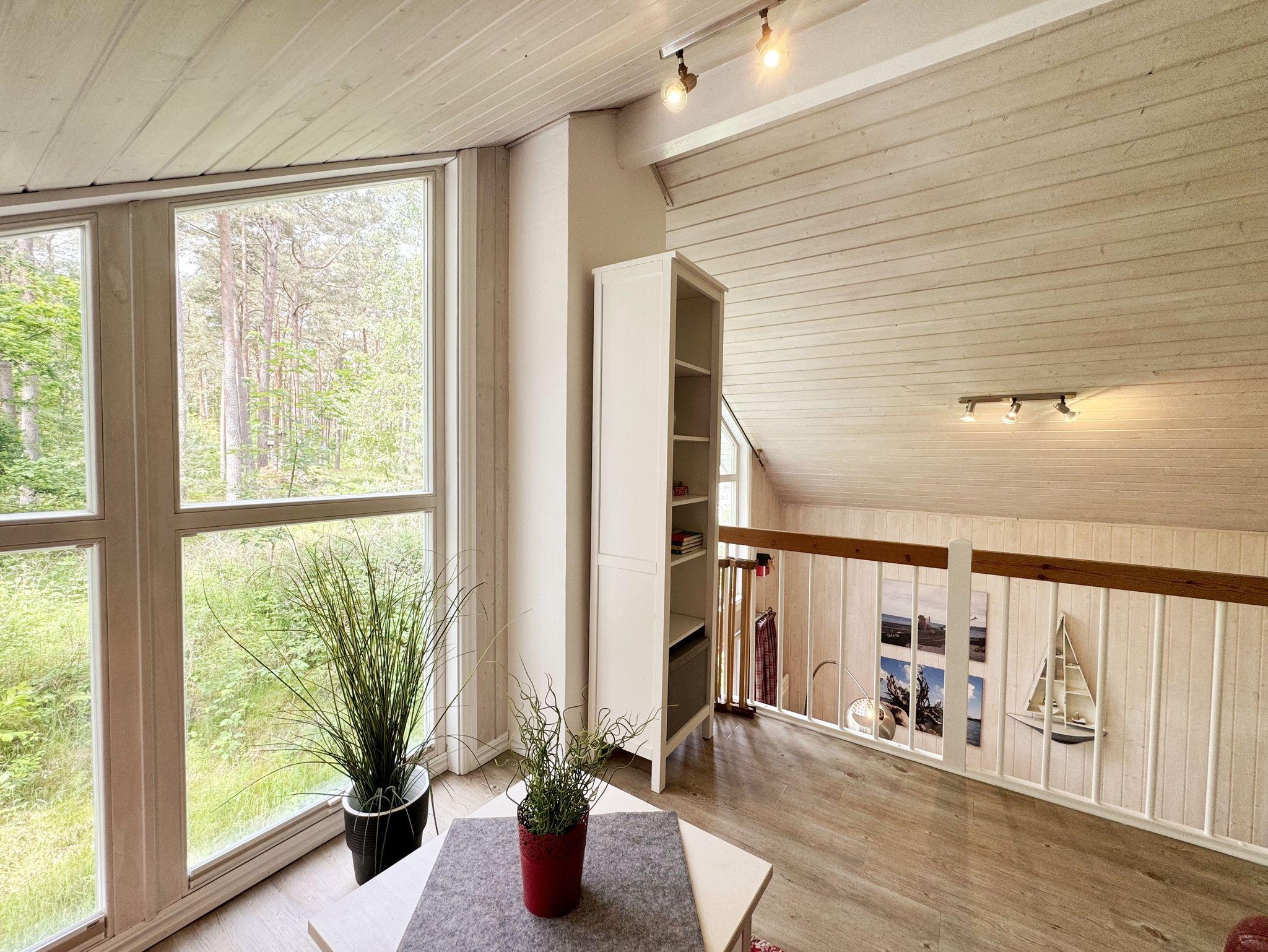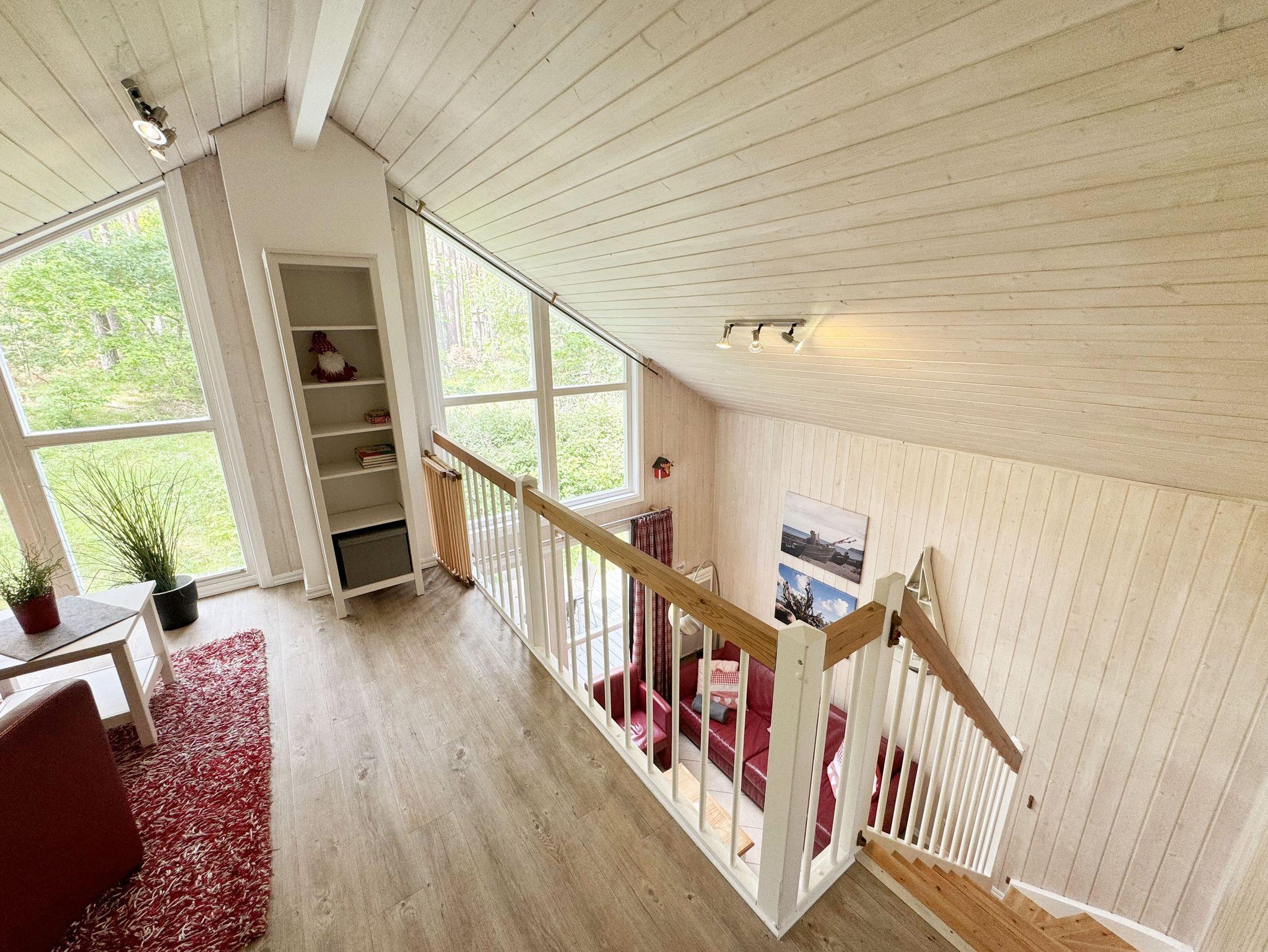 Das haustierfreie Nichtraucherferienhaus „Sanddorn“ bietet ausreichend Platz für 6 Erwachsene und 1 Kleinkind bis 3 Jahre im Kinderreisebett. Das 85 m² große Holzhaus in typisch skandinavischem Stil ist liebevoll ausgestattet und bietet eine hochwertige Einrichtung auf zwei Etagen. Es erwartet Sie im Erdgeschoss ein großer Wohn- und Essbereich mit Kaminofen und Smart-TV, Blu-Ray-Player sowie ein DAB-Radio-CD-Player. Auch auf einen Internetanschluss über WLAN brauchen Sie im Urlaub nicht verzichten. Dieser ist für Sie inklusive. Eine große Ledercouch mit Couchtisch und 2 gemütlichen Ledersesseln und einer Leselampe garantieren entspannende Abende. Der von der Küche durch einen Tresen abgetrennte Essbereich mit großem Esstisch bietet ausreichend Platz für 6 Personen. Die moderne Einbauküche ist ausgestattet mit allem, was man für das alltägliche Leben braucht, daher gehören ein Kühlschrank mit Gefrierfach, ein Backofen mit Ceranfeld und Dunstabzug, eine Mikrowelle, eine Spülmaschine, ein Wasserkocher, eine Kaffeemaschine, eine Senseo Pad-Maschine, ein Toaster, ein Eierkocher, ein Mixer, Teekannen sowie alle weiteren Utensilien zum Kochen und Essen zum Inventar. Ebenfalls Teil des Erdgeschosses ist ein Schlafzimmer mit einem Doppelbett (1,80 m x 2,00 m) mit hochwertigen Kaltschaummatratzen, einer Nachttischablage sowie einem Kleiderschrank. Insektenschutzgitter und Verdunklungsplissee sorgen hier für einen ruhigen und erholsamen Schlaf. Das großzügige Bad mit einer ebenerdigen Dusche, Whirlpool, Sauna, Waschmaschine, Handtuchtrockner, Fön und großem Waschtisch wird Sie begeistern. Sie erreichen es vom Flur aus mit Schuhregal und Garderobe. Im Wohnbereich sowie im Bad sorgt die Fußbodenheizung für angenehme Wärme. In der 1. Etage befindet sich eine helle Galerie mit großer Fensterfront und bequemer Ledercouch, kleinem Tisch, Stehlampe und fantastischem unverbautem Blick in den Kiefernwald. Ein Regal mit Büchern sowie eine Kiste mit Spielzeug stehen Ihnen hier ebenfalls zu Verfügung. Von der Galerie aus erreichen Sie 2 weitere Schlafzimmer sowie einem Gäste-WC mit kleinem Waschtisch. In beiden Schlafzimmern, gemütlich unter Dachschrägen, finden Sie jeweils 2 Betten (einmal als Doppelbett und 2 Einzelbetten) mit verstellbaren Lattenrosten und Kaltschaummatratzen (4 x 0,90 m x 2,00 m), 2 Nachttischablagen und einem Kleiderschrank. 1x Kinderreisebett (ohne Zusatzmatratze, ohne Bettinlett) für ein Kleinkind bis 3 Jahre ist zusätzlich hier untergebracht. Die Balkontüren beider Schlafzimmer mit Verdunklungsgardinen und Insektenschutzgitter führen auf einen kleinen bestuhlten Balkon (Nord/Ost). Hier haben Sie einen herrlich weiten Blick in den Strandpark und auf die Ostsee. Auf der großzügigen bestuhlten Holzterrasse (Süd/West) finden zusätzlich ein Strandkorb (Mai-September), Sonnenliegen und ein Sonnenschirm ihren Platz. Eine angenehme Wärme wird durch Infrarotheizkörper ausgestrahlt. Für Ihre Räder befindet sich am Haus ein Fahrradständer. Im Anbauschuppen können Sie diverse Strandutensilien unterbringen. Ein PKW-Stellplatz (Nr. 259) befindet sich direkt vor dem Haus. Ab einem Aufenthalt von 7 Nächten, ist ein Sack Kaminholz in der Zeit vom 01.Oktober bis 30. April für Sie inklusive. Die Erstausstattung eines Wäschepaketes (komplette Bettwäsche, 1 Duschhandtuch, 2 kleine Handtücher) können Sie bis 14 Tage vor Anreise gegen einen Aufpreis dazu buchen oder durch eigene ergänzen. Ab 2 gebuchten Paketen erhalten Sie einmalig 1 Geschirrhandtuch und 1 Duschvorleger hinzu.