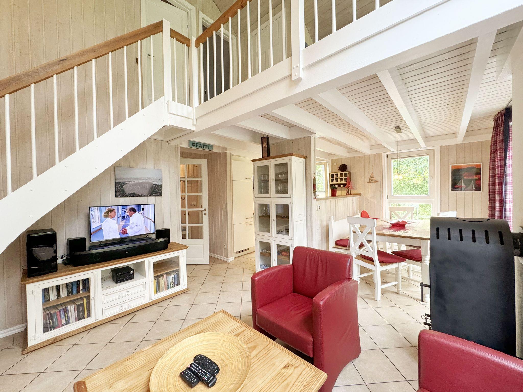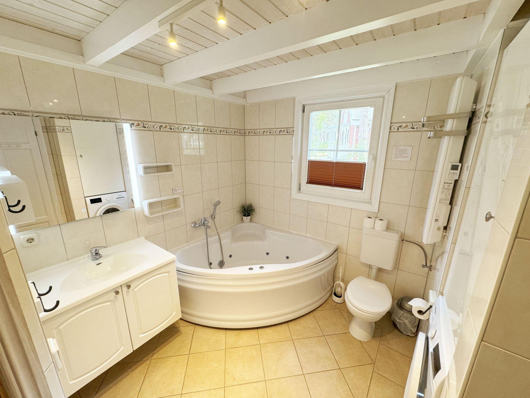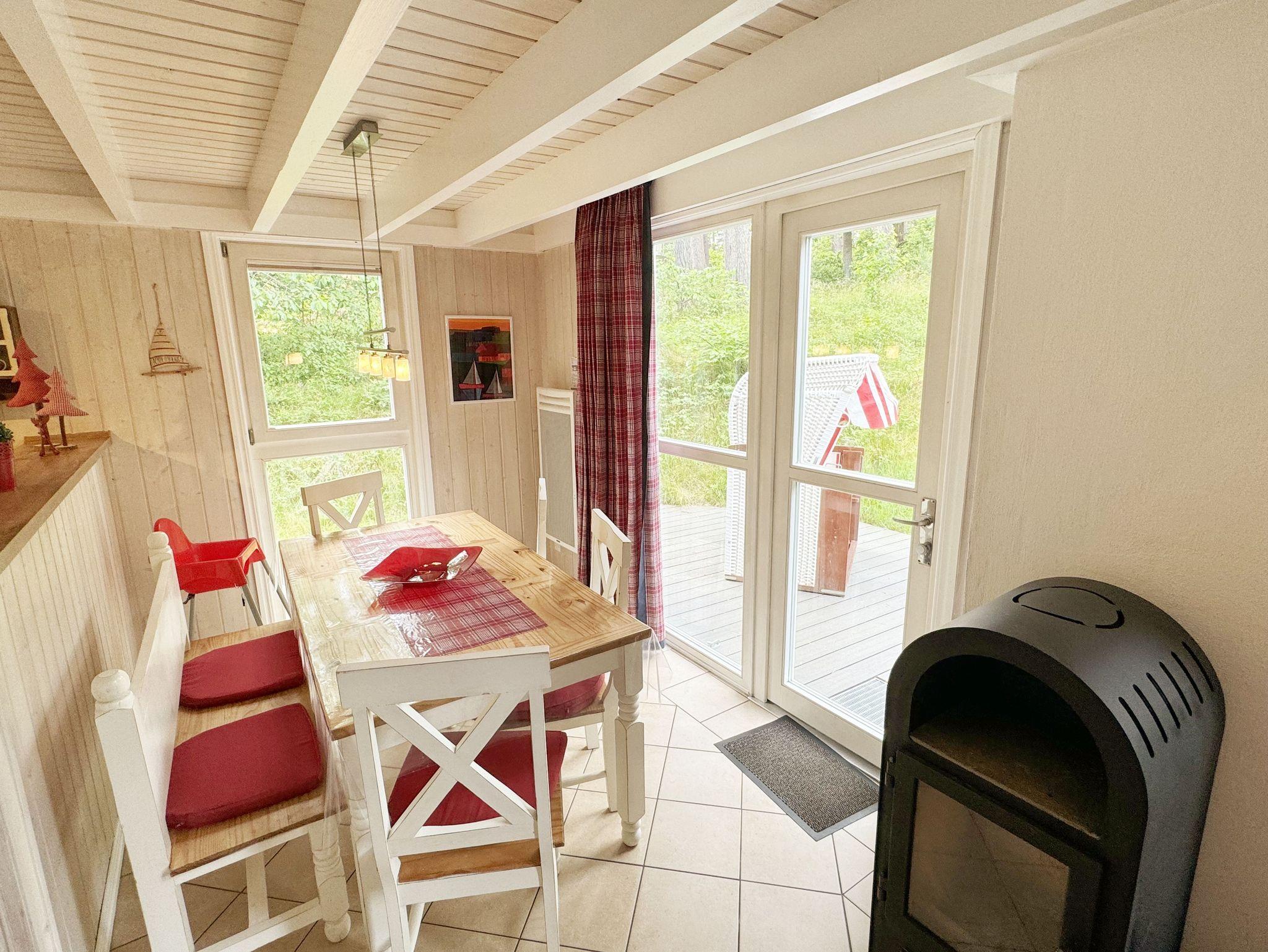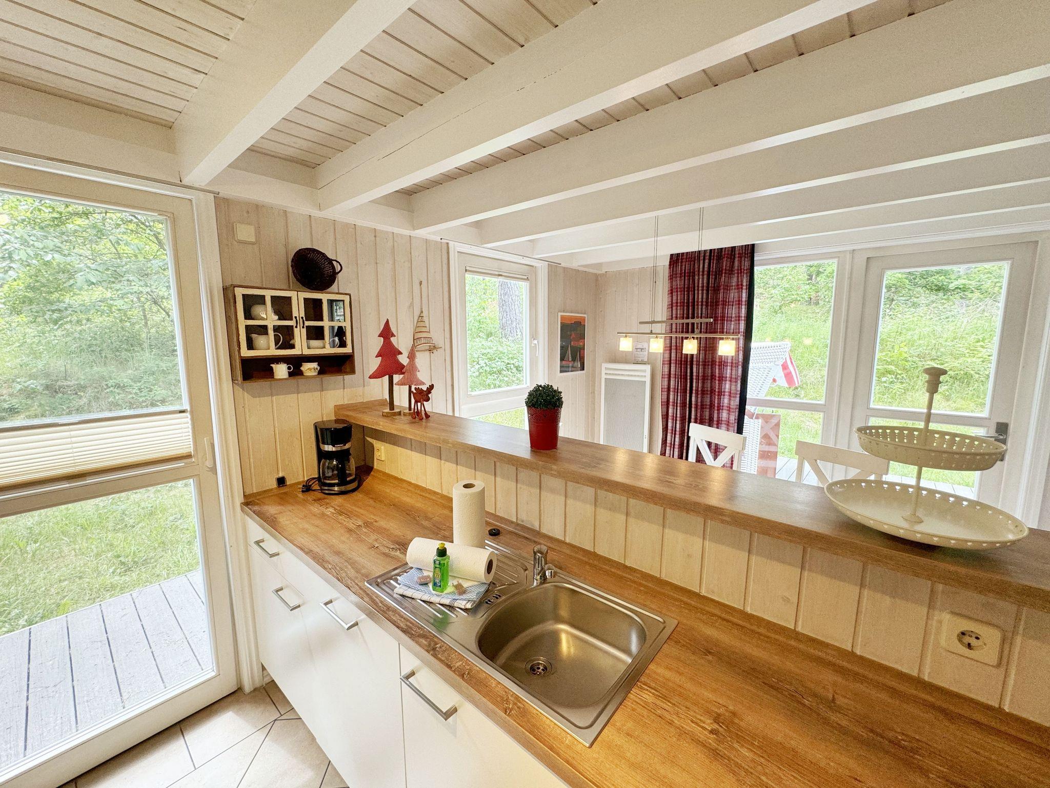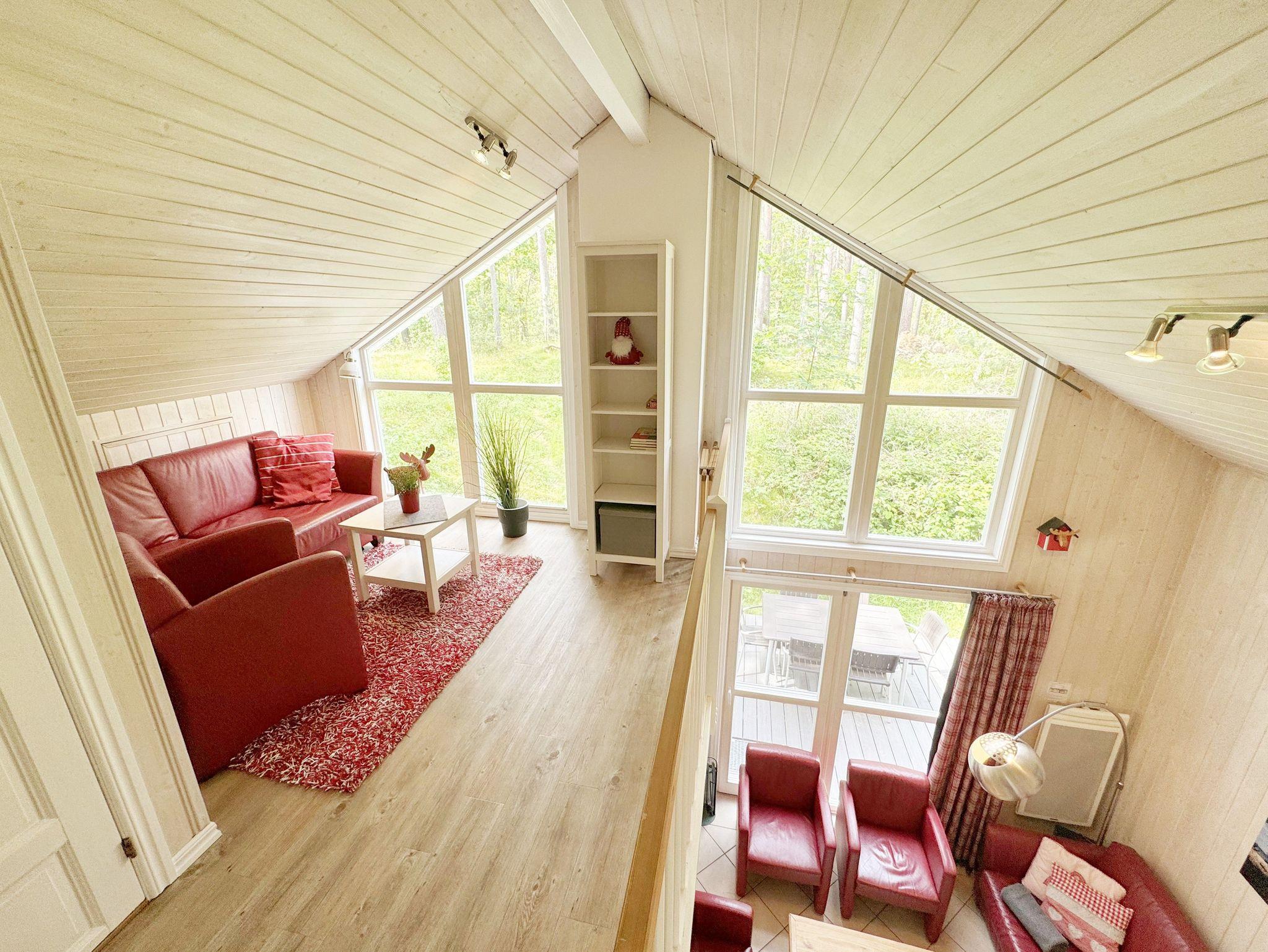 Das haustierfreie Nichtraucherferienhaus „Sanddorn“ bietet ausreichend Platz für 6 Erwachsene und 1 Kleinkind bis 3 Jahre im Kinderreisebett. Das 85 m² große Holzhaus in typisch skandinavischem Stil ist liebevoll ausgestattet und bietet eine hochwertige Einrichtung auf zwei Etagen. Es erwartet Sie im Erdgeschoss ein großer Wohn- und Essbereich mit Kaminofen und Smart-TV, Blu-Ray-Player sowie ein DAB-Radio-CD-Player. Auch auf einen Internetanschluss über WLAN brauchen Sie im Urlaub nicht verzichten. Dieser ist für Sie inklusive. Eine große Ledercouch mit Couchtisch und 2 gemütlichen Ledersesseln und einer Leselampe garantieren entspannende Abende. Der von der Küche durch einen Tresen abgetrennte Essbereich mit großem Esstisch bietet ausreichend Platz für 6 Personen. Die moderne Einbauküche ist ausgestattet mit allem, was man für das alltägliche Leben braucht, daher gehören ein Kühlschrank mit Gefrierfach, ein Backofen mit Ceranfeld und Dunstabzug, eine Mikrowelle, eine Spülmaschine, ein Wasserkocher, eine Kaffeemaschine, eine Senseo Pad-Maschine, ein Toaster, ein Eierkocher, ein Mixer, Teekannen sowie alle weiteren Utensilien zum Kochen und Essen zum Inventar. Ebenfalls Teil des Erdgeschosses ist ein Schlafzimmer mit einem Doppelbett (1,80 m x 2,00 m) mit hochwertigen Kaltschaummatratzen, einer Nachttischablage sowie einem Kleiderschrank. Insektenschutzgitter und Verdunklungsplissee sorgen hier für einen ruhigen und erholsamen Schlaf. Das großzügige Bad mit einer ebenerdigen Dusche, Whirlpool, Sauna, Waschmaschine, Handtuchtrockner, Fön und großem Waschtisch wird Sie begeistern. Sie erreichen es vom Flur aus mit Schuhregal und Garderobe. Im Wohnbereich sowie im Bad sorgt die Fußbodenheizung für angenehme Wärme. In der 1. Etage befindet sich eine helle Galerie mit großer Fensterfront und bequemer Ledercouch, kleinem Tisch, Stehlampe und fantastischem unverbautem Blick in den Kiefernwald. Ein Regal mit Büchern sowie eine Kiste mit Spielzeug stehen Ihnen hier ebenfalls zu Verfügung. Von der Galerie aus erreichen Sie 2 weitere Schlafzimmer sowie einem Gäste-WC mit kleinem Waschtisch. In beiden Schlafzimmern, gemütlich unter Dachschrägen, finden Sie jeweils 2 Betten (einmal als Doppelbett und 2 Einzelbetten) mit verstellbaren Lattenrosten und Kaltschaummatratzen (4 x 0,90 m x 2,00 m), 2 Nachttischablagen und einem Kleiderschrank. 1x Kinderreisebett (ohne Zusatzmatratze, ohne Bettinlett) für ein Kleinkind bis 3 Jahre ist zusätzlich hier untergebracht. Die Balkontüren beider Schlafzimmer mit Verdunklungsgardinen und Insektenschutzgitter führen auf einen kleinen bestuhlten Balkon (Nord/Ost). Hier haben Sie einen herrlich weiten Blick in den Strandpark und auf die Ostsee. Auf der großzügigen bestuhlten Holzterrasse (Süd/West) finden zusätzlich ein Strandkorb (Mai-September), Sonnenliegen und ein Sonnenschirm ihren Platz. Eine angenehme Wärme wird durch Infrarotheizkörper ausgestrahlt. Für Ihre Räder befindet sich am Haus ein Fahrradständer. Im Anbauschuppen können Sie diverse Strandutensilien unterbringen. Ein PKW-Stellplatz (Nr. 259) befindet sich direkt vor dem Haus. Ab einem Aufenthalt von 7 Nächten, ist ein Sack Kaminholz in der Zeit vom 01.Oktober bis 30. April für Sie inklusive. Die Erstausstattung eines Wäschepaketes (komplette Bettwäsche, 1 Duschhandtuch, 2 kleine Handtücher) können Sie bis 14 Tage vor Anreise gegen einen Aufpreis dazu buchen oder durch eigene ergänzen. Ab 2 gebuchten Paketen erhalten Sie einmalig 1 Geschirrhandtuch und 1 Duschvorleger hinzu.
