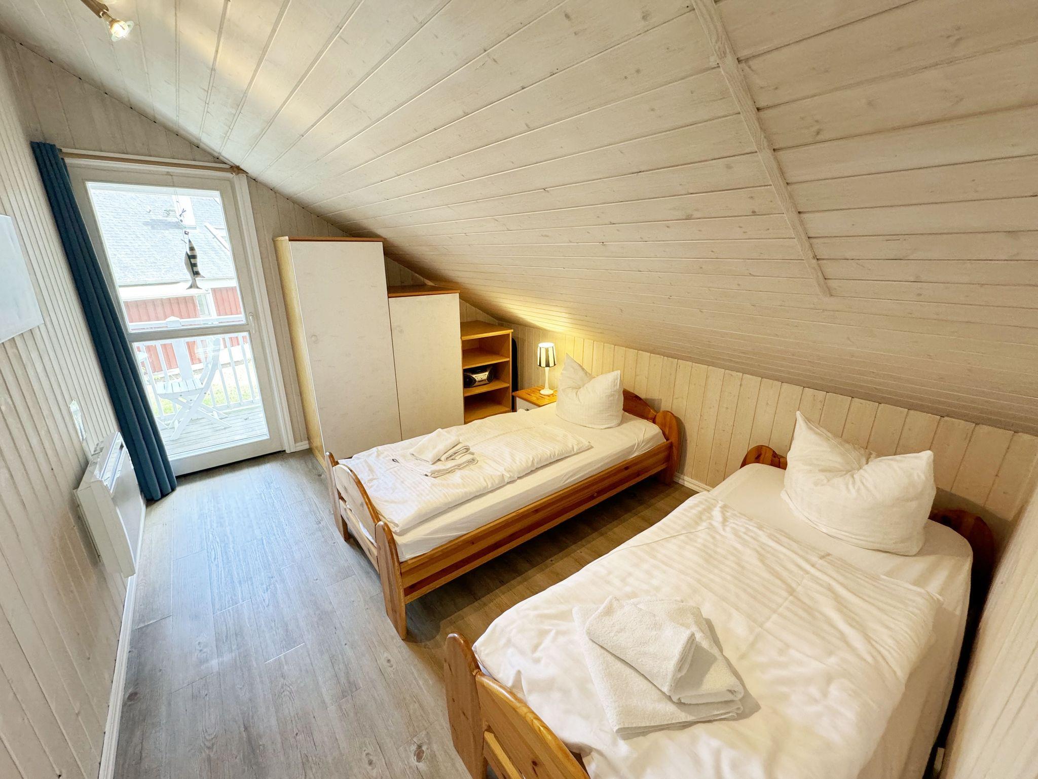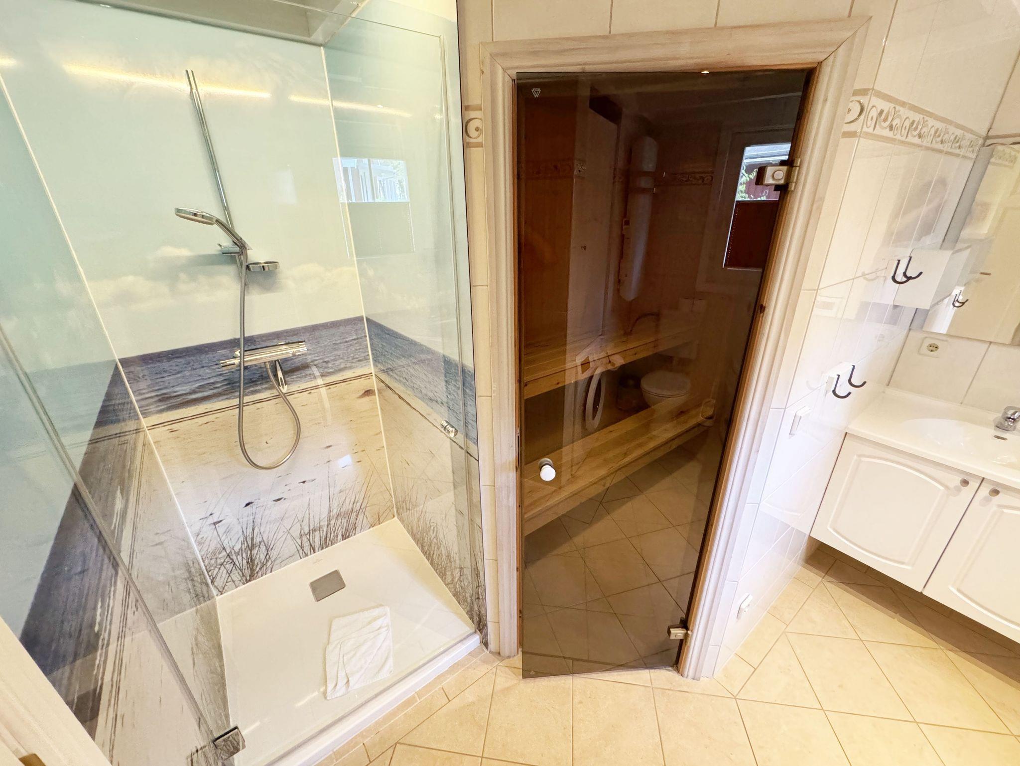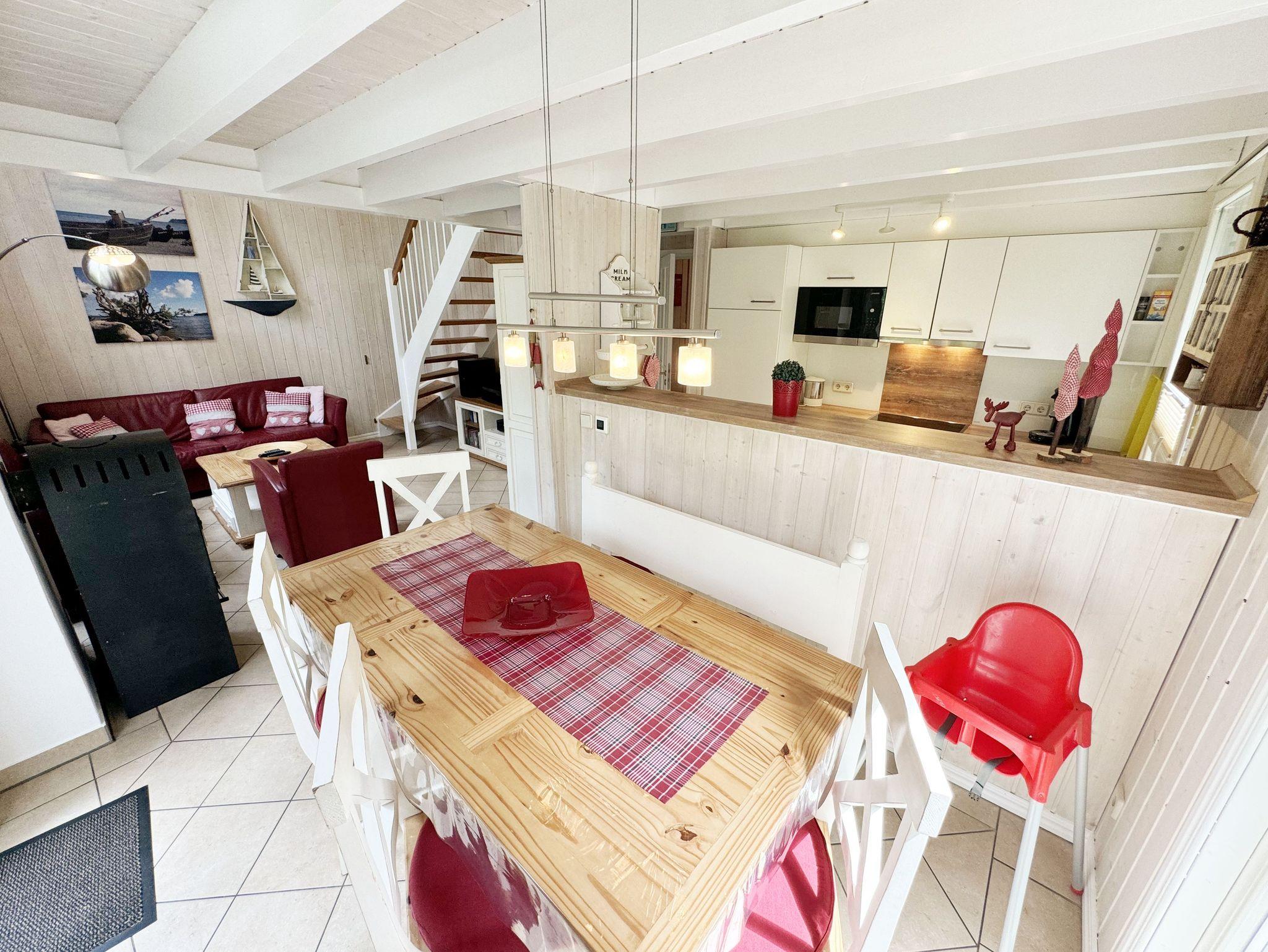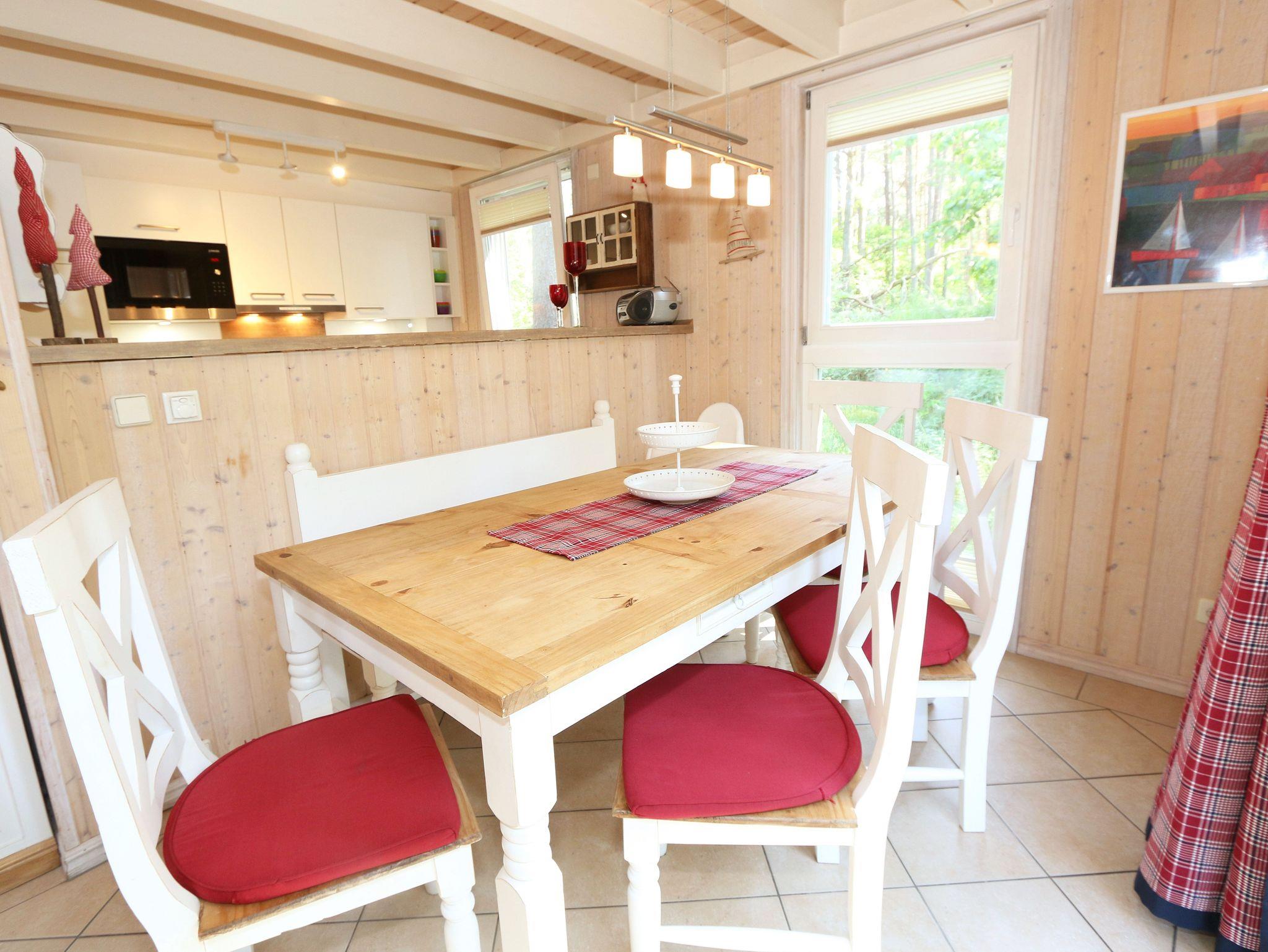 Das haustierfreie Nichtraucherferienhaus „Sanddorn“ bietet ausreichend Platz für 6 Erwachsene und 1 Kleinkind bis 3 Jahre im Kinderreisebett. Das 85 m² große Holzhaus in typisch skandinavischem Stil ist liebevoll ausgestattet und bietet eine hochwertige Einrichtung auf zwei Etagen. Es erwartet Sie im Erdgeschoss ein großer Wohn- und Essbereich mit Kaminofen und Smart-TV, Blu-Ray-Player sowie ein DAB-Radio-CD-Player. Auch auf einen Internetanschluss über WLAN brauchen Sie im Urlaub nicht verzichten. Dieser ist für Sie inklusive. Eine große Ledercouch mit Couchtisch und 2 gemütlichen Ledersesseln und einer Leselampe garantieren entspannende Abende. Der von der Küche durch einen Tresen abgetrennte Essbereich mit großem Esstisch bietet ausreichend Platz für 6 Personen. Die moderne Einbauküche ist ausgestattet mit allem, was man für das alltägliche Leben braucht, daher gehören ein Kühlschrank mit Gefrierfach, ein Backofen mit Ceranfeld und Dunstabzug, eine Mikrowelle, eine Spülmaschine, ein Wasserkocher, eine Kaffeemaschine, eine Senseo Pad-Maschine, ein Toaster, ein Eierkocher, ein Mixer, Teekannen sowie alle weiteren Utensilien zum Kochen und Essen zum Inventar. Ebenfalls Teil des Erdgeschosses ist ein Schlafzimmer mit einem Doppelbett (1,80 m x 2,00 m) mit hochwertigen Kaltschaummatratzen, einer Nachttischablage sowie einem Kleiderschrank. Insektenschutzgitter und Verdunklungsplissee sorgen hier für einen ruhigen und erholsamen Schlaf. Das großzügige Bad mit einer ebenerdigen Dusche, Whirlpool, Sauna, Waschmaschine, Handtuchtrockner, Fön und großem Waschtisch wird Sie begeistern. Sie erreichen es vom Flur aus mit Schuhregal und Garderobe. Im Wohnbereich sowie im Bad sorgt die Fußbodenheizung für angenehme Wärme. In der 1. Etage befindet sich eine helle Galerie mit großer Fensterfront und bequemer Ledercouch, kleinem Tisch, Stehlampe und fantastischem unverbautem Blick in den Kiefernwald. Ein Regal mit Büchern sowie eine Kiste mit Spielzeug stehen Ihnen hier ebenfalls zu Verfügung. Von der Galerie aus erreichen Sie 2 weitere Schlafzimmer sowie einem Gäste-WC mit kleinem Waschtisch. In beiden Schlafzimmern, gemütlich unter Dachschrägen, finden Sie jeweils 2 Betten (einmal als Doppelbett und 2 Einzelbetten) mit verstellbaren Lattenrosten und Kaltschaummatratzen (4 x 0,90 m x 2,00 m), 2 Nachttischablagen und einem Kleiderschrank. 1x Kinderreisebett (ohne Zusatzmatratze, ohne Bettinlett) für ein Kleinkind bis 3 Jahre ist zusätzlich hier untergebracht. Die Balkontüren beider Schlafzimmer mit Verdunklungsgardinen und Insektenschutzgitter führen auf einen kleinen bestuhlten Balkon (Nord/Ost). Hier haben Sie einen herrlich weiten Blick in den Strandpark und auf die Ostsee. Auf der großzügigen bestuhlten Holzterrasse (Süd/West) finden zusätzlich ein Strandkorb (Mai-September), Sonnenliegen und ein Sonnenschirm ihren Platz. Eine angenehme Wärme wird durch Infrarotheizkörper ausgestrahlt. Für Ihre Räder befindet sich am Haus ein Fahrradständer. Im Anbauschuppen können Sie diverse Strandutensilien unterbringen. Ein PKW-Stellplatz (Nr. 259) befindet sich direkt vor dem Haus. Ab einem Aufenthalt von 7 Nächten, ist ein Sack Kaminholz in der Zeit vom 01.Oktober bis 30. April für Sie inklusive. Die Erstausstattung eines Wäschepaketes (komplette Bettwäsche, 1 Duschhandtuch, 2 kleine Handtücher) können Sie bis 14 Tage vor Anreise gegen einen Aufpreis dazu buchen oder durch eigene ergänzen. Ab 2 gebuchten Paketen erhalten Sie einmalig 1 Geschirrhandtuch und 1 Duschvorleger hinzu.