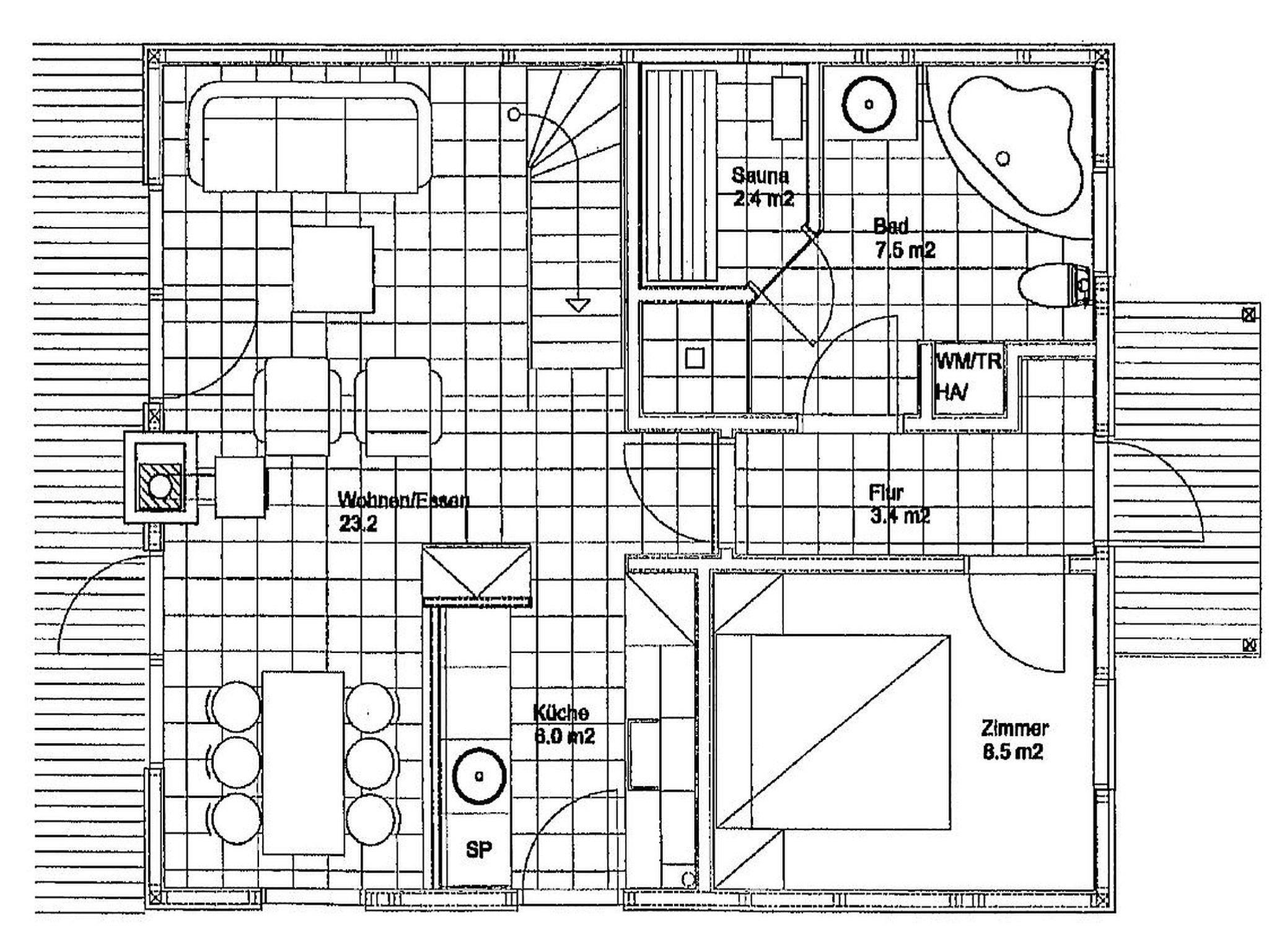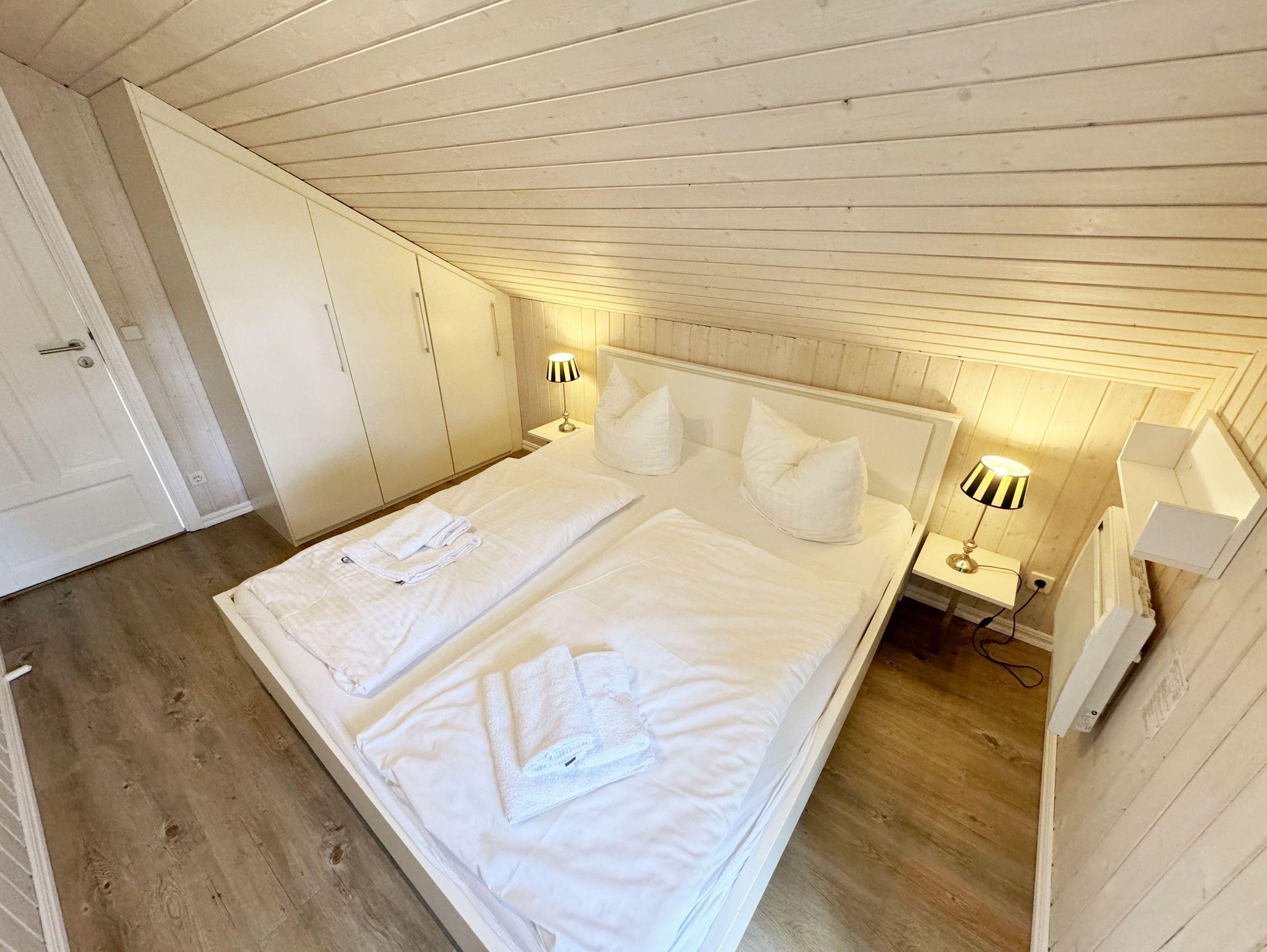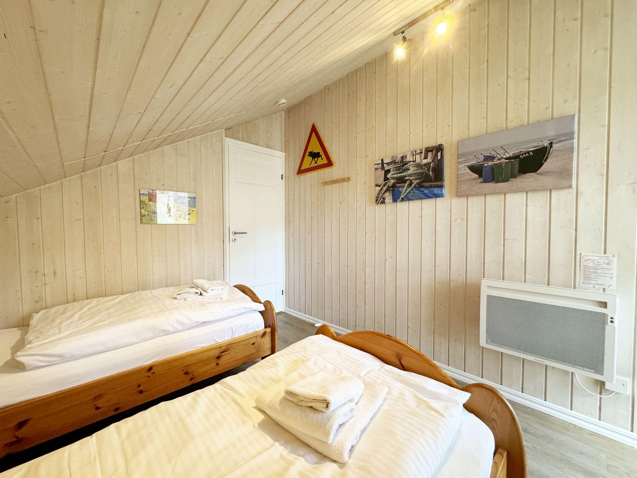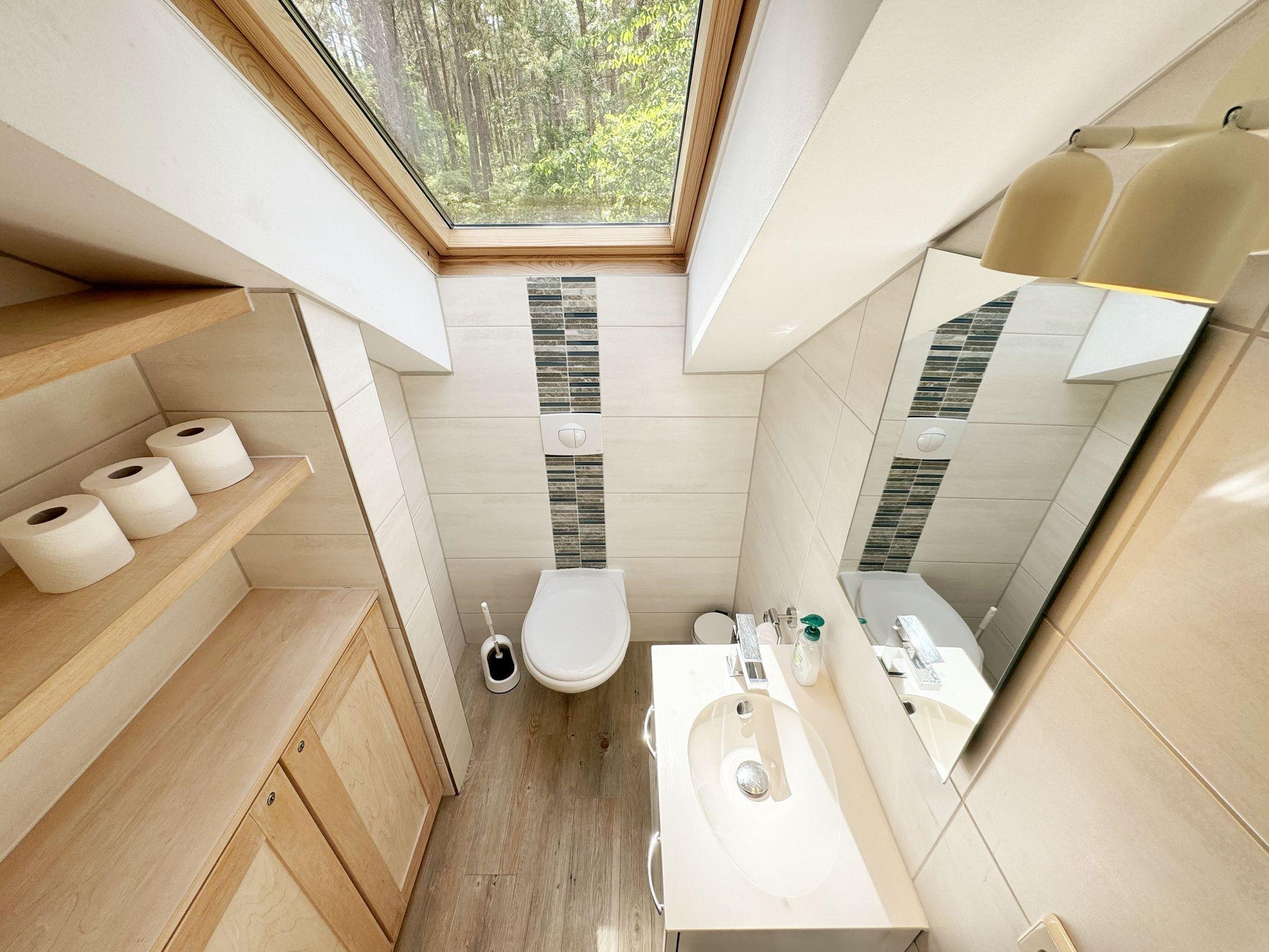 Das haustierfreie Nichtraucherferienhaus „Sanddorn“ bietet ausreichend Platz für 6 Erwachsene und 1 Kleinkind bis 3 Jahre im Kinderreisebett. Das 85 m² große Holzhaus in typisch skandinavischem Stil ist liebevoll ausgestattet und bietet eine hochwertige Einrichtung auf zwei Etagen. Es erwartet Sie im Erdgeschoss ein großer Wohn- und Essbereich mit Kaminofen und Smart-TV, Blu-Ray-Player sowie ein DAB-Radio-CD-Player. Auch auf einen Internetanschluss über WLAN brauchen Sie im Urlaub nicht verzichten. Dieser ist für Sie inklusive. Eine große Ledercouch mit Couchtisch und 2 gemütlichen Ledersesseln und einer Leselampe garantieren entspannende Abende. Der von der Küche durch einen Tresen abgetrennte Essbereich mit großem Esstisch bietet ausreichend Platz für 6 Personen. Die moderne Einbauküche ist ausgestattet mit allem, was man für das alltägliche Leben braucht, daher gehören ein Kühlschrank mit Gefrierfach, ein Backofen mit Ceranfeld und Dunstabzug, eine Mikrowelle, eine Spülmaschine, ein Wasserkocher, eine Kaffeemaschine, eine Senseo Pad-Maschine, ein Toaster, ein Eierkocher, ein Mixer, Teekannen sowie alle weiteren Utensilien zum Kochen und Essen zum Inventar. Ebenfalls Teil des Erdgeschosses ist ein Schlafzimmer mit einem Doppelbett (1,80 m x 2,00 m) mit hochwertigen Kaltschaummatratzen, einer Nachttischablage sowie einem Kleiderschrank. Insektenschutzgitter und Verdunklungsplissee sorgen hier für einen ruhigen und erholsamen Schlaf. Das großzügige Bad mit einer ebenerdigen Dusche, Whirlpool, Sauna, Waschmaschine, Handtuchtrockner, Fön und großem Waschtisch wird Sie begeistern. Sie erreichen es vom Flur aus mit Schuhregal und Garderobe. Im Wohnbereich sowie im Bad sorgt die Fußbodenheizung für angenehme Wärme. In der 1. Etage befindet sich eine helle Galerie mit großer Fensterfront und bequemer Ledercouch, kleinem Tisch, Stehlampe und fantastischem unverbautem Blick in den Kiefernwald. Ein Regal mit Büchern sowie eine Kiste mit Spielzeug stehen Ihnen hier ebenfalls zu Verfügung. Von der Galerie aus erreichen Sie 2 weitere Schlafzimmer sowie einem Gäste-WC mit kleinem Waschtisch. In beiden Schlafzimmern, gemütlich unter Dachschrägen, finden Sie jeweils 2 Betten (einmal als Doppelbett und 2 Einzelbetten) mit verstellbaren Lattenrosten und Kaltschaummatratzen (4 x 0,90 m x 2,00 m), 2 Nachttischablagen und einem Kleiderschrank. 1x Kinderreisebett (ohne Zusatzmatratze, ohne Bettinlett) für ein Kleinkind bis 3 Jahre ist zusätzlich hier untergebracht. Die Balkontüren beider Schlafzimmer mit Verdunklungsgardinen und Insektenschutzgitter führen auf einen kleinen bestuhlten Balkon (Nord/Ost). Hier haben Sie einen herrlich weiten Blick in den Strandpark und auf die Ostsee. Auf der großzügigen bestuhlten Holzterrasse (Süd/West) finden zusätzlich ein Strandkorb (Mai-September), Sonnenliegen und ein Sonnenschirm ihren Platz. Eine angenehme Wärme wird durch Infrarotheizkörper ausgestrahlt. Für Ihre Räder befindet sich am Haus ein Fahrradständer. Im Anbauschuppen können Sie diverse Strandutensilien unterbringen. Ein PKW-Stellplatz (Nr. 259) befindet sich direkt vor dem Haus. Ab einem Aufenthalt von 7 Nächten, ist ein Sack Kaminholz in der Zeit vom 01.Oktober bis 30. April für Sie inklusive. Die Erstausstattung eines Wäschepaketes (komplette Bettwäsche, 1 Duschhandtuch, 2 kleine Handtücher) können Sie bis 14 Tage vor Anreise gegen einen Aufpreis dazu buchen oder durch eigene ergänzen. Ab 2 gebuchten Paketen erhalten Sie einmalig 1 Geschirrhandtuch und 1 Duschvorleger hinzu.