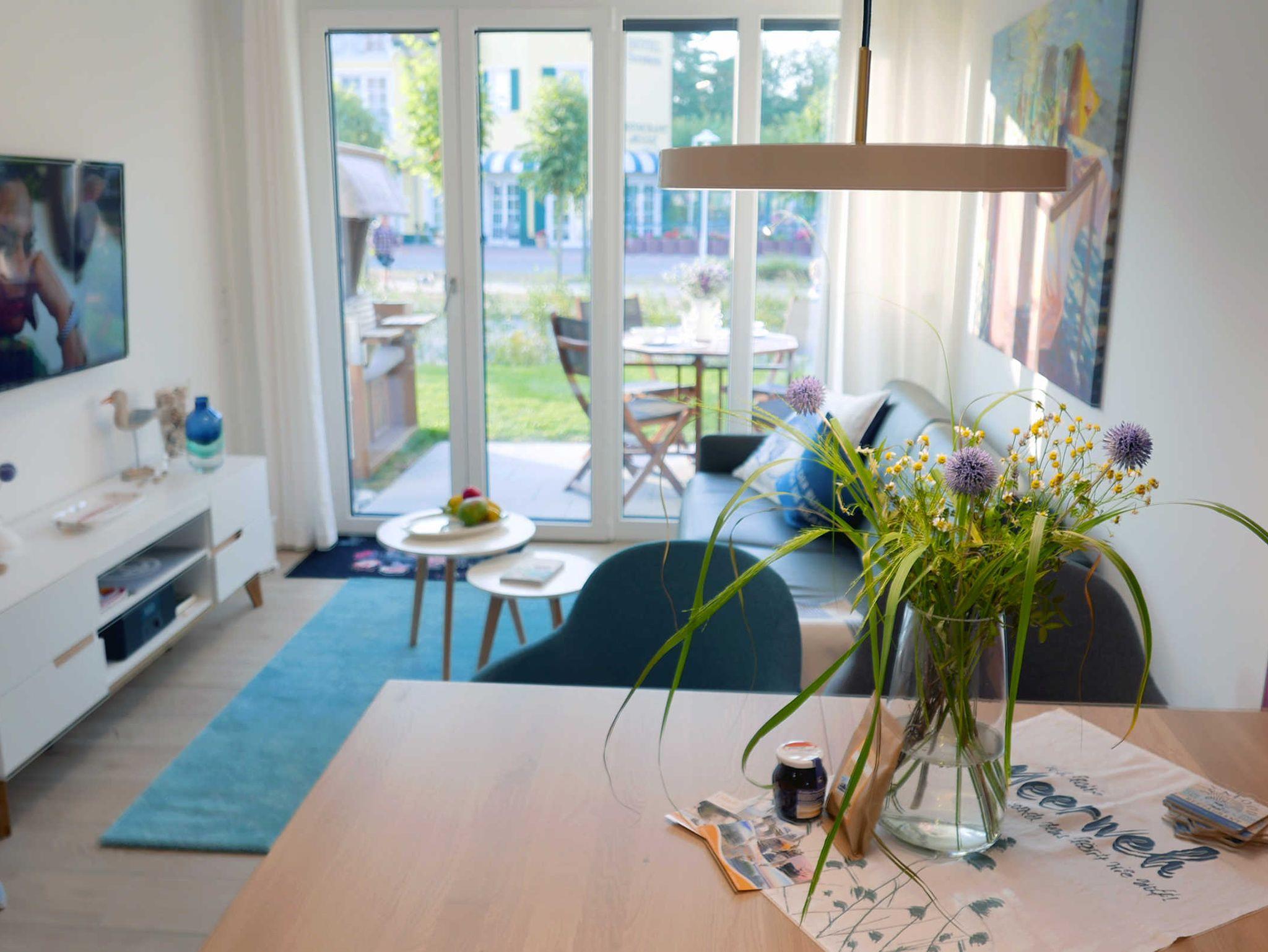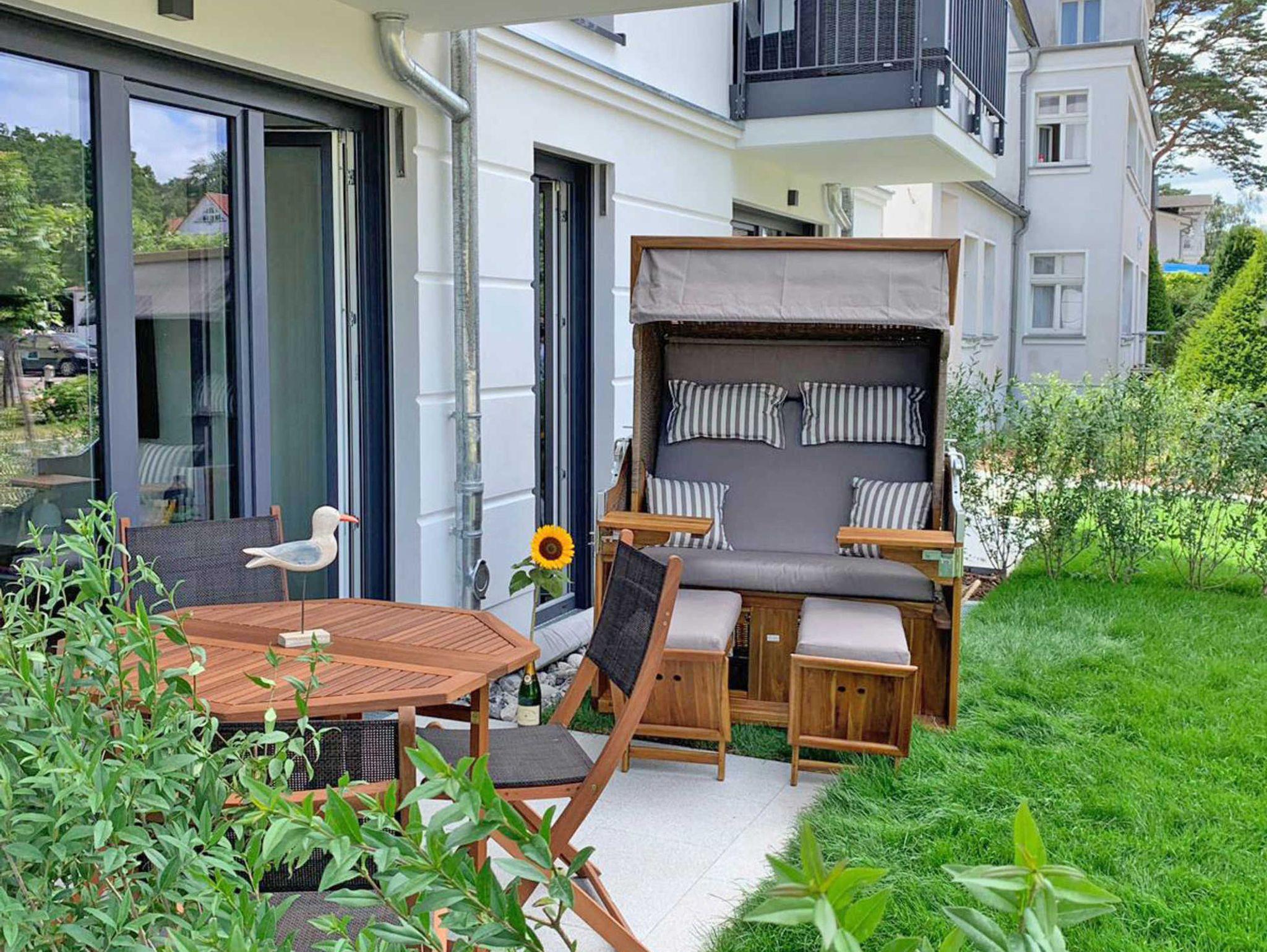In dieser wunderbar modernen 2-Zimmer-Ferienwohnung mit einer Terrasse und einem kleinen Garten stellt sich direkt das Urlaubsgefühl ein ? spätestens, wenn man das Meeresrauschen in dem wohnungseigenen Strandkorb oder den seitlich eingeschränkten Meerblick genießt.