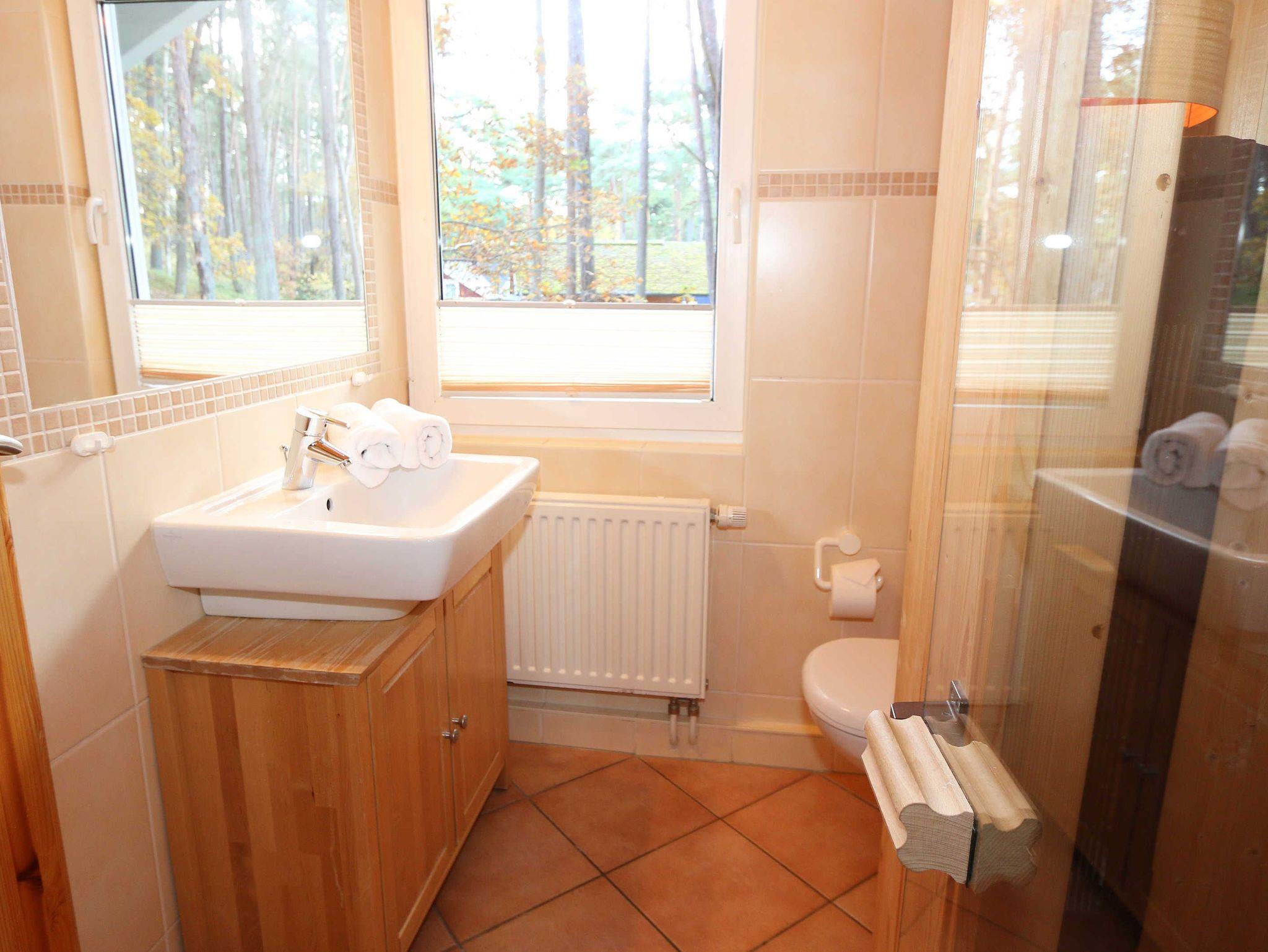 Herzlich Willkommen in unserem Strandhaus im schönen Ostseebad Baabe auf Rügen! Unser 70 m² großes alleinstehendes Standhaus im Schwedenstil (Nichtraucher, 2 bis 6 Erwachsene + 1 Kleinkind bis 3 Jahre im Kinderreisebett) liegt nah am Strand, direkt im Dünenwald von Baabe. Das Holzhaus ist gemütlich mit viel hellem Naturholz eingerichtet und gleichzeitig modern, komfortabel und voll ausgestattet. Dazu zählen wir sowohl die moderne Komfortküche mit Ceran-Herd, Backofen, Mikrowelle, Geschirrspüler, Waschmaschine (inklusive), Kühlschrank mit Eisfach, Getränkekühlschrank, Kaffeemaschine, Wasserkocher, Toaster, Reinigungsutensilien und mehr als auch den Wohnkomfort einer Fußbodenheizung, der LCD-Fernseher in HD-Qualität, Satelliten-Anschluss für hohe Programmvielfalt und ein DVD-Player mit Radio. Ein gemütlicher großer Wohnbereich und Kamin (Kaminholz inklusive) mit Sichtfenster rundet unsere Einrichtung ab. Und damit Sie Ihren Urlaub bei uns ganz entspannt genießen können, sind alle Kosten für Strom, Wasser und Heizung sowie das WLAN bereits im Preis inklusive! Das Haus verfügt über insgesamt drei Schlafzimmer im Obergeschoss. Zwei Schlafzimmer sind mit Doppelbett (2 x Boxspringbetten je 0,80 m x 2,00 m zusammengestellt) und Kleiderschrank ausgestattet und bieten ausreichend Platz für 1x zusätzliches Kinderreisebett (inklusive Matratze). Das dritte Schlafzimmer verfügt über zwei Boxspringbetten (je 0,80 m x 2,00 m) ? die man auch zusammenstellen kann und Kleiderschrank Im Erd- sowie im Obergeschoss befinden sich je ein Tageslicht-Bad mit großem Spiegel, WC, Dusche und Haartrockner. Zusätzlich im Bad (OG) befindet sich noch ein Thermium (Infrarotsauna). Am Wohn-/ Essbereich schließt sich die überdachte Terrasse (Süd/Ost) mit Tisch, Stühlen und Gartengrill an. Von dort blicken Sie direkt zum Dünenwald, wo Sie die Vielfalt der Natur noch mehr genießen können. Ein eigener PKW-Stellplatz Nr. 28l gehört zum Standhaus. Haben Sie 1 Haustier, das Sie mitbringen möchten? Gerne ist dies gegen eine Gebühr möglich. Sind Sie vor Ort, so haben wir für Sie weitere zusätzliche Angebote (gegen Gebühr) direkt im Dünenpark. Sie können z.B. in der Sauna in unserem Wellnessbereich im Souterrain unseres Backshops relaxen. In unserem Backshop selbst erhalten Sie In der Saison täglich frisch: Brötchen, Lebensmittel, Tageszeitungen, Frühstück, Kaffee & Kuchen und mehr (Schließzeiten immer Anfang Januar - 1 Woche vor Ostern, Weihnachten und Winterferien nach Bedarf). Die Erstausstattung eines Wäschepaketes (komplette Bettwäsche, 1 Duschhandtuch, 2 kleine Handtücher) können Sie bis 14 Tage vor Anreise gegen einen Aufpreis dazu buchen oder durch eigene ergänzen. Ab 2 gebuchten Paketen erhalten Sie einmalig 1 Geschirrhandtuch und 1 Duschvorleger hinzu. Wir freuen uns auf Ihren Besuch!