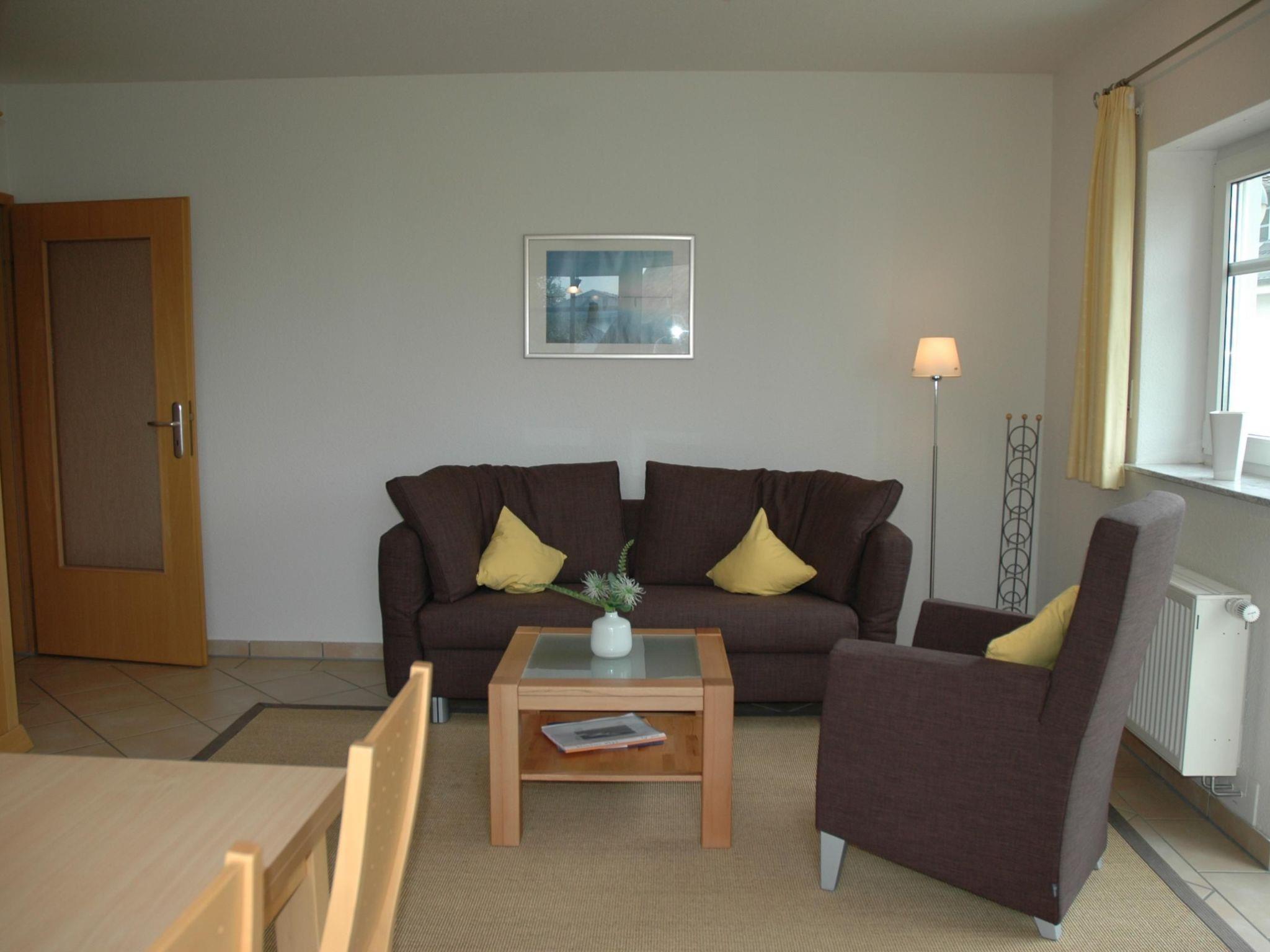 The picturesque, white villas of the Dünenhaus Südstrand (South Beach Dune House) with its idyllic balconies with a sea view and charming ornamental features in a modern seaside architecture style provide an inviting home for the most enjoyable days of the year. The inviting apartment, classified as four-star by the DTV, has a stylish and modern interior and provides a spacious 70m² with three rooms, for up to four people. The separate kitchen is fully-equipped with a four-ring ceramic hob, a dishwasher, a fridge with a freezer compartment, an oven and a microwave, along with a coffee machine, kettle and toaster, ample crockery and cutlery. There is a generous living room with a comfortable sofa corner with cable TV and a DVD player, as well as a little stereo system. There are two separate bedrooms with a double bed, plus another smaller room. The apartment has a generous shower room and the WC is separate. It is an exclusive holiday home in a picturesque location, for a fabulous holiday.