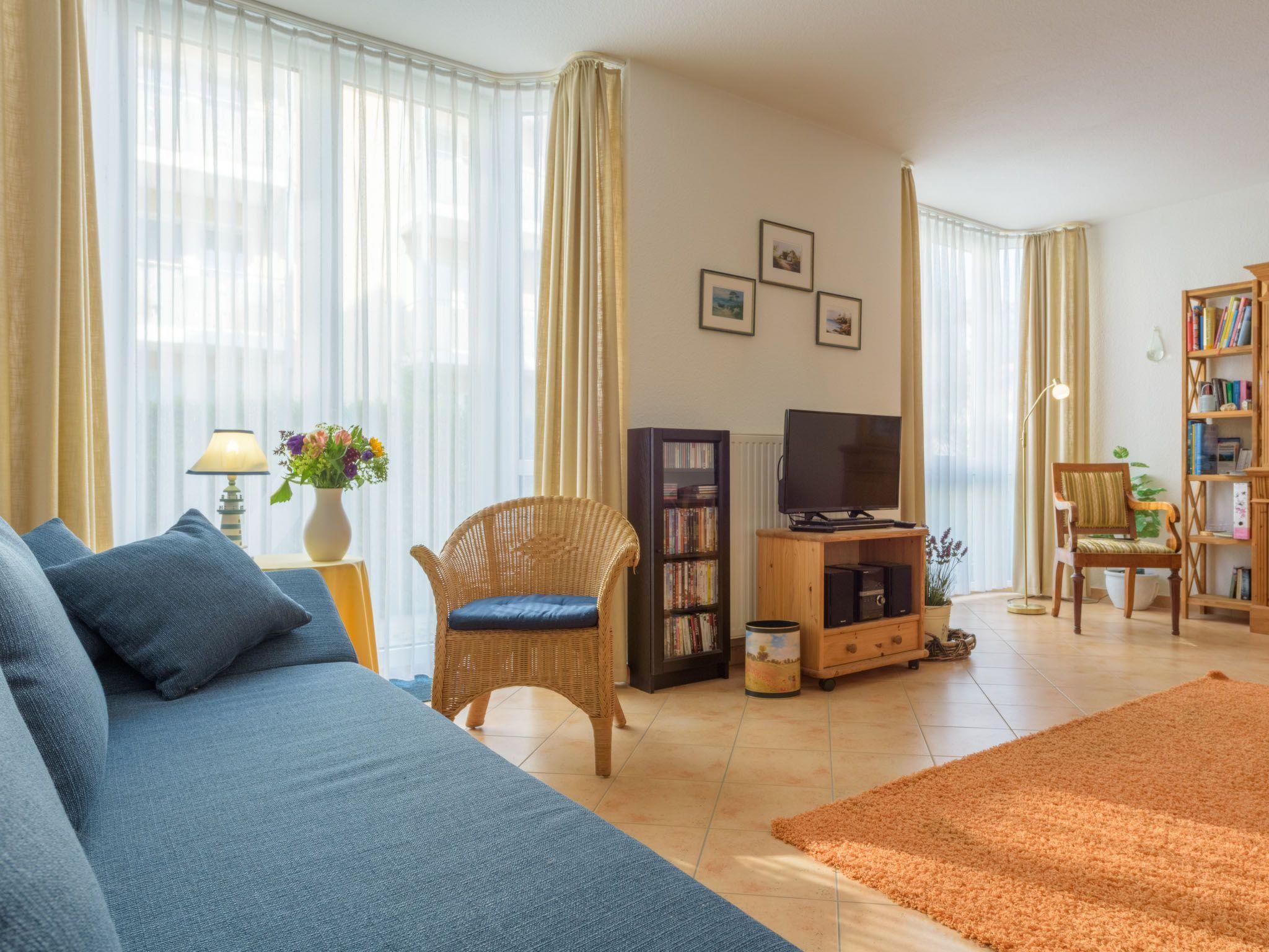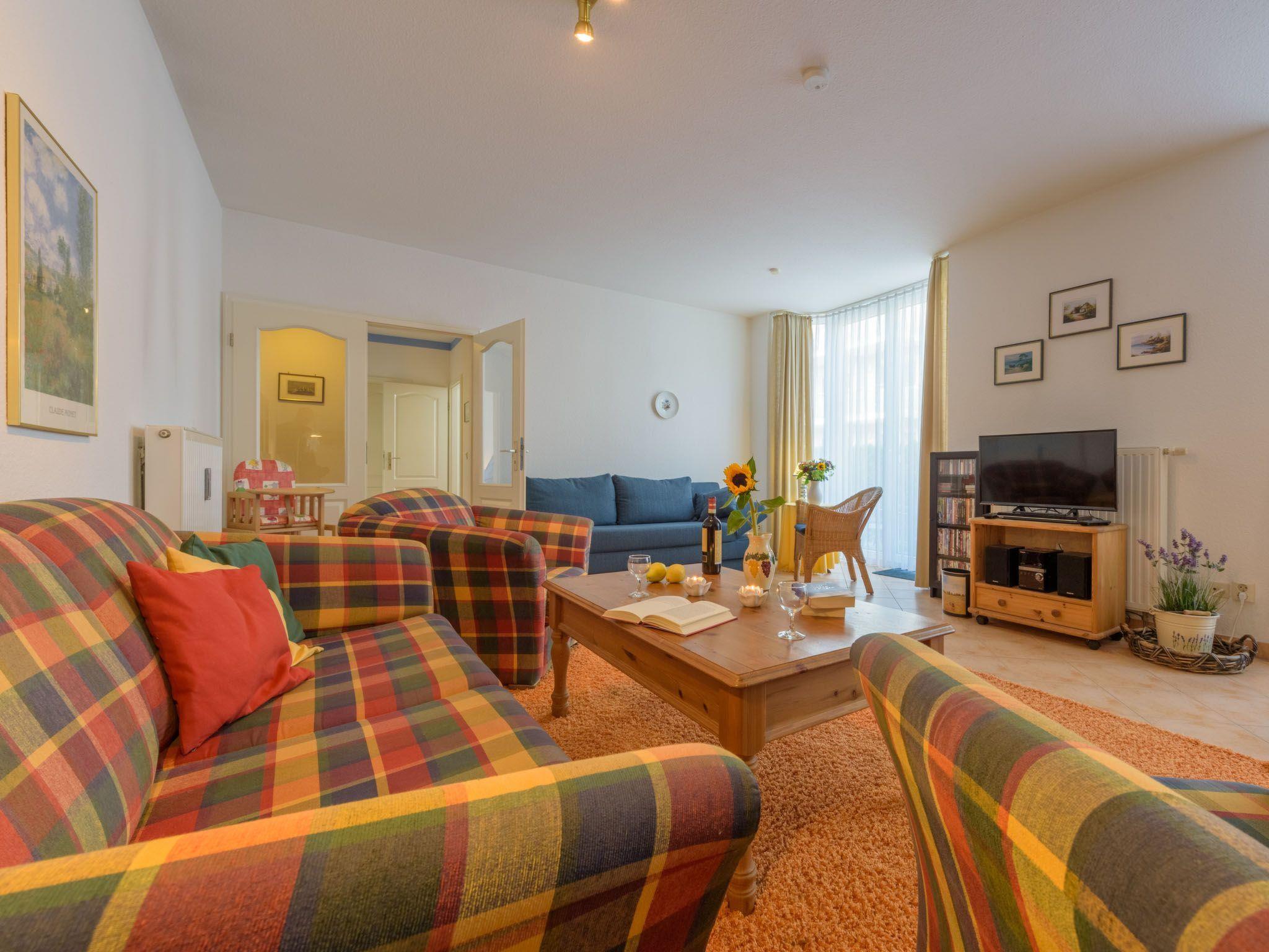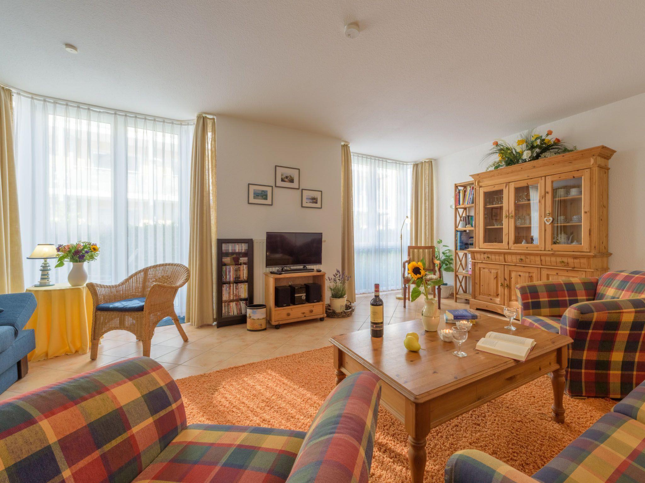 for 2 + 2 persons Living room with sofa bed Bedroom with double bed 1 terrace with seating 1 car park Internet W-LAN Non-smoking Pets not allowed Even in bad weather you can pass the time in the flat with an extensive CD, DVD and game collection.