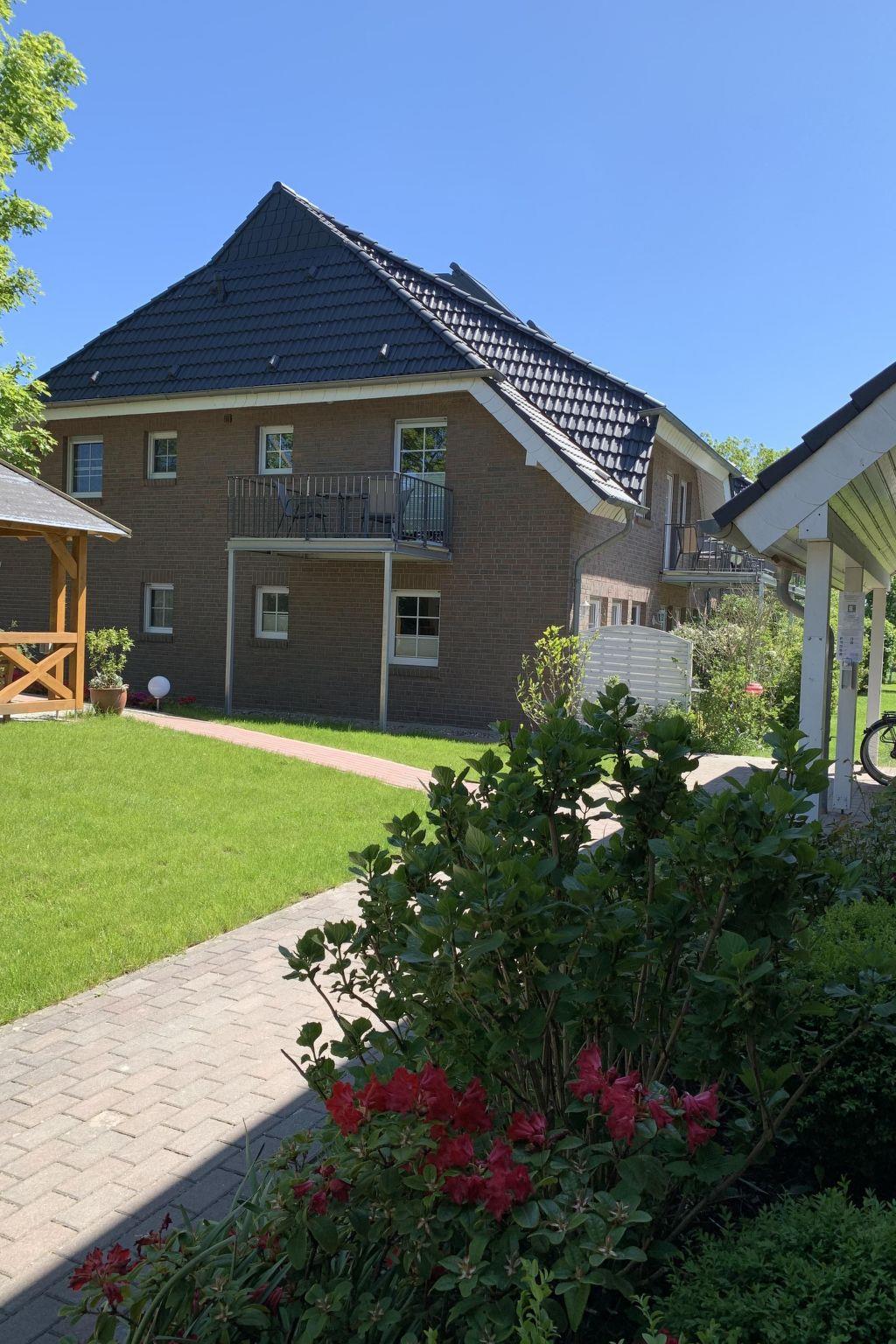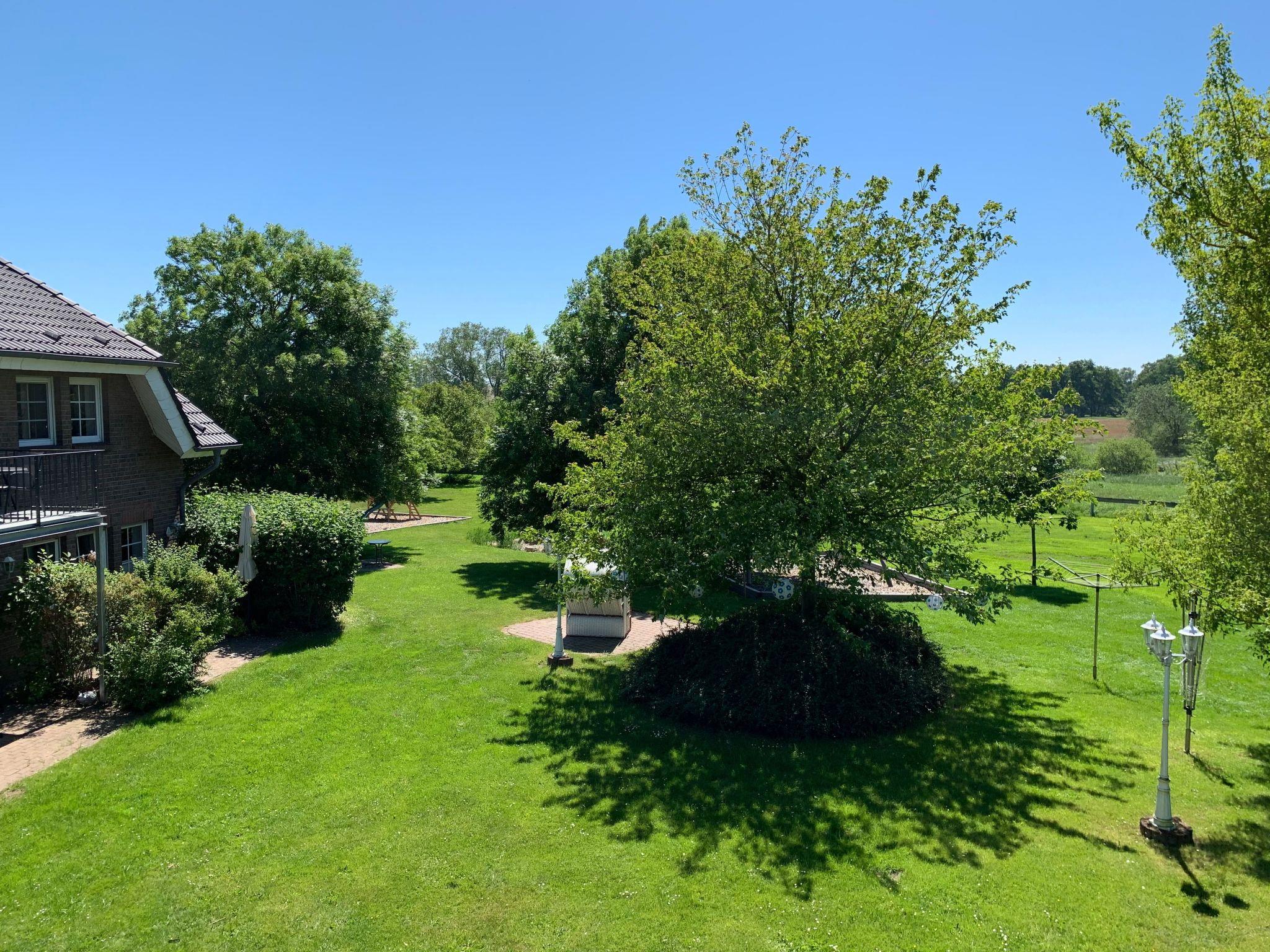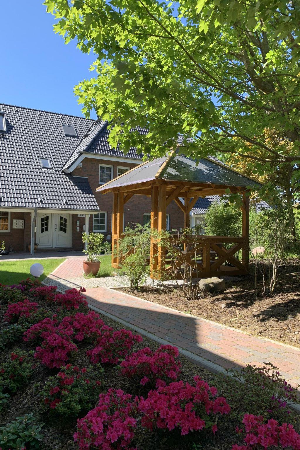 The flat has a king-size box-spring bed, a comfortable seating area, an integrated fitted kitchen, a dining area and a shower room. The sleeping area is separated from the living area by a stylish room divider. The flat has direct access to the sun terrace in the garden with a view of the salt marshes of Lake Neuensien.