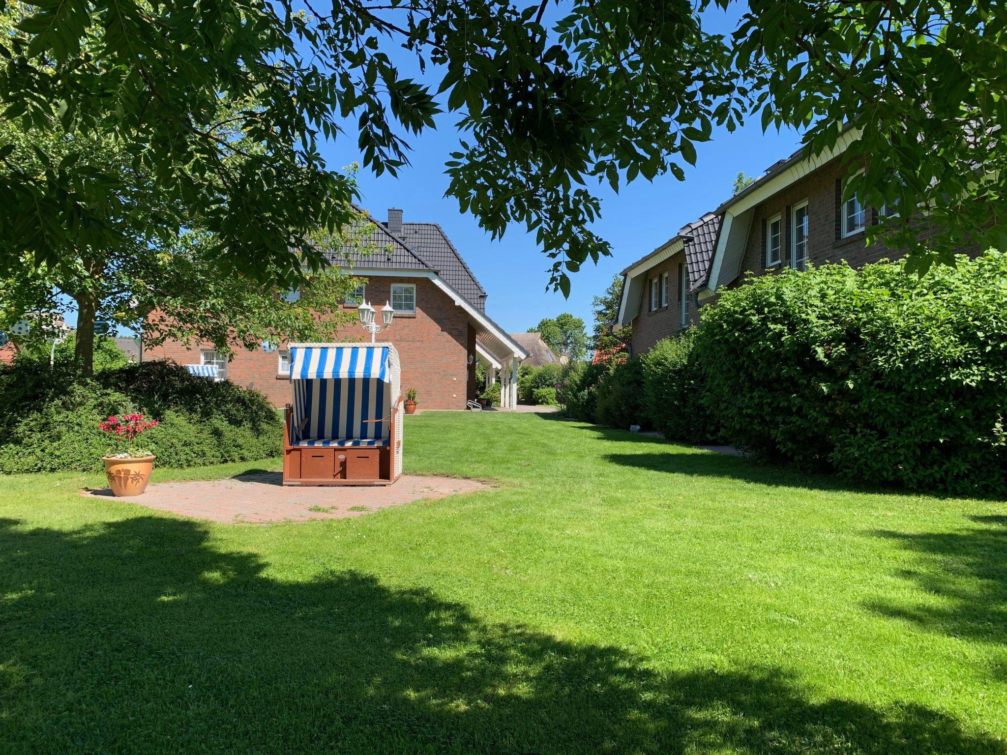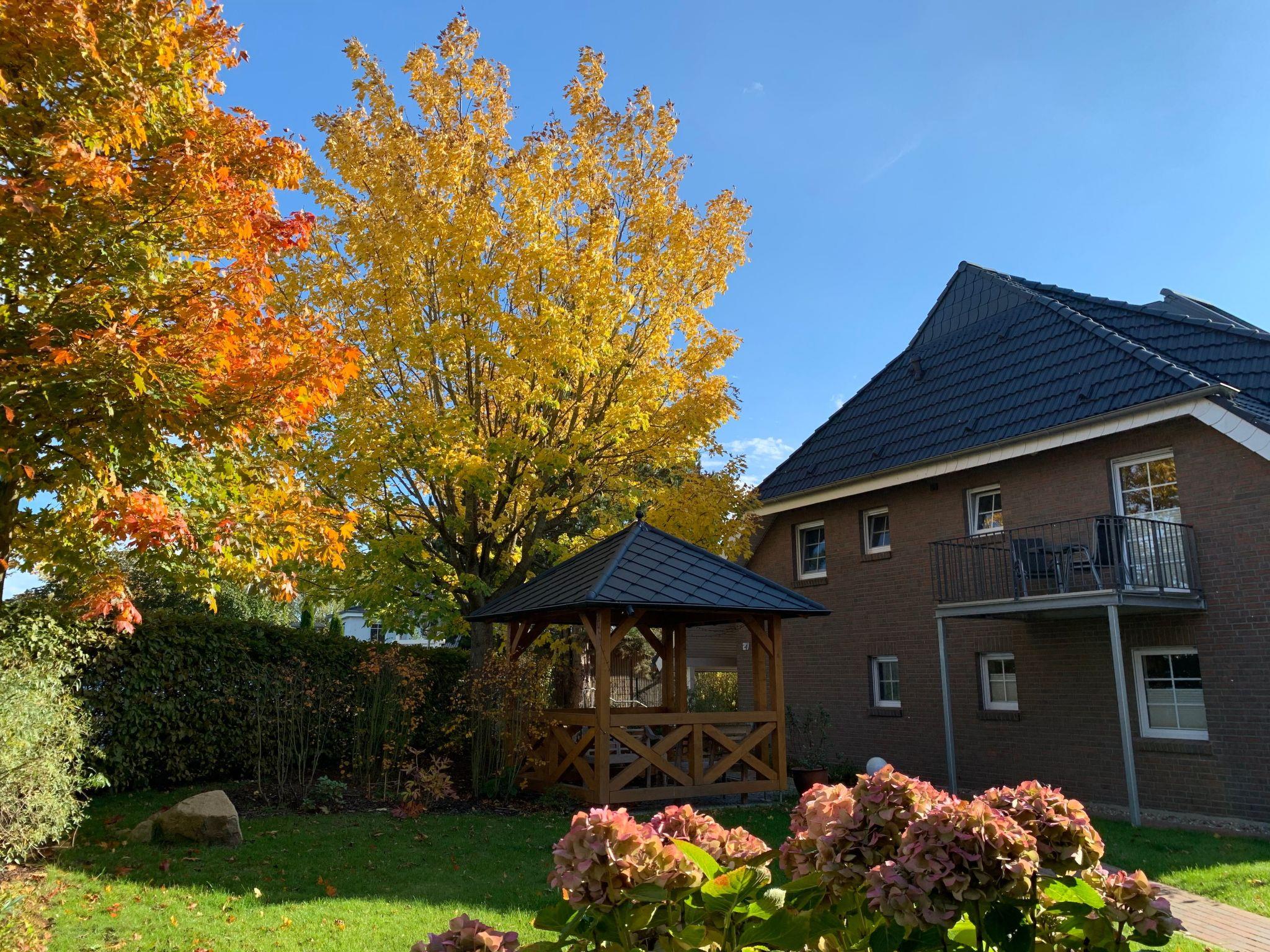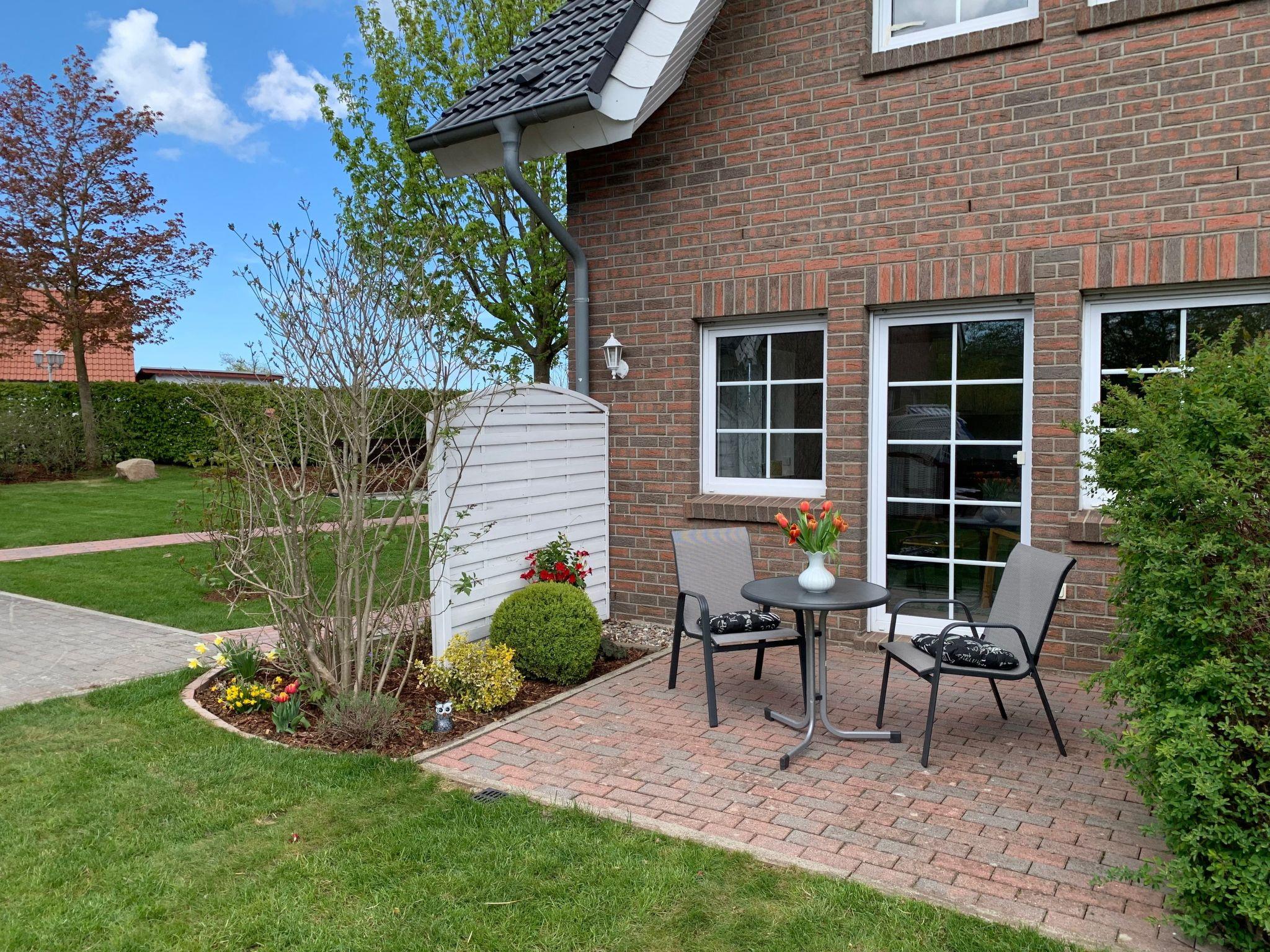 The flat has a king-size box-spring bed, a comfortable seating area, an integrated fitted kitchen, a dining area and a shower room. The sleeping area is separated from the living area by a stylish room divider. The flat has direct access to the sun terrace in the garden with a view of the salt marshes of Lake Neuensien.