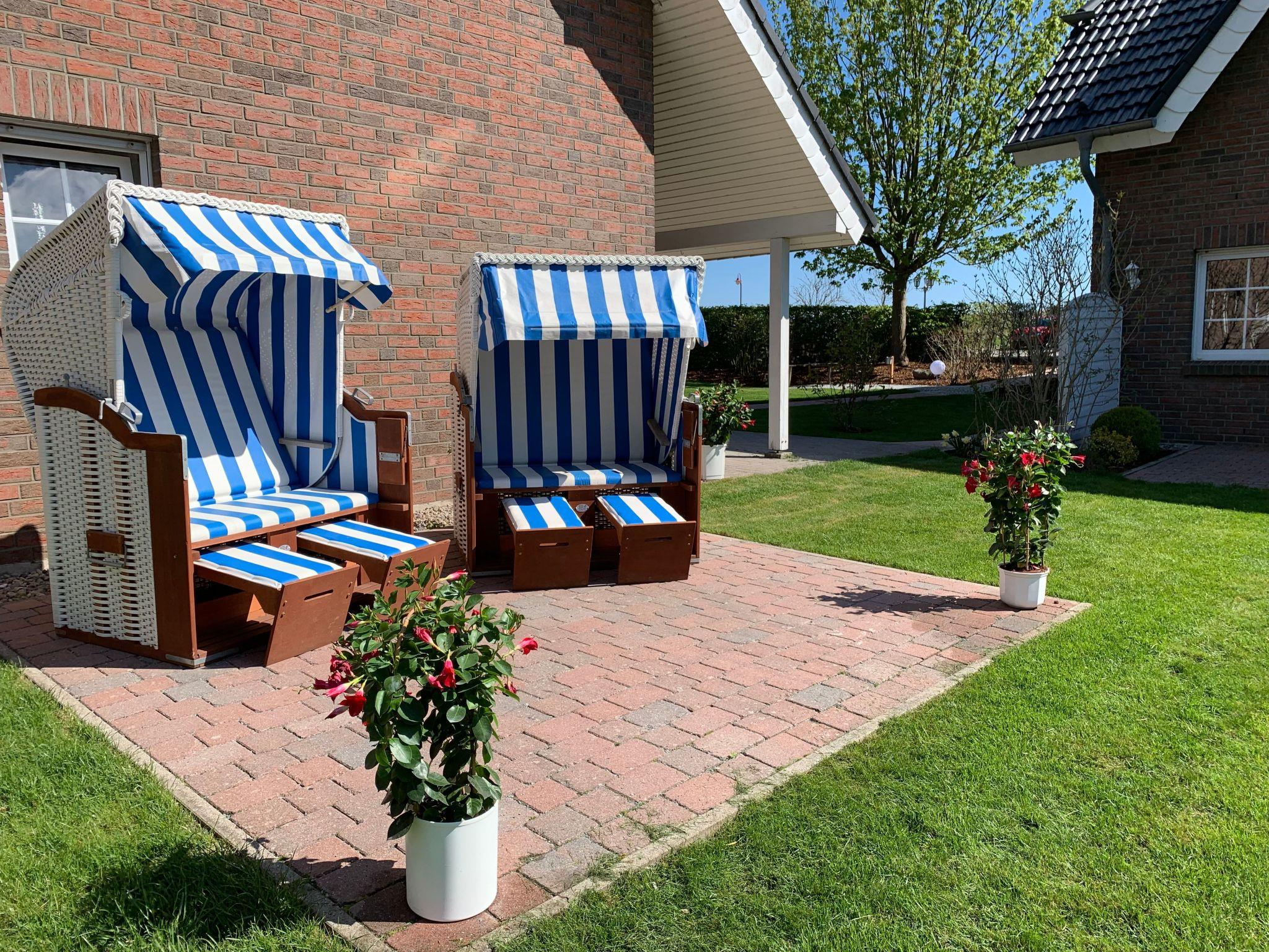 The garden includes terraces with seating areas, beach chairs, parasols and deckchairs. You can enjoy a wonderful view of nature from the garden. The 2-room holiday flats also have direct access to the garden and their own terrace with garden furniture. There is also a barbecue area in the garden.