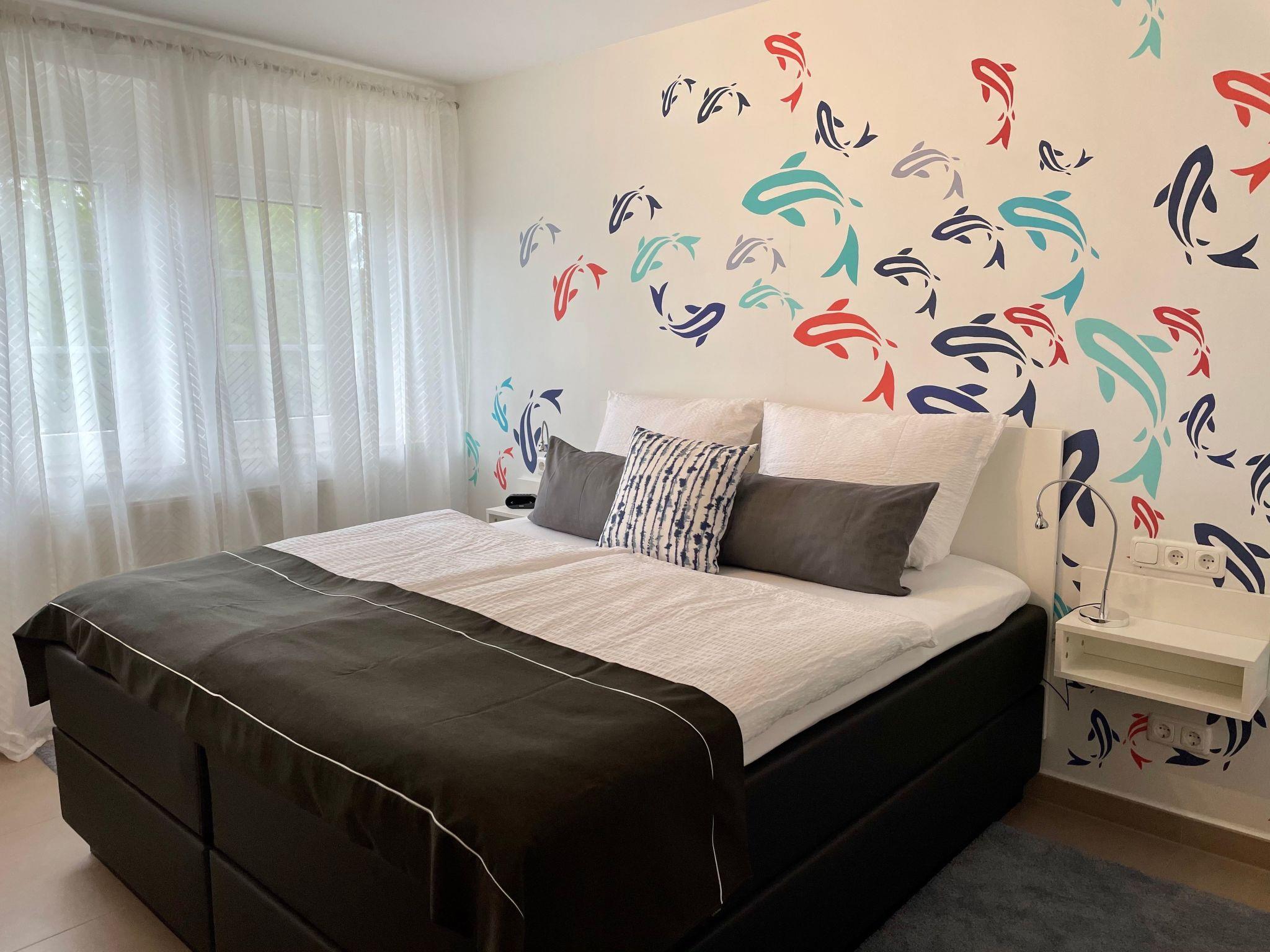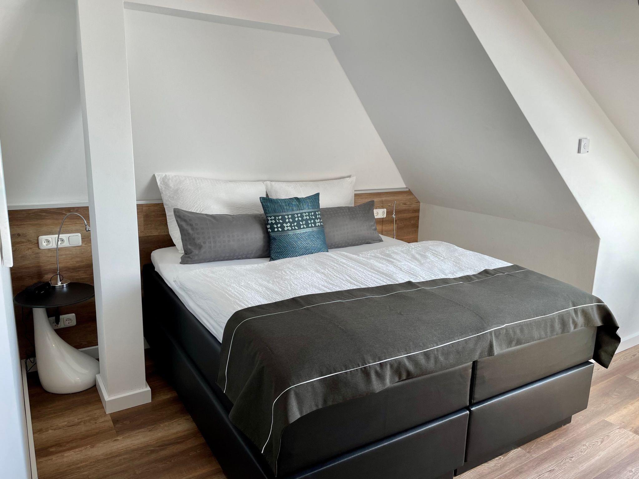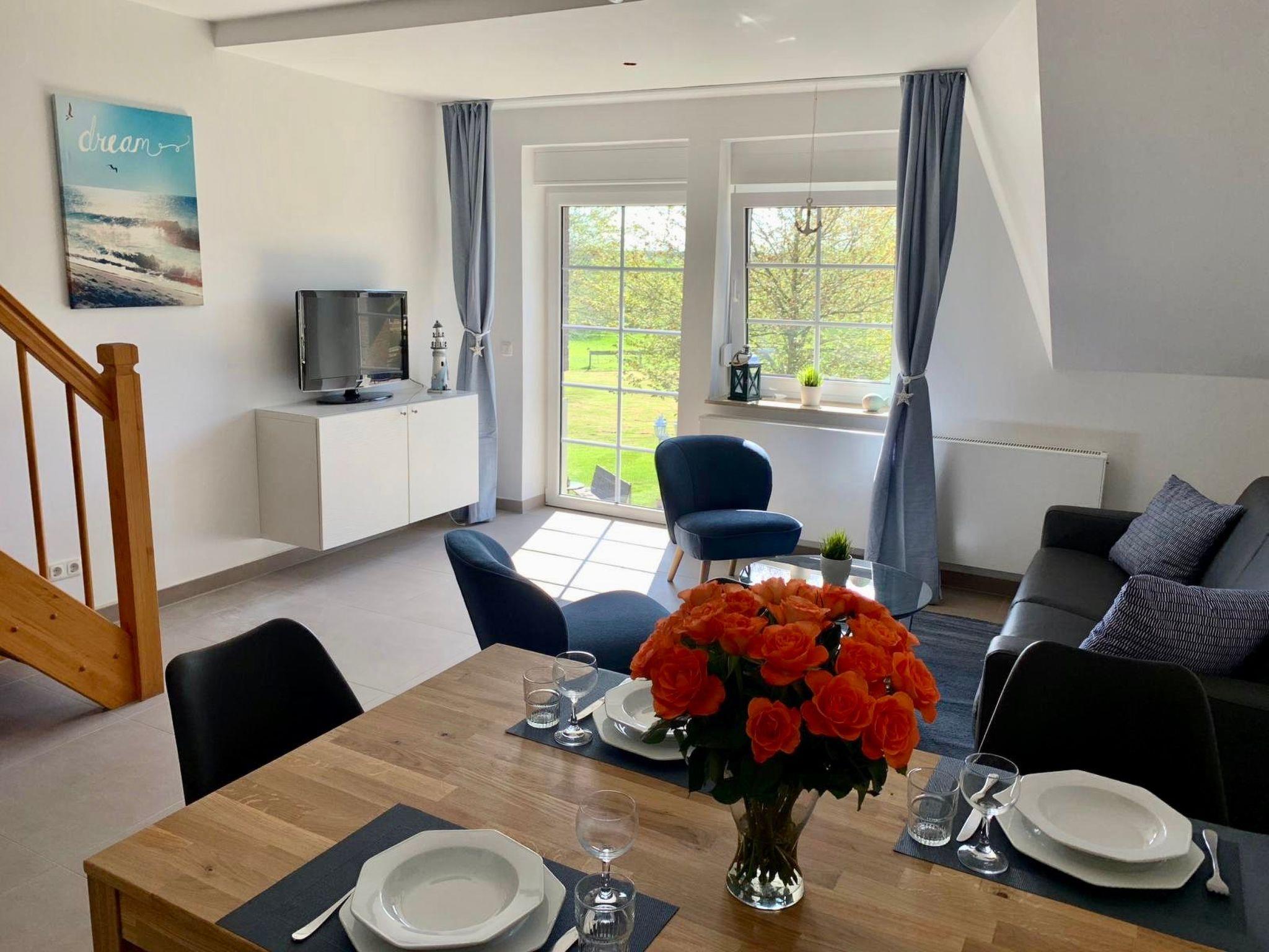 The 3-room maisonette has two bedrooms with king-size box-spring beds (1.80 m x 2.00 m), a living room with sofa set (sofa bed 1.40 m x 2.00 m), an integrated fitted kitchen, a dining area and two shower rooms. The fully equipped kitchen with dining area is integrated into the large living room. From here you have access to the balcony with a wonderful view of the natural surroundings. The holiday flat is equipped with free WiFi and smart TVs in the living room and bedrooms. Our cosy holiday flats are furnished with great attention to detail and individually designed. The furnishings are the same in all 3-room flats. All flats were renovated in 2019/20 and are modernly furnished. Smoking is generally not permitted in our holiday flats. As the apartment complex is located in the middle of nature, it is the ideal place to relax and unwind.