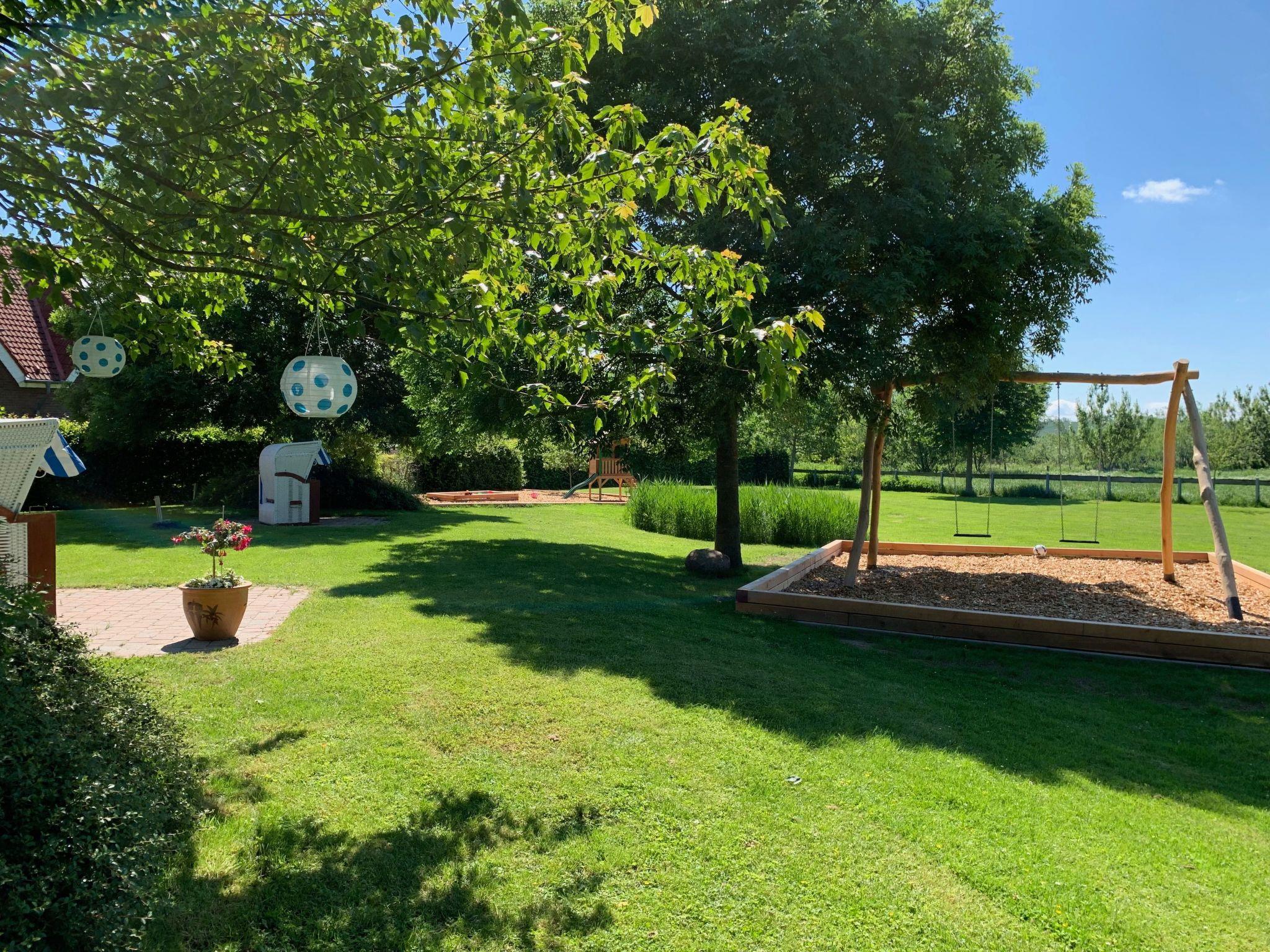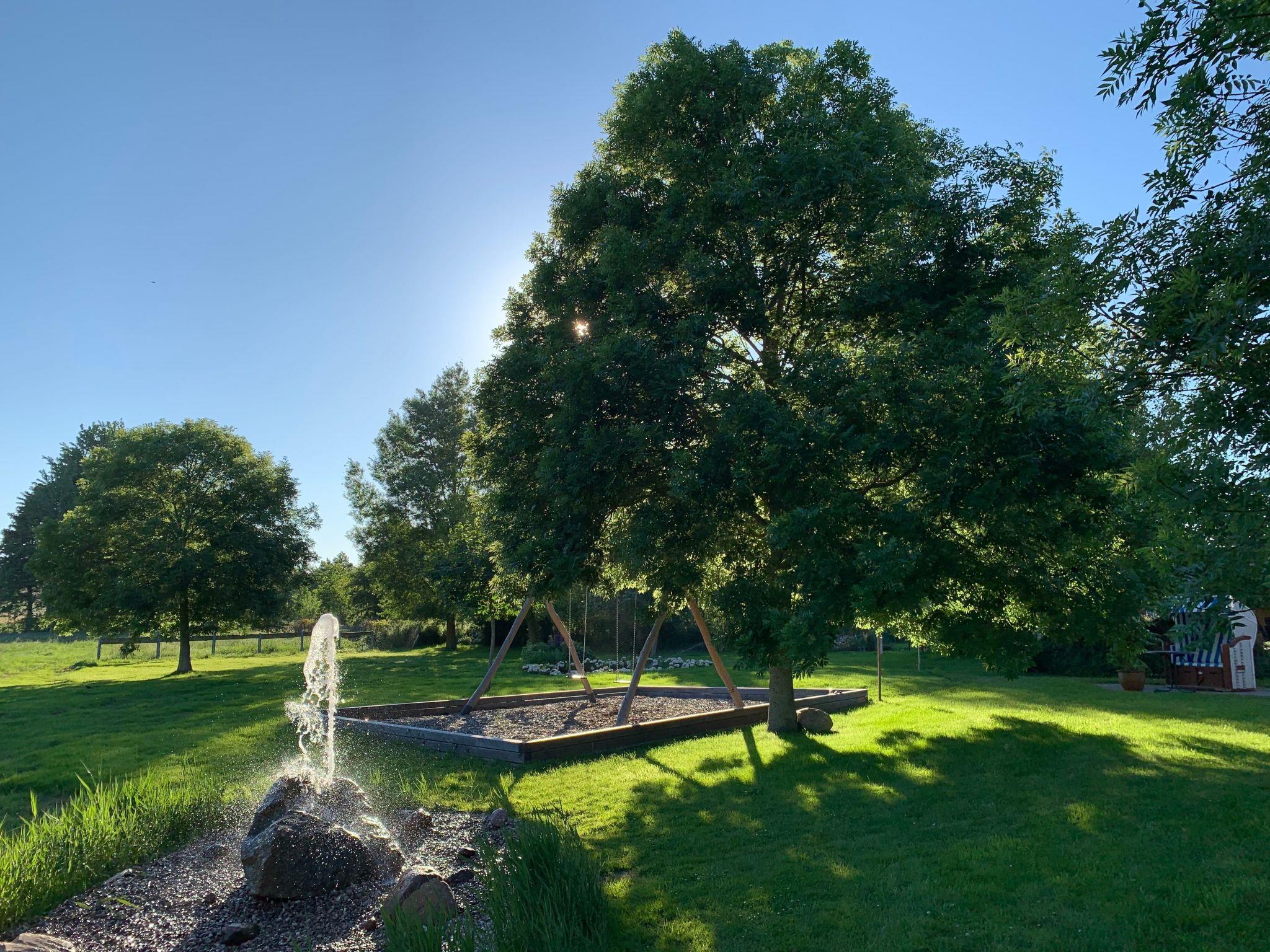 The large garden offers plenty of space to relax, unwind and play. The garden includes terraces with seating areas, beach chairs, parasols and deckchairs. You can enjoy a wonderful view of the natural surroundings from the garden. There is also a barbecue area in the garden. The children's playground for our younger guests is equipped with a swing, a playhouse, a slide and a sandpit. There are also free outdoor games such as badminton, volleyball and football. Car parking spaces are located directly in front of the house and are free of charge for our guests. There is a smoking pavilion in the front garden for all smokers.