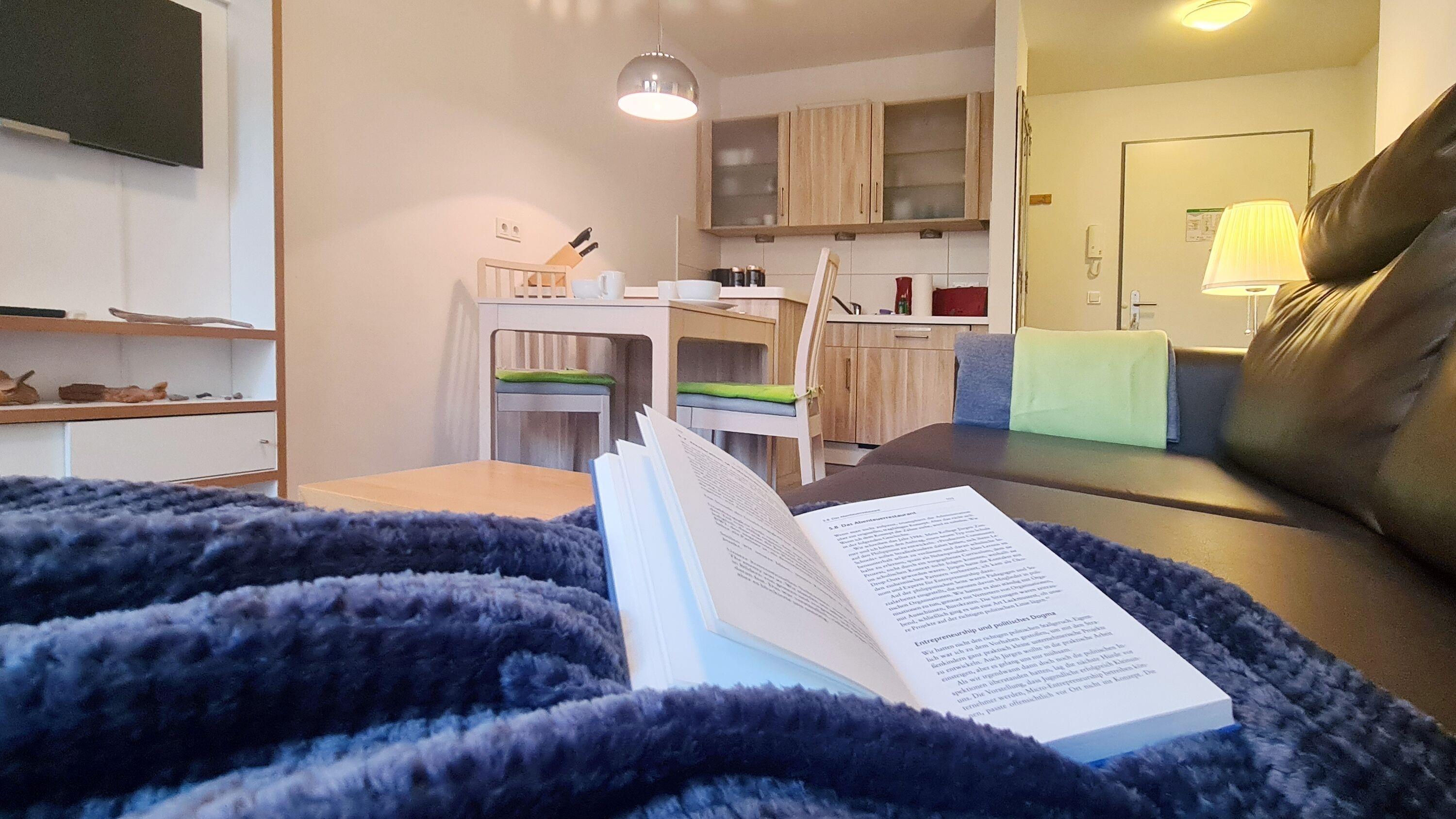 Die Ausstattung der Ferienwohnung umfasst unter anderem eine Fahrradunterstellmöglichkeit sowie einen Parkplatz für Ihr Auto. Außerdem steht Ihnen WLAN/Internet zur Verfügung, damit Sie auch im Urlaub immer online bleiben können. Für die Zubereitung von Kaffee steht eine klassische Filterkaffeemaschine bereit. Zur Entspannung lädt die zur Wohnung gehörende Sauna ein. Auch ein Geschirrspüler ist vorhanden, um Ihnen den Aufenthalt so angenehm wie möglich zu gestalten. Die Wohnung ist komplett rauchfrei und ein Hund darf gegen Aufpreis gerne mitgebracht werden. Genießen Sie die frische Luft auf dem Balkon und nutzen Sie auch das Schwimmbecken im Haus, um an heißen Tagen eine Abkühlung zu finden. Für zusätzliche Entspannung steht Ihnen auch eine Gemeinschaftssauna zur Verfügung.
