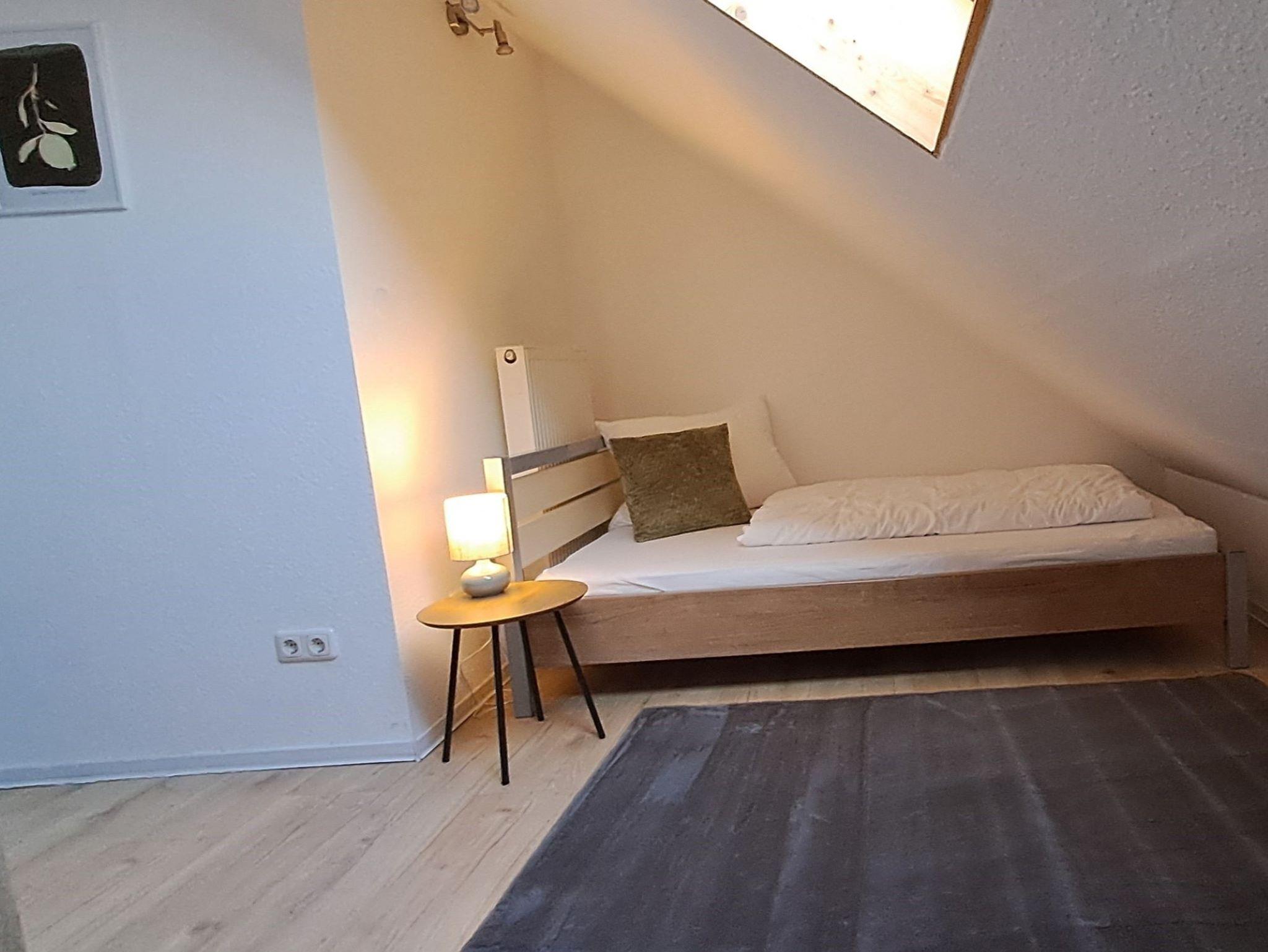 Unsere Ferienwohnung mit ca. 65 qm ist ausgestattet mit 1 Schlafzimmer mit einem Doppelbett, 1 Schlafzimmer mit 2 Einzelbetten, einem Wohn-/Essbereich mit einer weiteren Schlafmöglichkeit auf der Schlafcouch, 2 TV's, einem begehbaren Schrank und einer komplett ausgestatteten Küchen mit Kühlschrank, Herd, Backofen, Geschirrspüler und Mikrowelle, Kaffeemaschine, Toaster, 1 Badezimmer mit Dusche, Badewanne und Haartrockner. Der Garten mit einer Frühstücksterrasse sowie einer gemütlichen Lounge-Ecke kann gerne mitbenutzt werden. Die Ferienwohnung liegt im Obergeschoss.