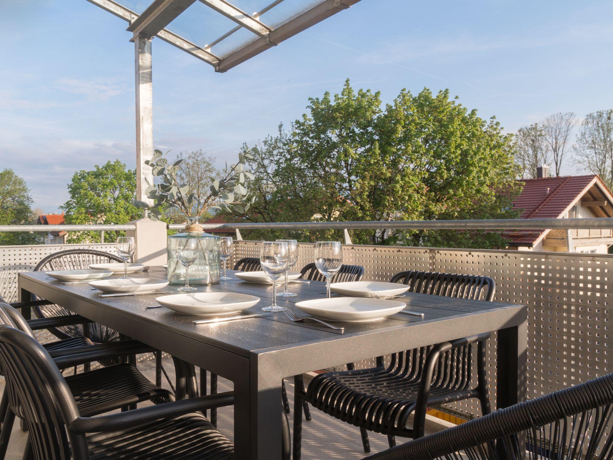 • Großer Balkon mit Tisch und Sitzgelegenheiten