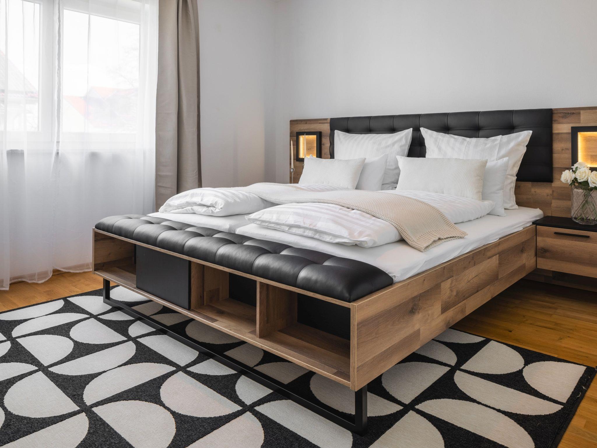 Das stilvoll und modern ausgestattete Apartment liegt 10min vom Bahnhof entfernt in ruhiger Lage. Es verfügt über 3 Schlafzimmer mit je einem Kingsize-Doppelbett. Bei Bedarf können zwei Einzelbetten sowie ein Kinderbett hinzugestellt werden, so dass in Summe acht Erwachsene und ein Kind im Apartment übernachten können. Das großzügige Wohnzimmer mit seinem XXL-Sofa lädt zum Entspannen ein. Vom weiträumigen Balkon kann man bei schönem Wetter sogar die Berge sehen. Die voll ausgestattete Küche mit Herd, Ofen, Mikrowelle und Spüler sowie einem Tisch, an dem 8 Personen Platz finden, lädt zu ausgiebigen Kochabenden ein. Ein Bad mit Dusche und Badewanne sowie ein zusätzliches WC gehören ebenfalls zum Apartment. Die Unterkunft befindet sich im 2. Stock und ist über eine Treppe ohne Fahrstuhl erreichbar. Die gesamte Unterkunft gehört den Gästen. Für mit dem Auto Anreisende steht ein kostenloser Parkplatz zur Verfügung. Auf Anfrage können wir ein Babybett und einen Hochstuhl bereitstellen - ein Kind bis 2 Jahre ist bei uns kostenfrei willkommen.