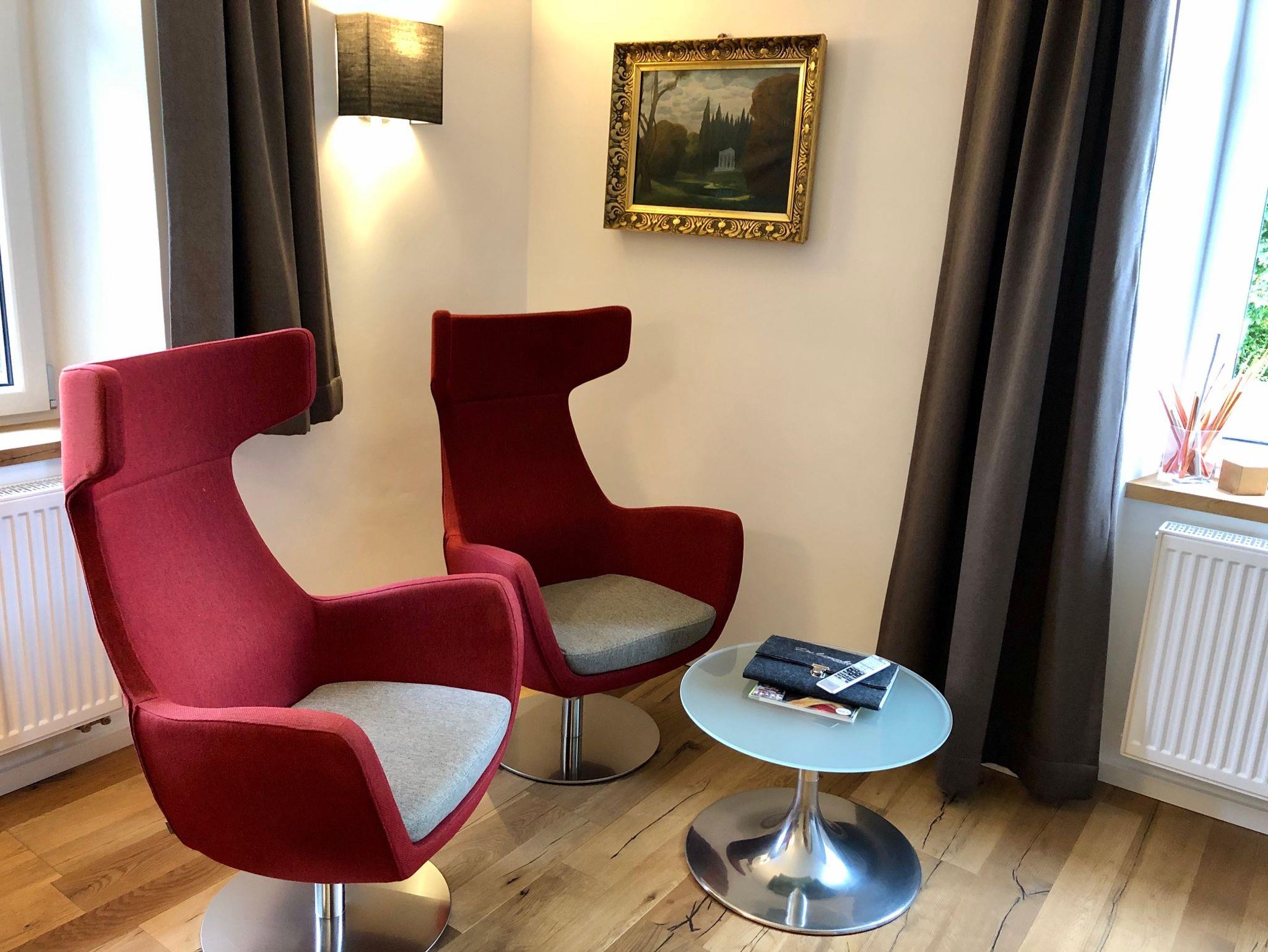 Alle Zimmer verfügen über ein Doppelbett, Bad mit Dusche und WC, Fernseher sowie einer Sitzgruppe.
