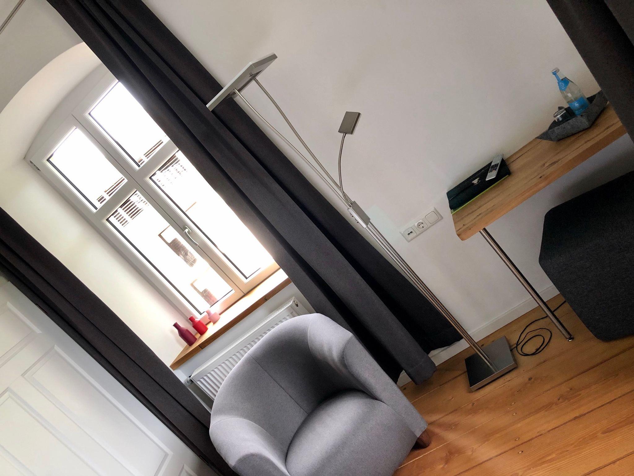 Das Logierhaus, Ferienzimmer 1 (23qm) mit Doppelbett und Flachbild-TV