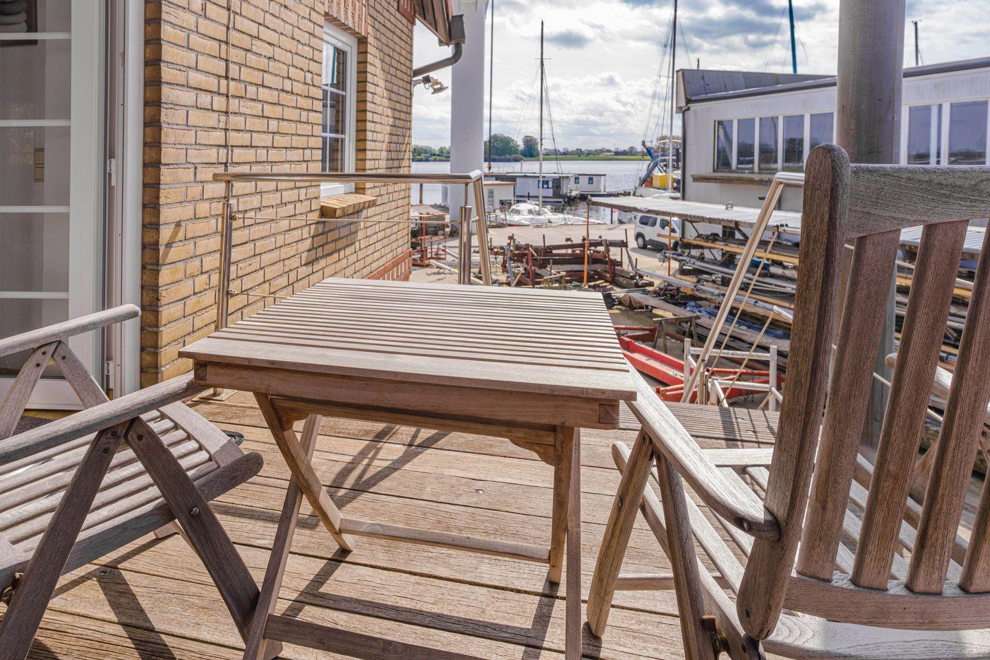 Schöne Wohnung im 1. Stock auf der Werft mit herrlicher Aussicht über die Süd- und Ostseite auf Werft und Schlei.