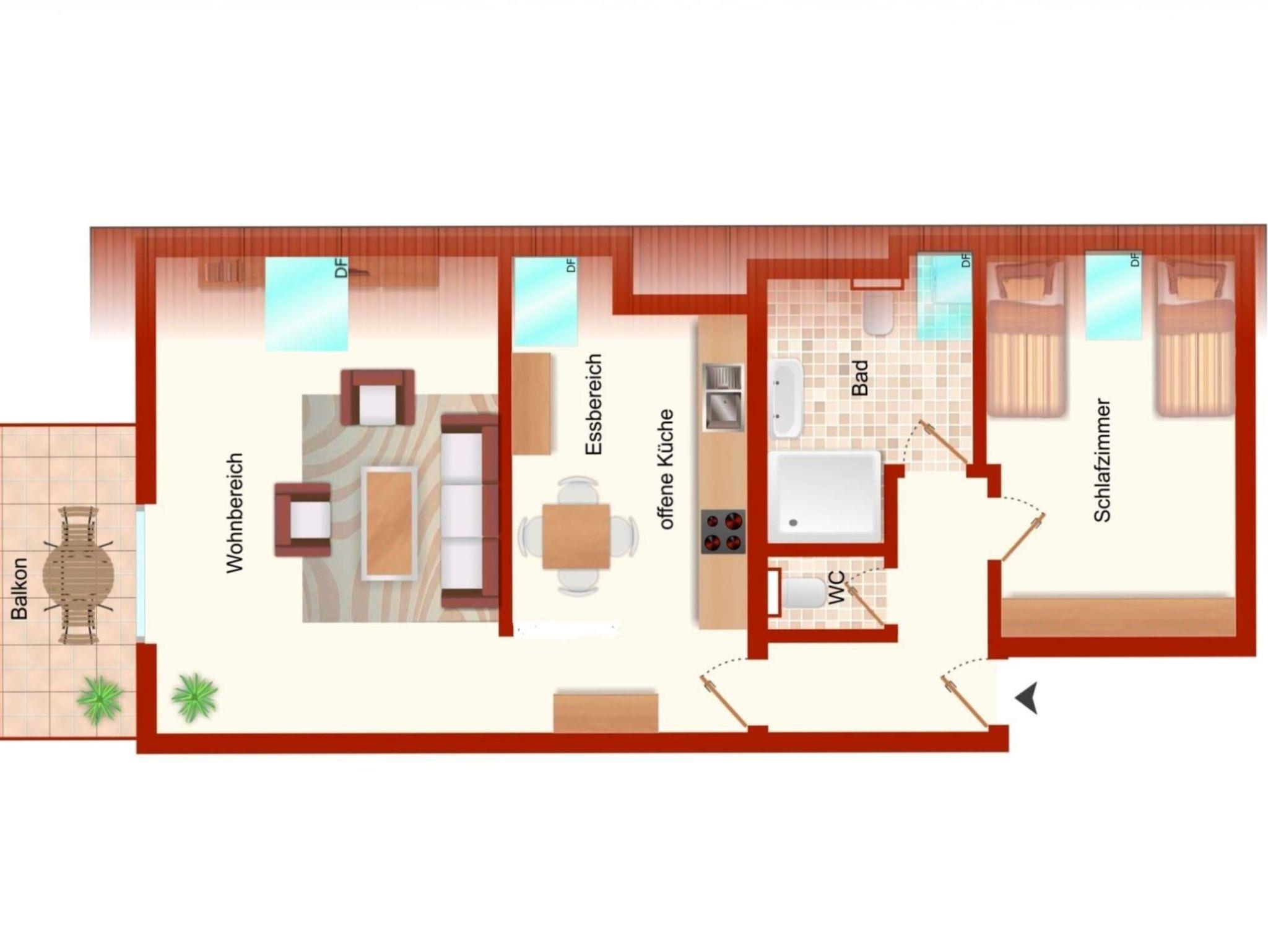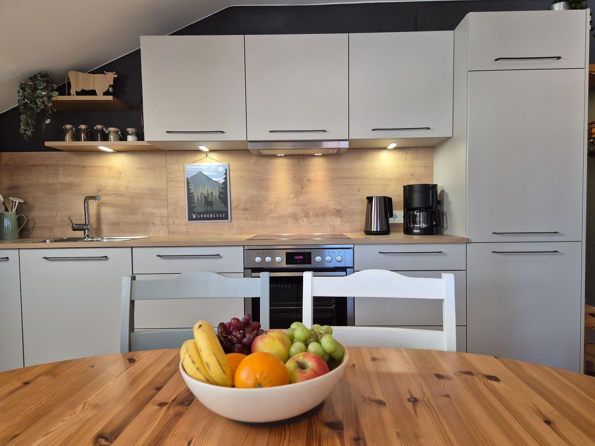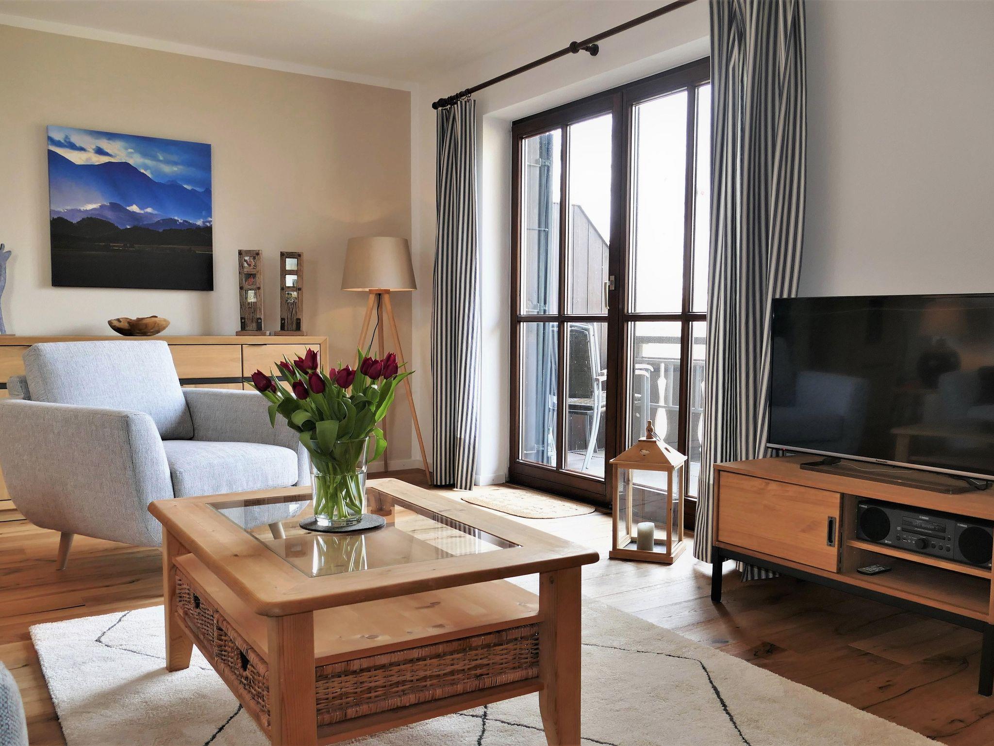 Sehr ruhige, gemütliche Wohnung mit Balkon und erholsamen Blick auf die umliegenden Wiesen und ein Wäldchen. Die Wohnung wurde 2021 modernisiert sowie neu möbliert und ist liebevoll eingerichtet. Sie verfügt über einen Echtholzboden, eine moderne voll ausgestattete Küche mit integriertem Geschirrspüler, Essecke, Wohnzimmer, ein Schlafzimmer mit getrennten Betten, ein helles Bad mit Dusche, WC und Fenster sowie einem separates WC. Ein Flachbild-TV, DVD-Player, eine Musikanlage mit Bluetooth diverse Spiele und Bücher sorgen für Entspannung. Schlafmöglichkeiten auch für 3. und 4. Person!