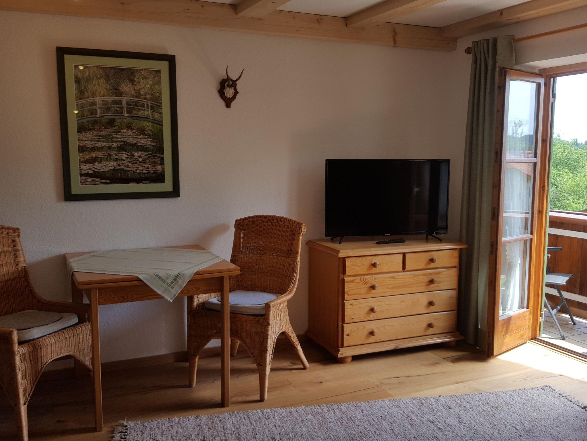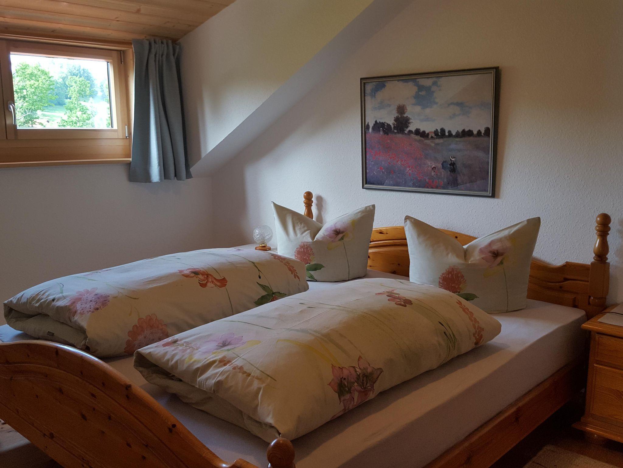 Unsere neu renovierte Ferienwohnung Nr.: 3 befindet sich im 2. Stock. Das Schlafzimmer ist vom Wohnbereich durch eine Türe getrennt.