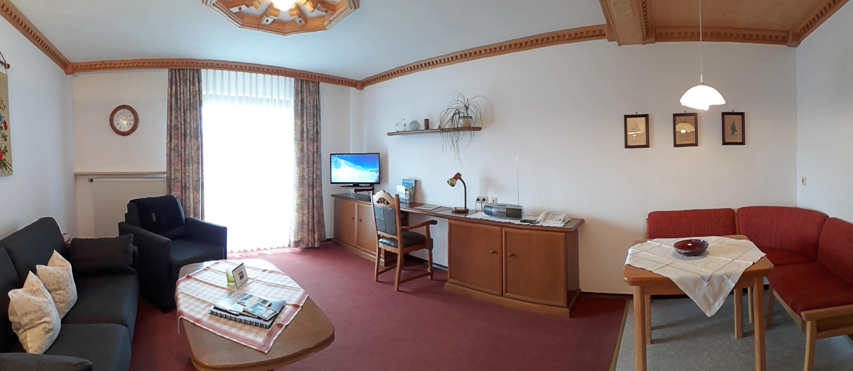Die 40m² große Ferienwohnung befindet sich im 1. Obergeschoss. Die Wohnung hat getrennte Wohn- und Schlafzimmer und bietet reichlich Platz für 2 Personen. Sie ist komplett ausgestattet inkl. Sat-TV, Radio und CD-Player. Der große Eckbalkon mit Blick Richtung Osten und Süden in die Ammergauer Alpen lädt zum Ruhen und Genießen ein.