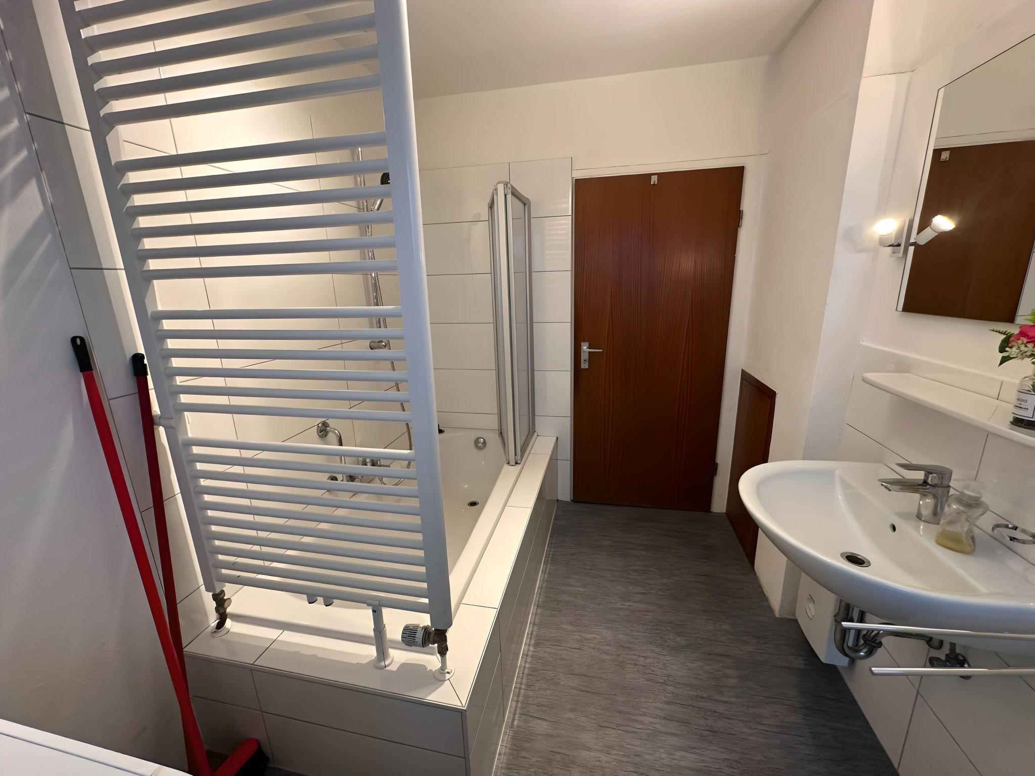 ?? Ruhe[pause] I - close to the centre & pleasantly quiet ??. For 8 guests, large flat with kitchen ??, bathroom & car park ???.
