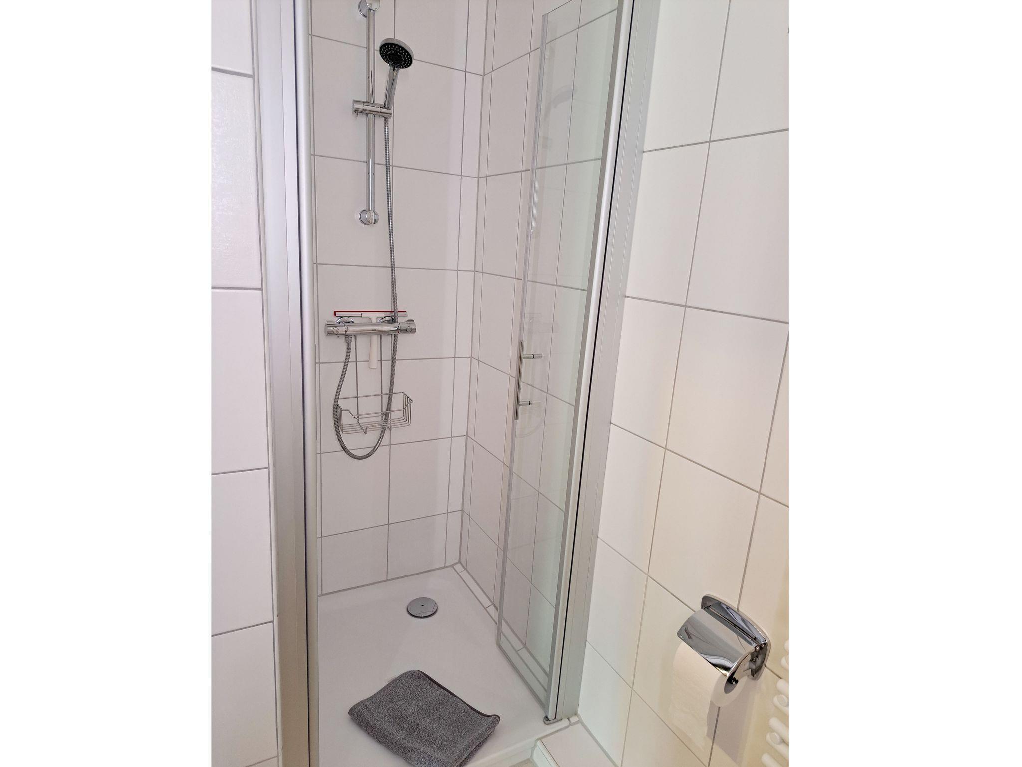 Das Bad verfügt über eine Dusche. Auch ein Fön liegt für Sie bereit. Flat-TV und WLAN sind selbstverständlich vorhanden. Ausreichend Parkmöglichkeiten für Ihren PKW sind an der ruhigen Anliegerstraße. Das abschließbare Gartenhaus oder der Kellervorraum (erreichbar mit dem Fahrstuhl) ermöglichen Ihnen eine trockene und sichere Abstellmöglichkeit Ihrer Fahrräder. Im Waschkeller stehen Ihnen, nach vorheriger Absprache mit dem Vermieter, Waschmaschine und Trockner zur Verfügung. Eine kostenfreie Lademöglichkeit für E-Bikes können Sie am Kurhaus nutzen.