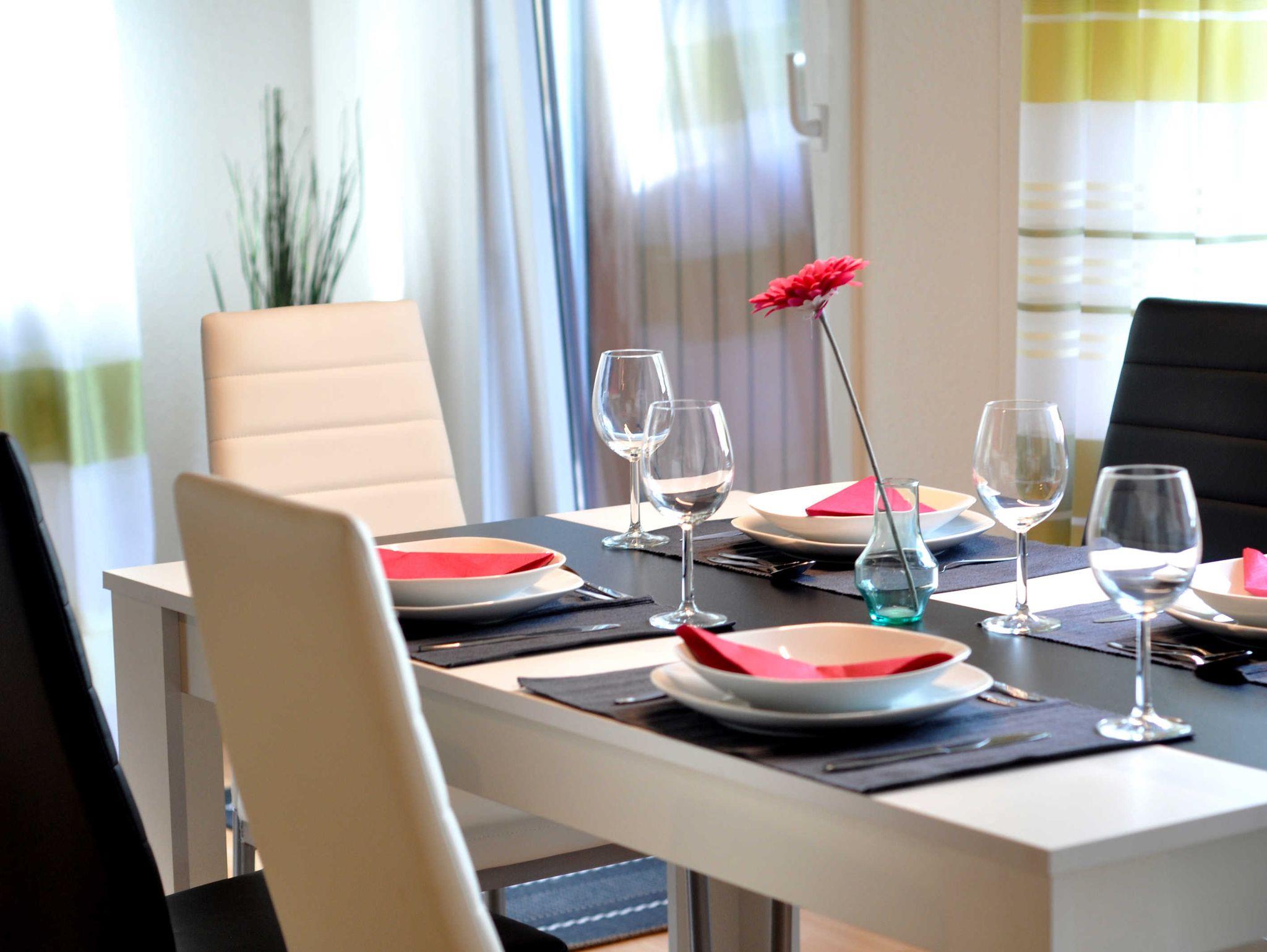 Unsere großzügige Ferienwohnung für bis zu 4 Erwachsene und 2 Kinder liegt ruhig und trotzdem zentral im Kurzentrum des Kurortes Bad Bevensen. Ein herrlicher Balkon mit Markise und Grillmöglichkeit steht zu ihrer Verfügung. Moderne Lounge Möbel laden zum Verweilen ein. Sie erwartet eine vollausgestattete Küche und ein Wohn- und Essraum mit großem Flachbildfernseher und einem Essplatz für bis zu 6 Personen. Selbstverständlich gehören Bettwäsche, Handtücher (Hausgebrauch) und Küchenutensilien zur Grundausstattung. Direkt vor dem Haus haben sie ihren eigenen Parkplatz.